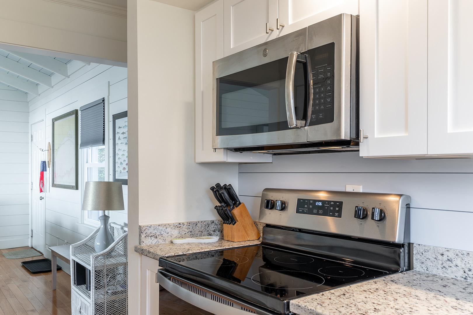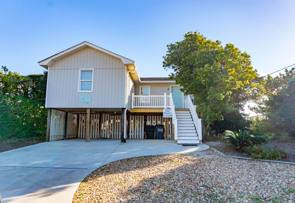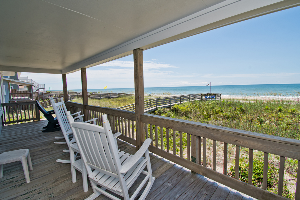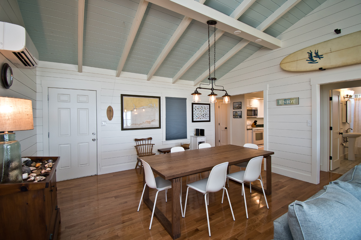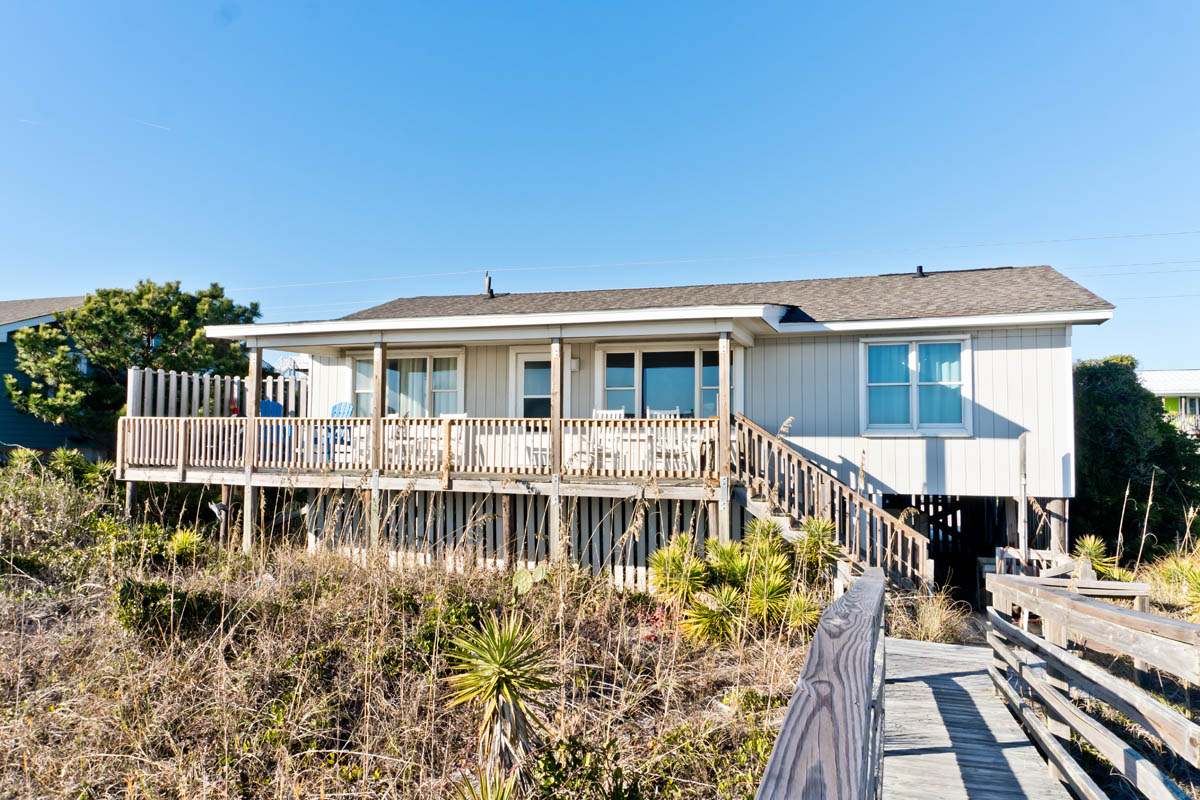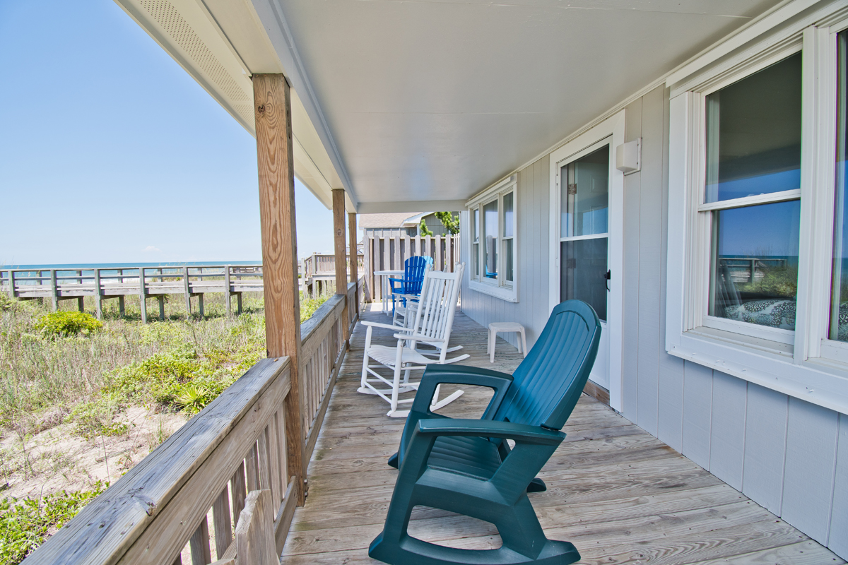 Hide 'N Sea is a 4 Bedroom, 2 Bath oceanfront home. Newly Renovated! High Speed Wireless Internet Provided! Living Room with Flat Screen TV and access to the covered decks. Dining Area. Kitchen Area with microwave, refrigerator, dishwasher, slow cooker and coffee maker.
