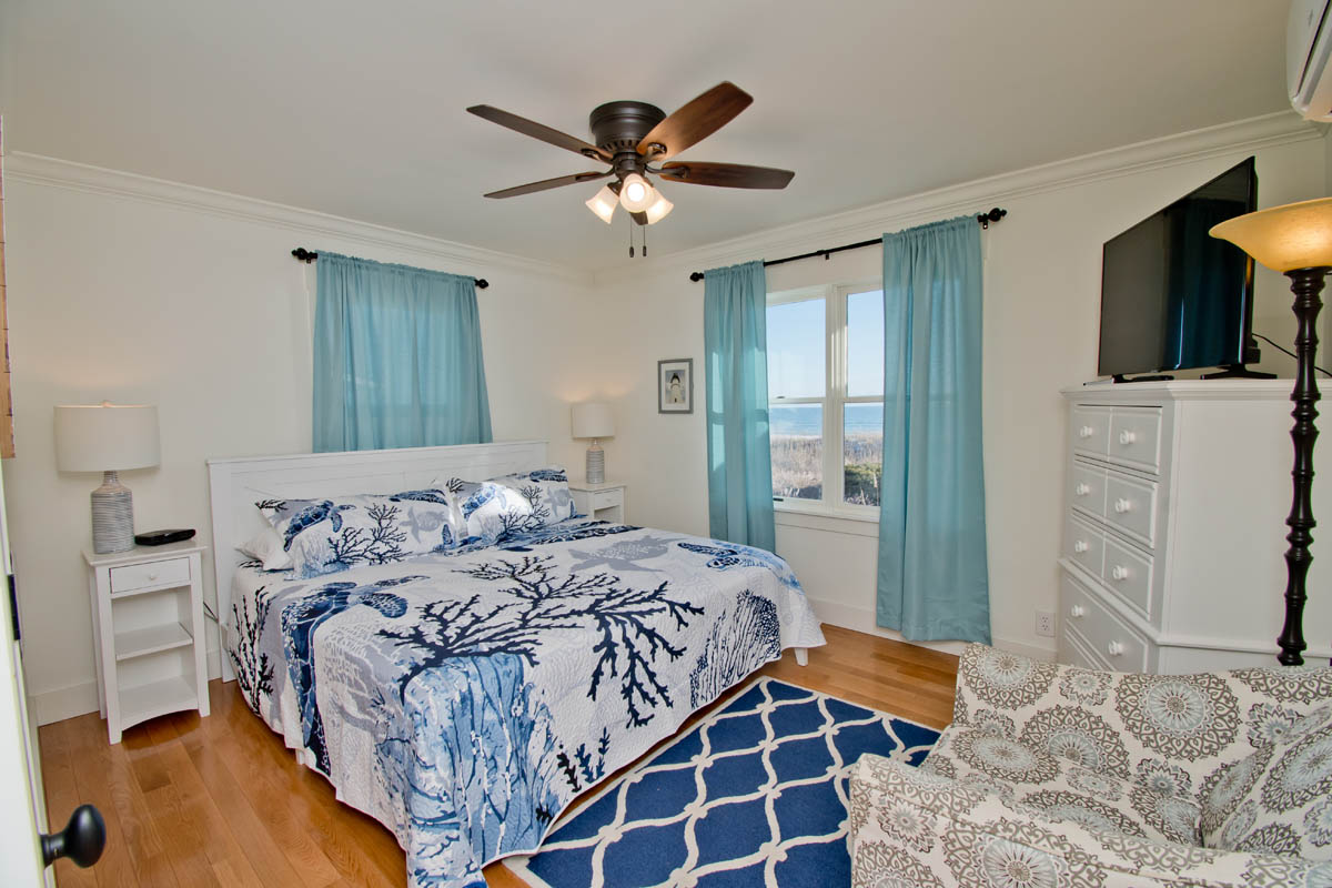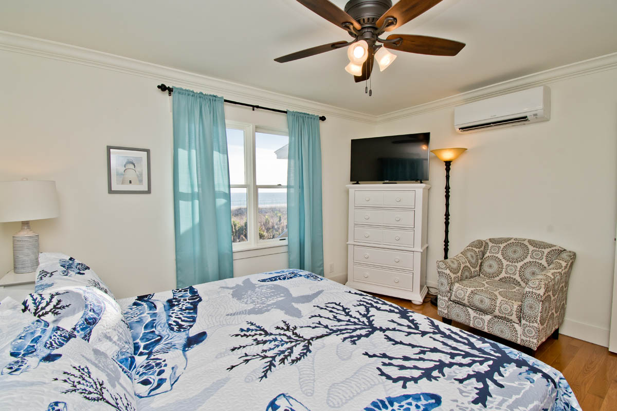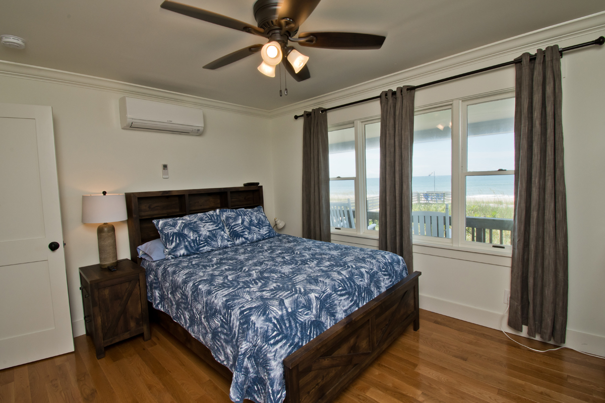 Oceanfront Bedroom #1 has a Queen Bed. Bedroom #2 has a Queen Bed. Bedroom #3 has two twin bunks, sleeping a total of 4. Bedroom #4 has a King bed.