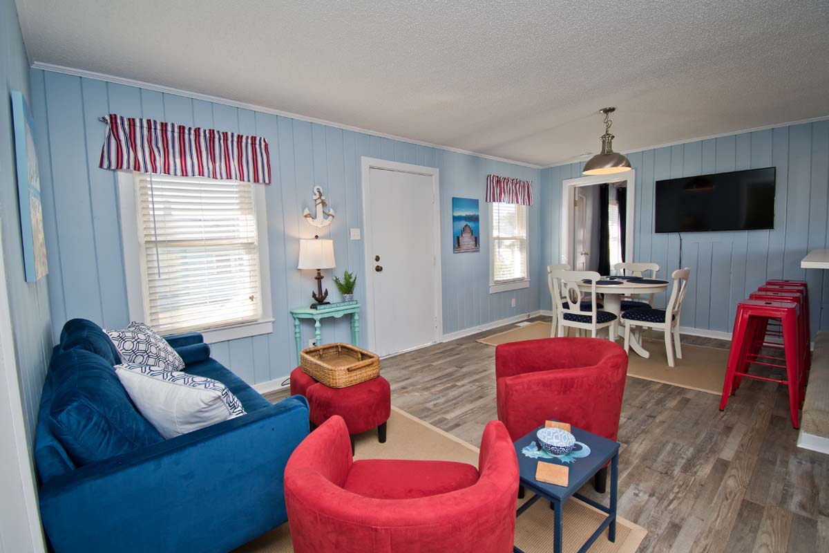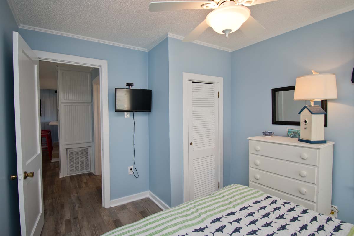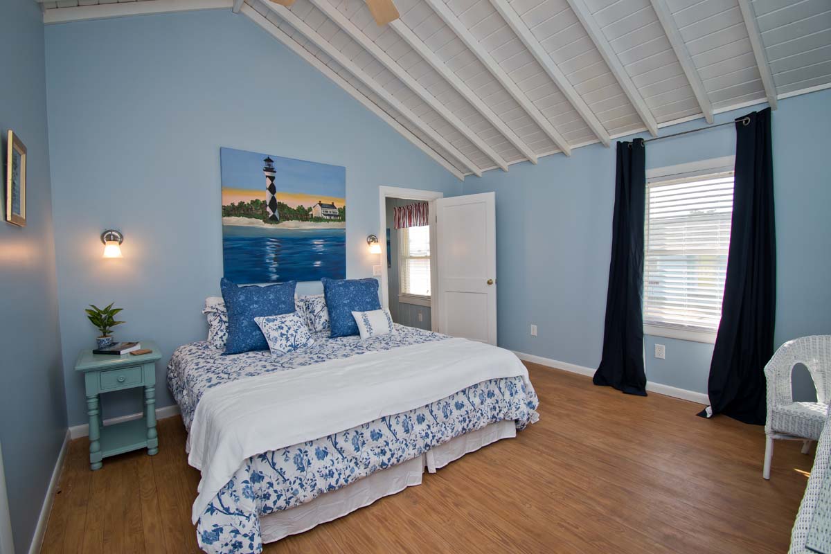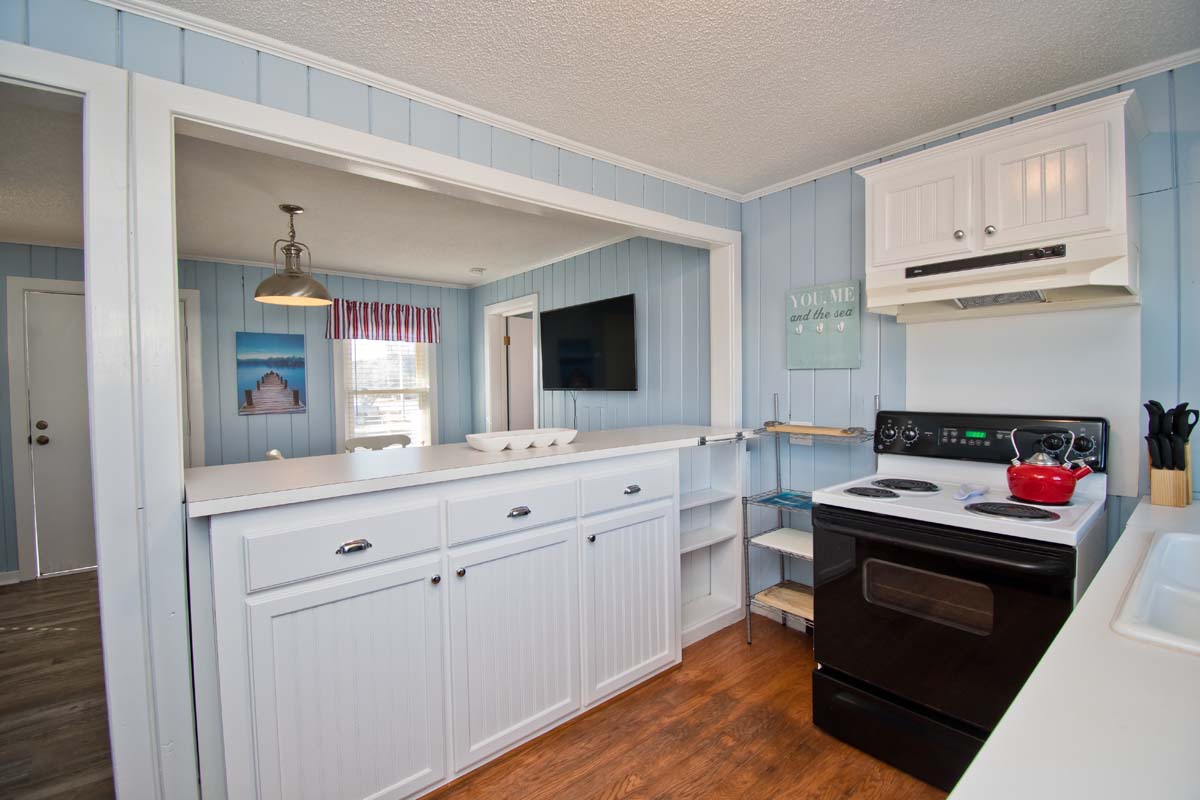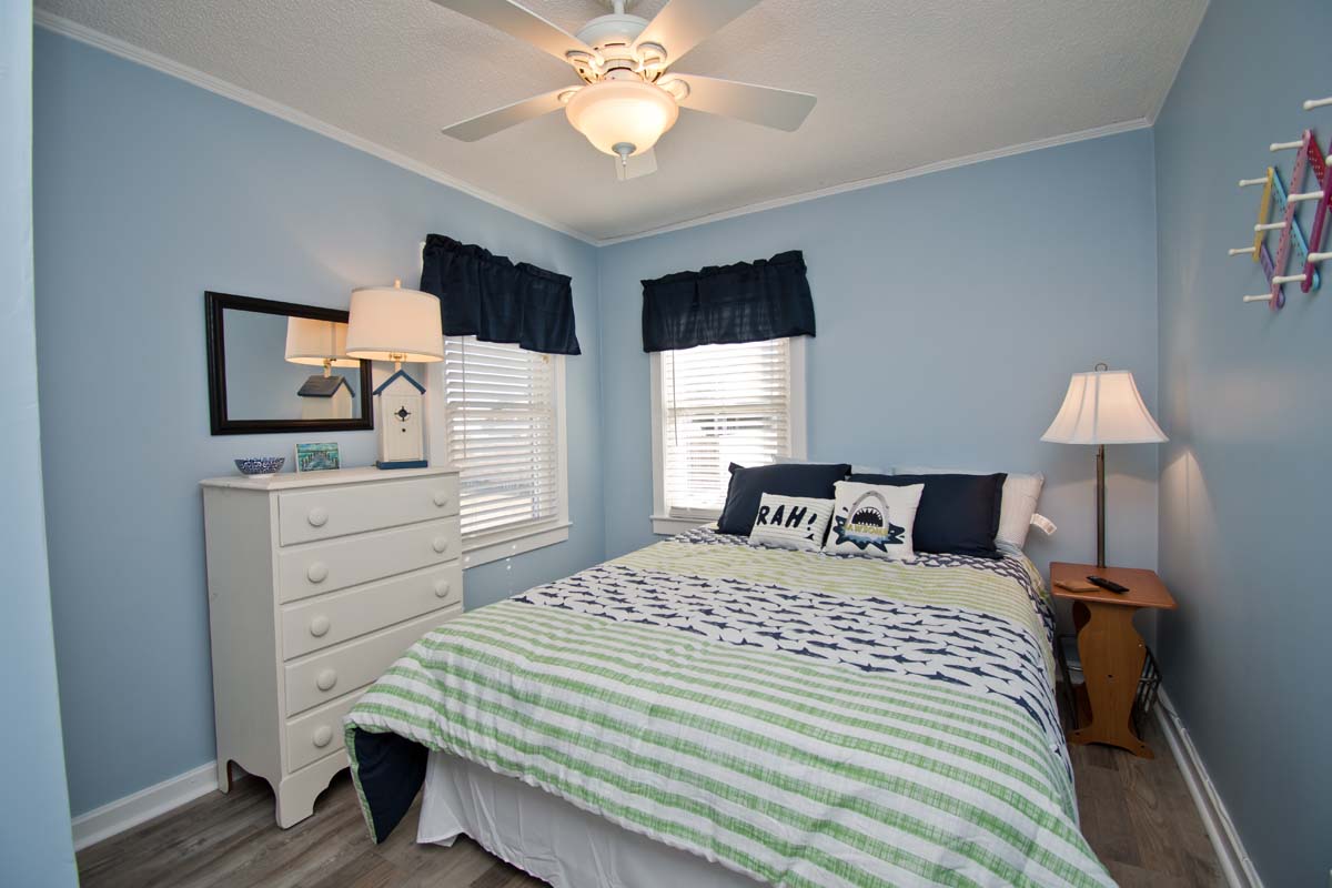 You will notice a theme of nautical decor throughout the house that is sure to make you feel right at home during your week at the beach. Bedroom #1 is a master bedroom with a king bed, a TV, and a private bathroom. Bedroom #2 has a queen bed, a TV, and access to a shared bathroom. Bedroom #3 has two twin beds, a TV, and shares a bathroom with bedroom #2. The dining table seats four comfortably and there are four more seats right next to it at the bar!