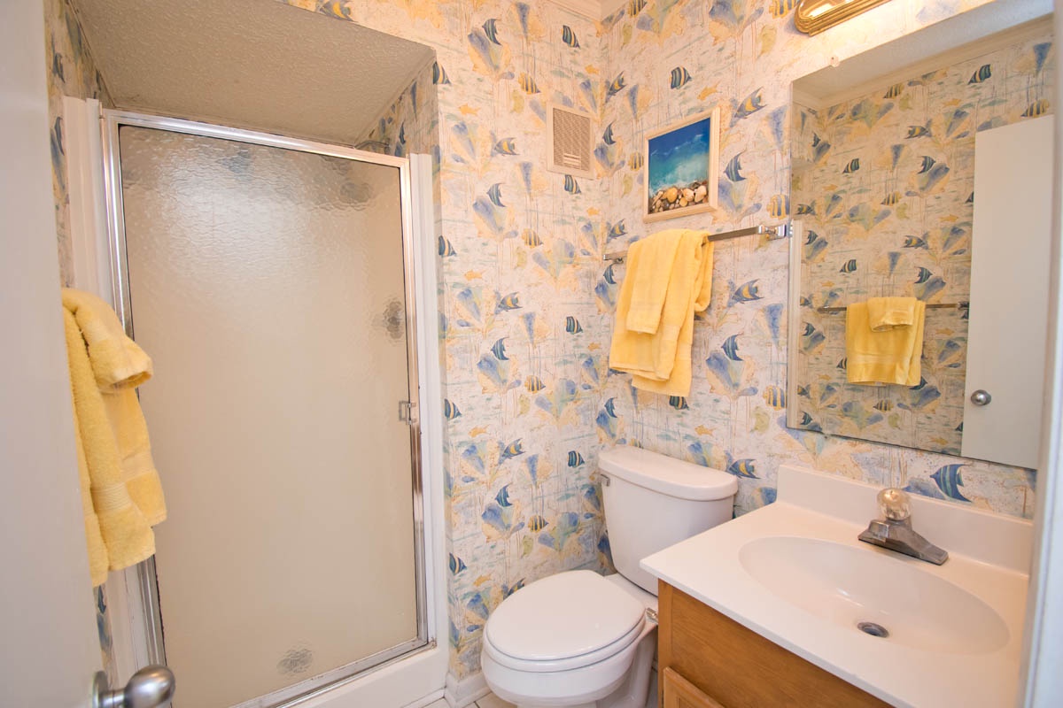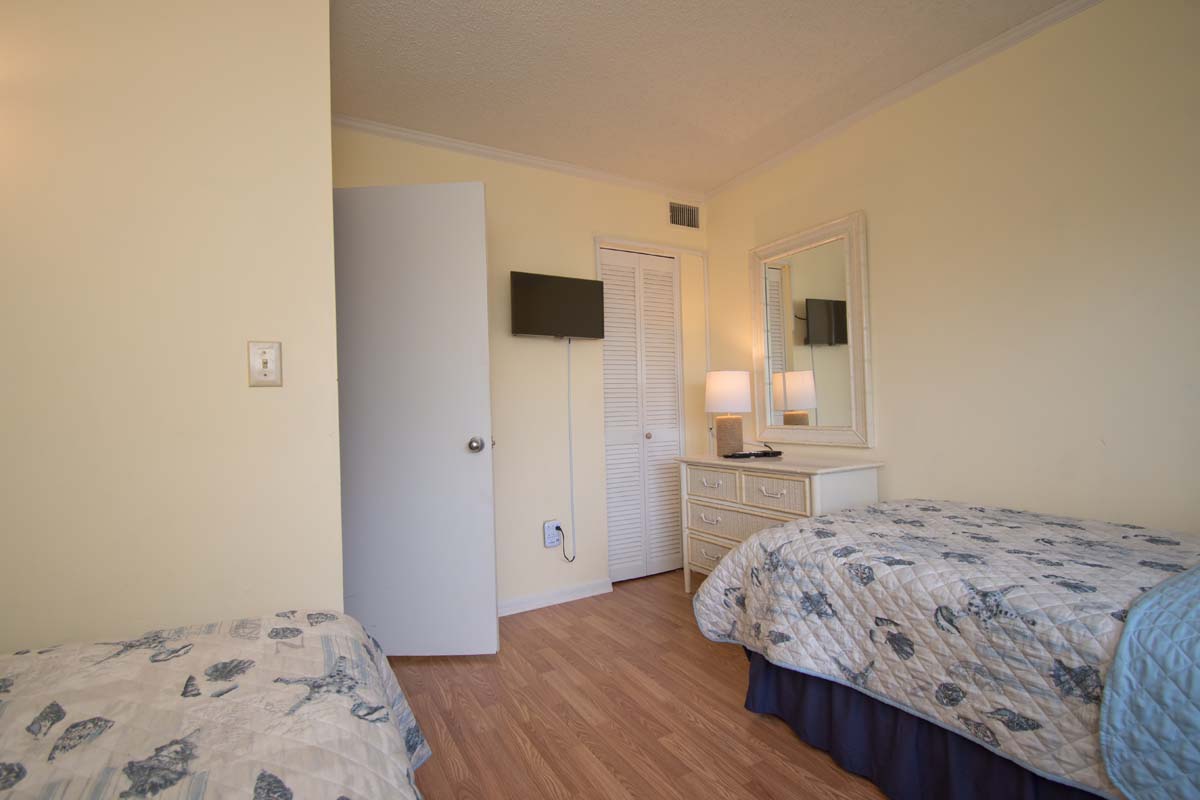Bedroom #2: Two Twin Beds, TV, Shared Bath with Shower.