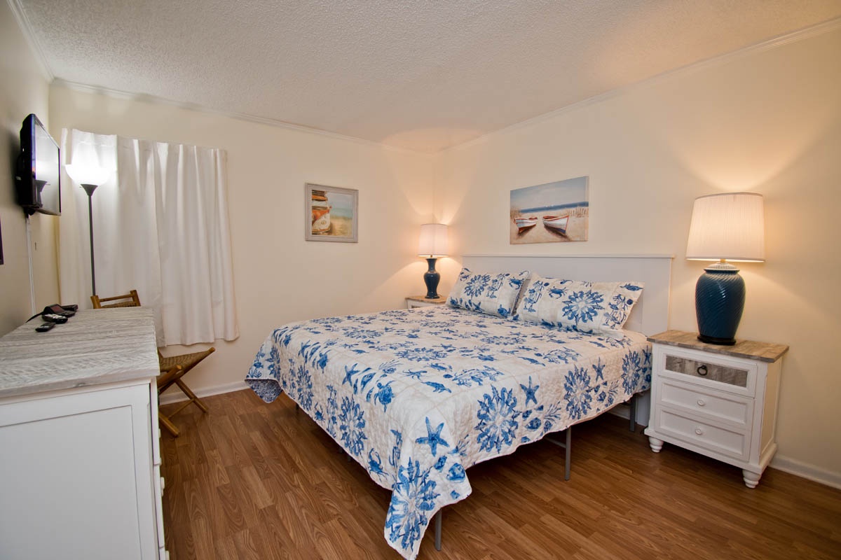 Bedroom #1: King Bed, TV, Private Bath.