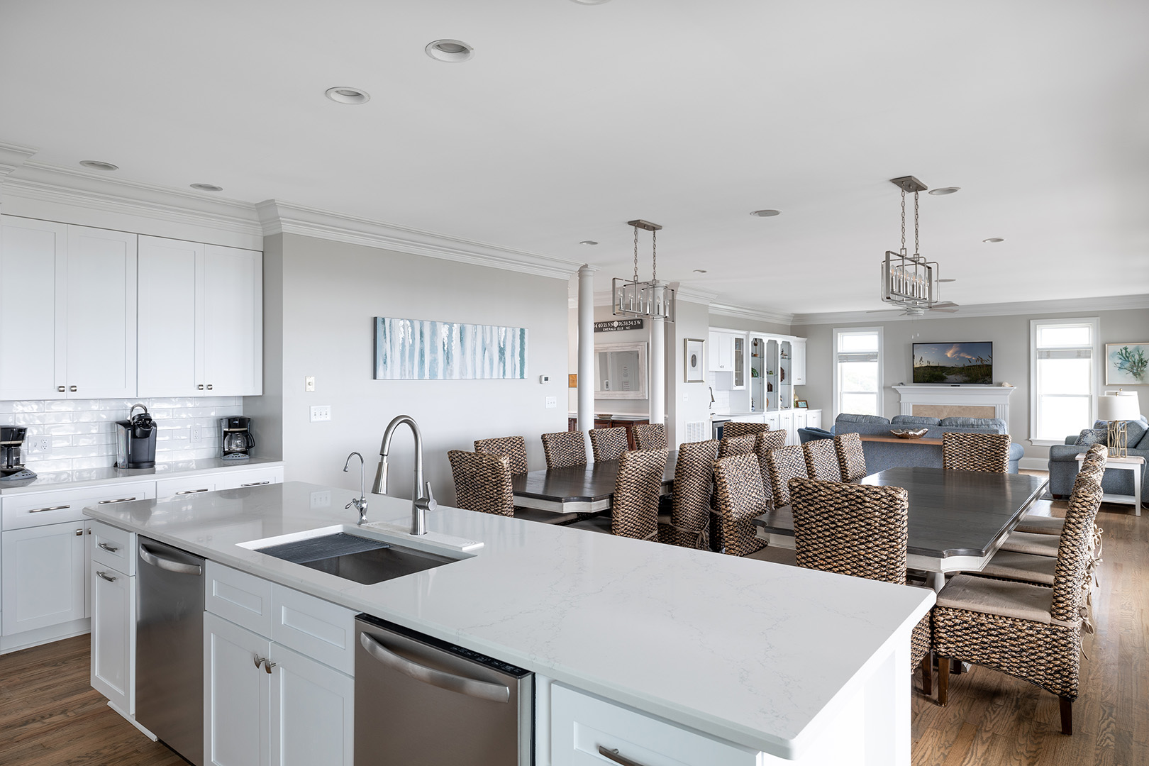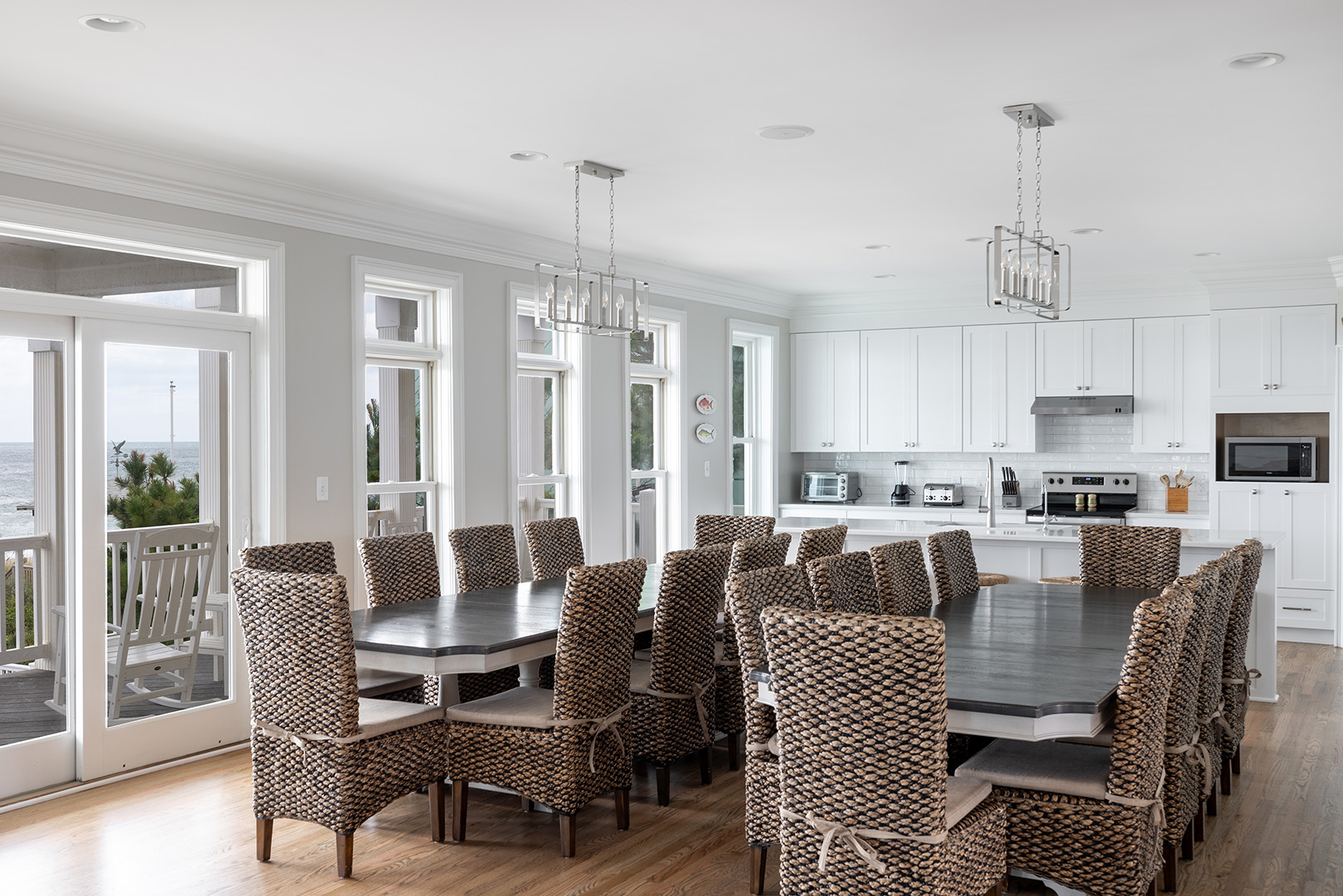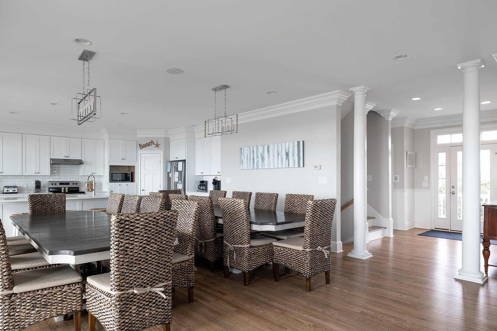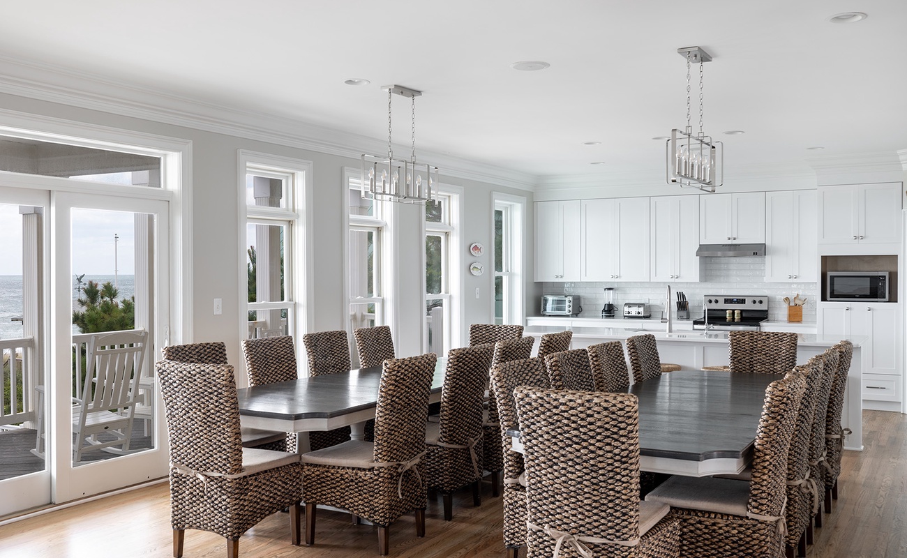 Bedding Includes: 4 King Beds, 4 Queen Beds, 2 Twin Bunk Sets. The Kitchen Area is finely appointed with modern appliances and all of the comforts of home and the Dining Area is set-up with a variety of seating options, allowing for up to 10 at the main Dining table, 2 at the side table, and 5 at the Bar. The Elevator allows for access from the 1st Floor to the 3rd Floor.