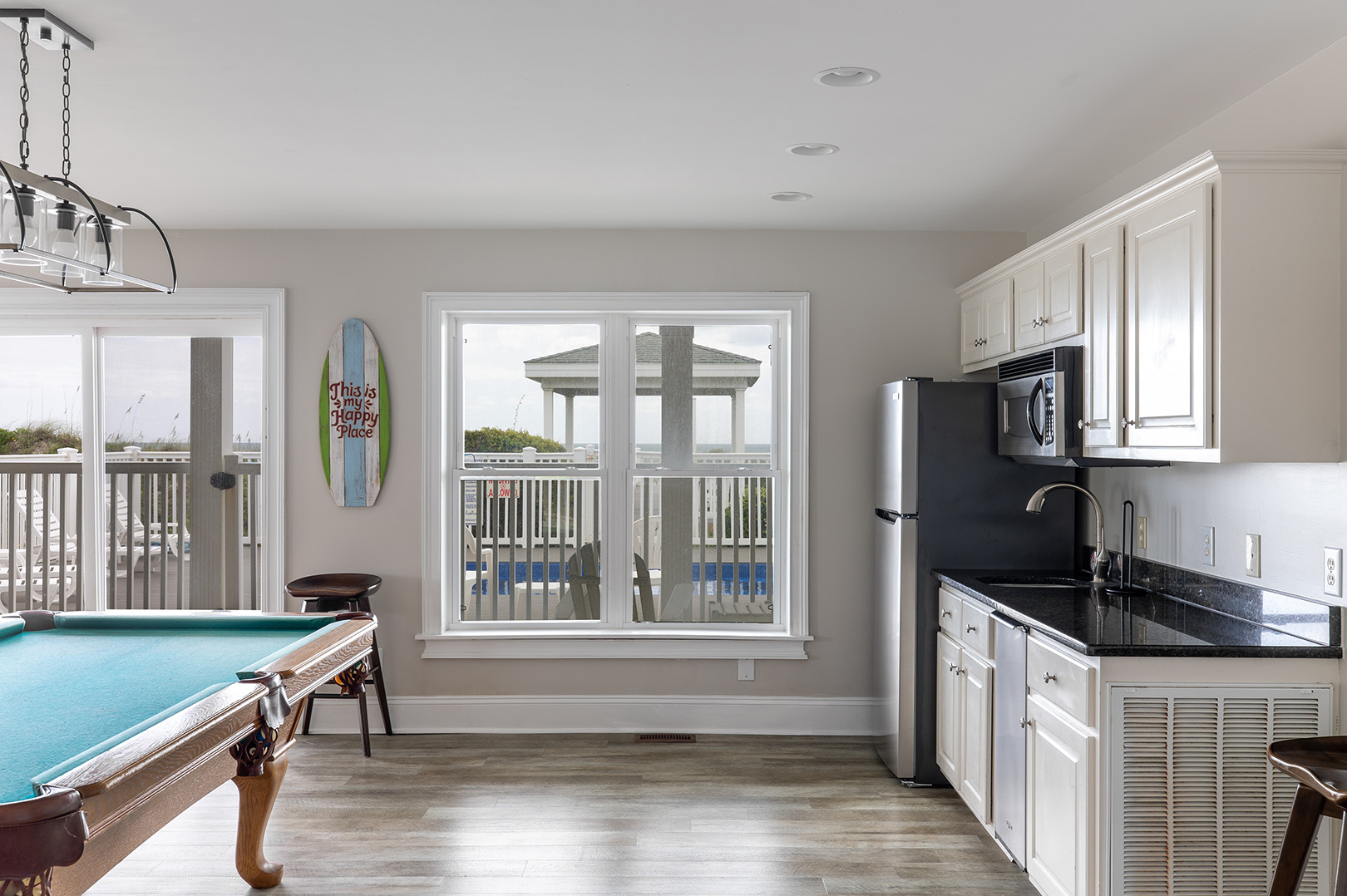 Additional Amenities Included: 6 TVs, 6 Smart TVs, 10 DVD Players, and a Stereo, a Home Theater, High-Speed Wireless Internet, 2 Refrigerators, an Ice Maker, 2 Dishwashers, 2 Microwaves, a Water Treatment and Softener System throughout entire House, and a Water Purification System in Kitchen, 2 Gas Log Fireplaces, Game Room with Pool Table, Pack n Play, a Gas Grill, Open and Covered Decks, a Covered Gazebo on Dunes, an Outdoor Shower and Outdoor Private Pool that may be heated upon request for $650/week + tax and a Hot Tub.