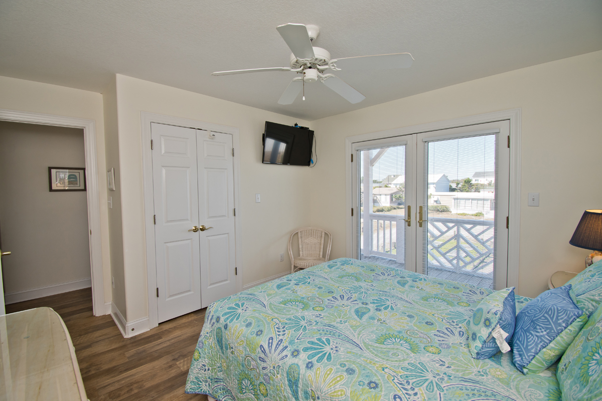 Floor #1 - Bedroom #2 Queen Bed, TV, Deck Access |
