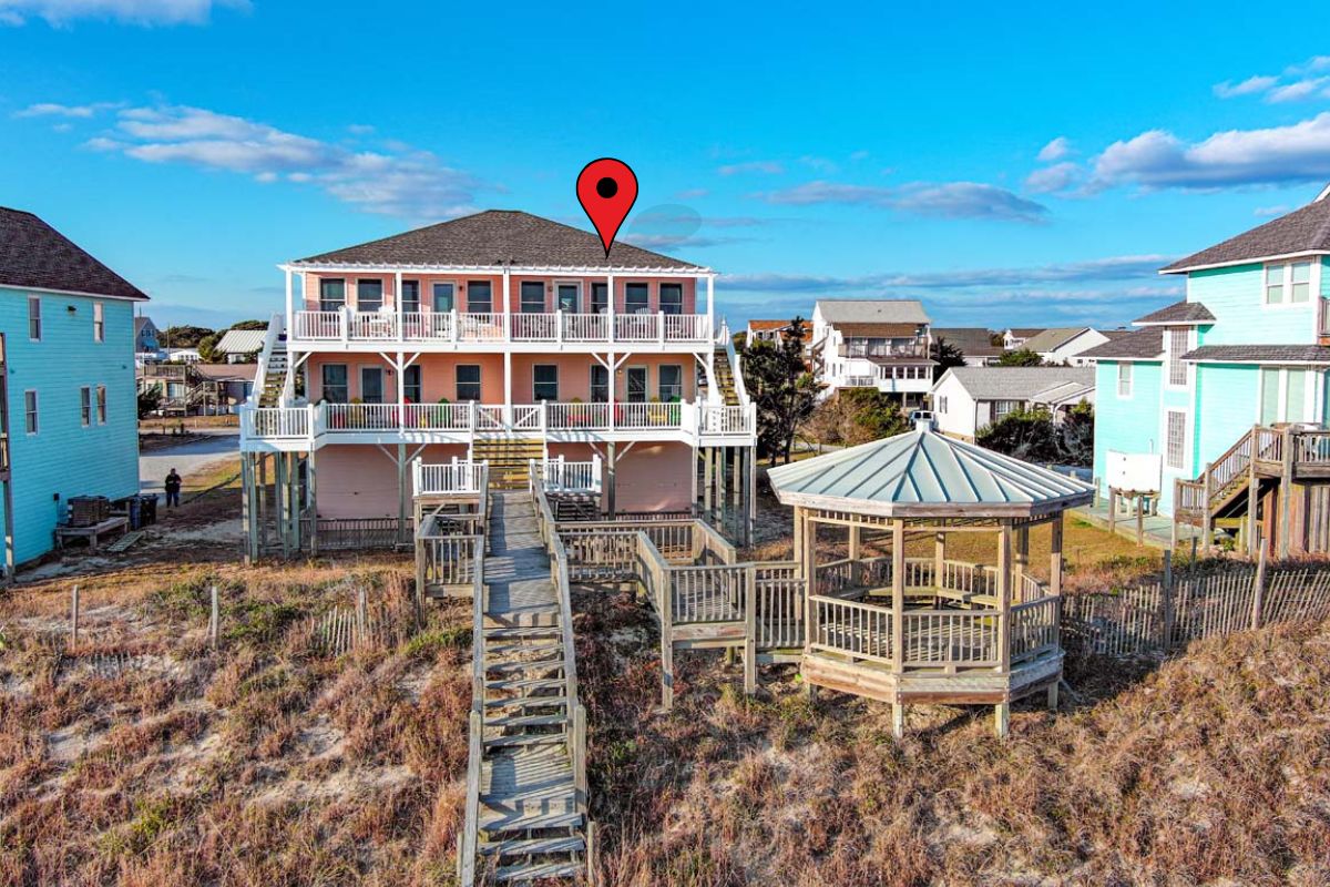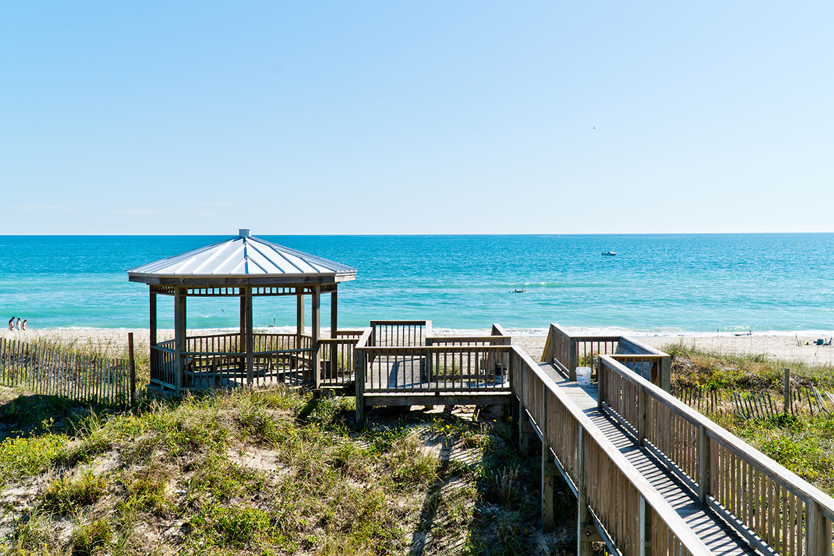 Lorelei East is a 4-bedroom, 3-bathroom Duplex strategically placed on the Oceanfront in Emerald Isle. This beautiful home is located within walking distance to the fishing pier as well as various local spots to dine and shop! The walkway to the beach attaches to a large gazebo and the home has dawn-to-dusk security lights on all decks and stairs!