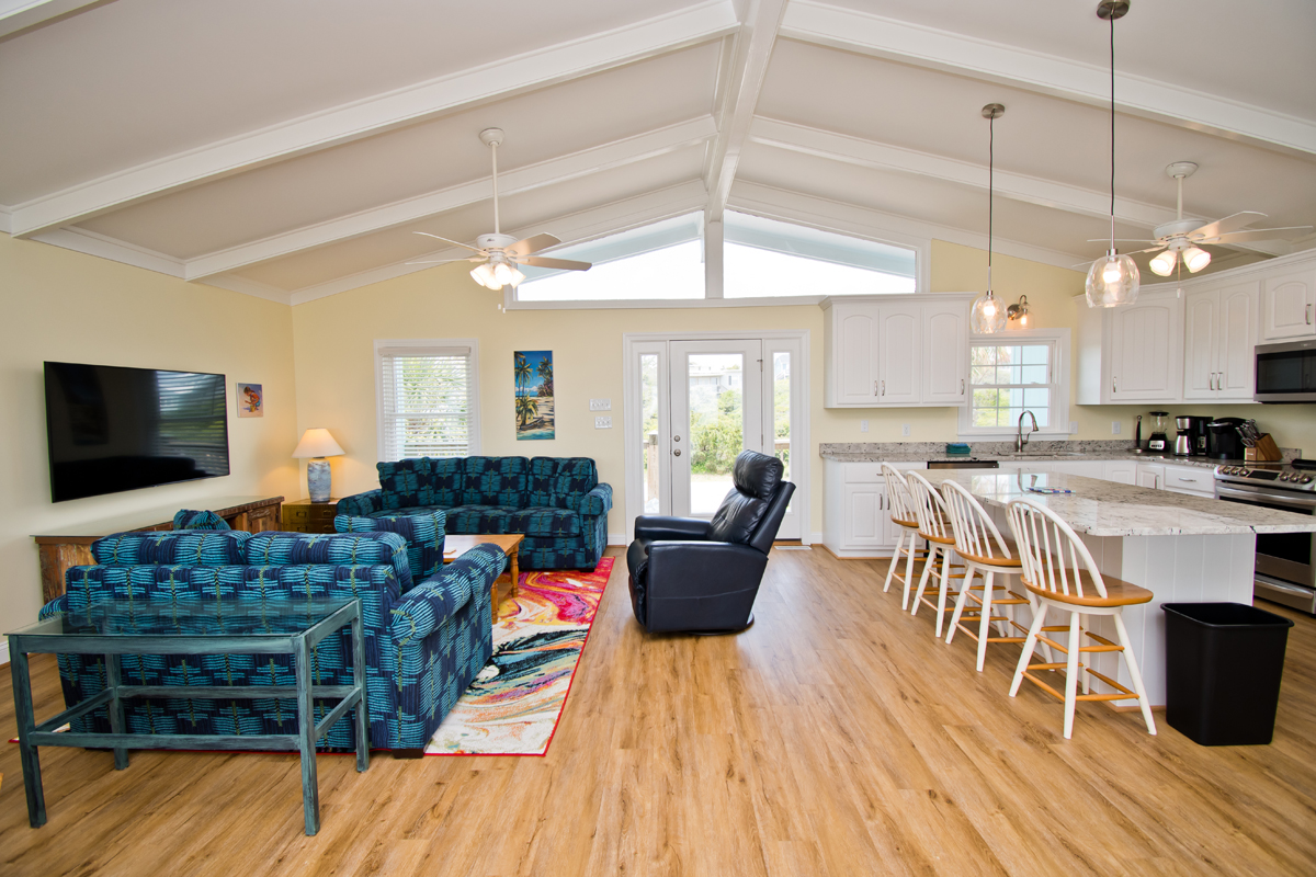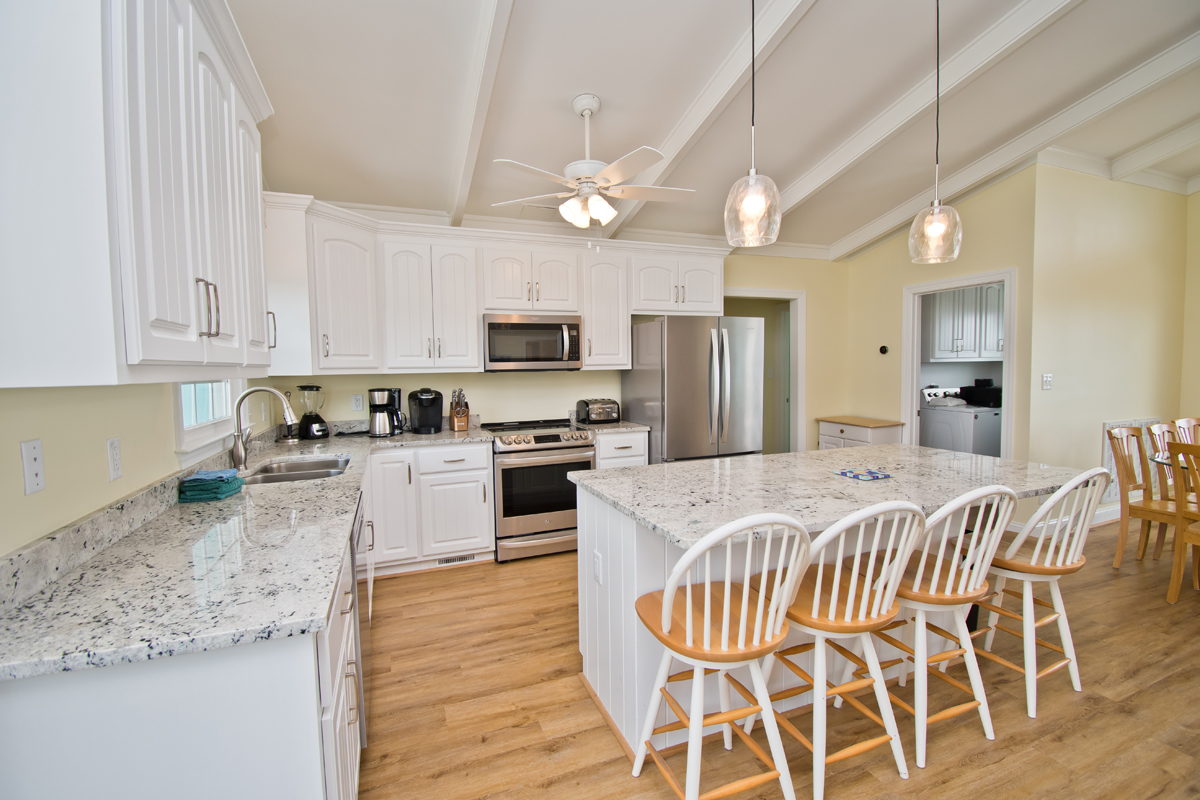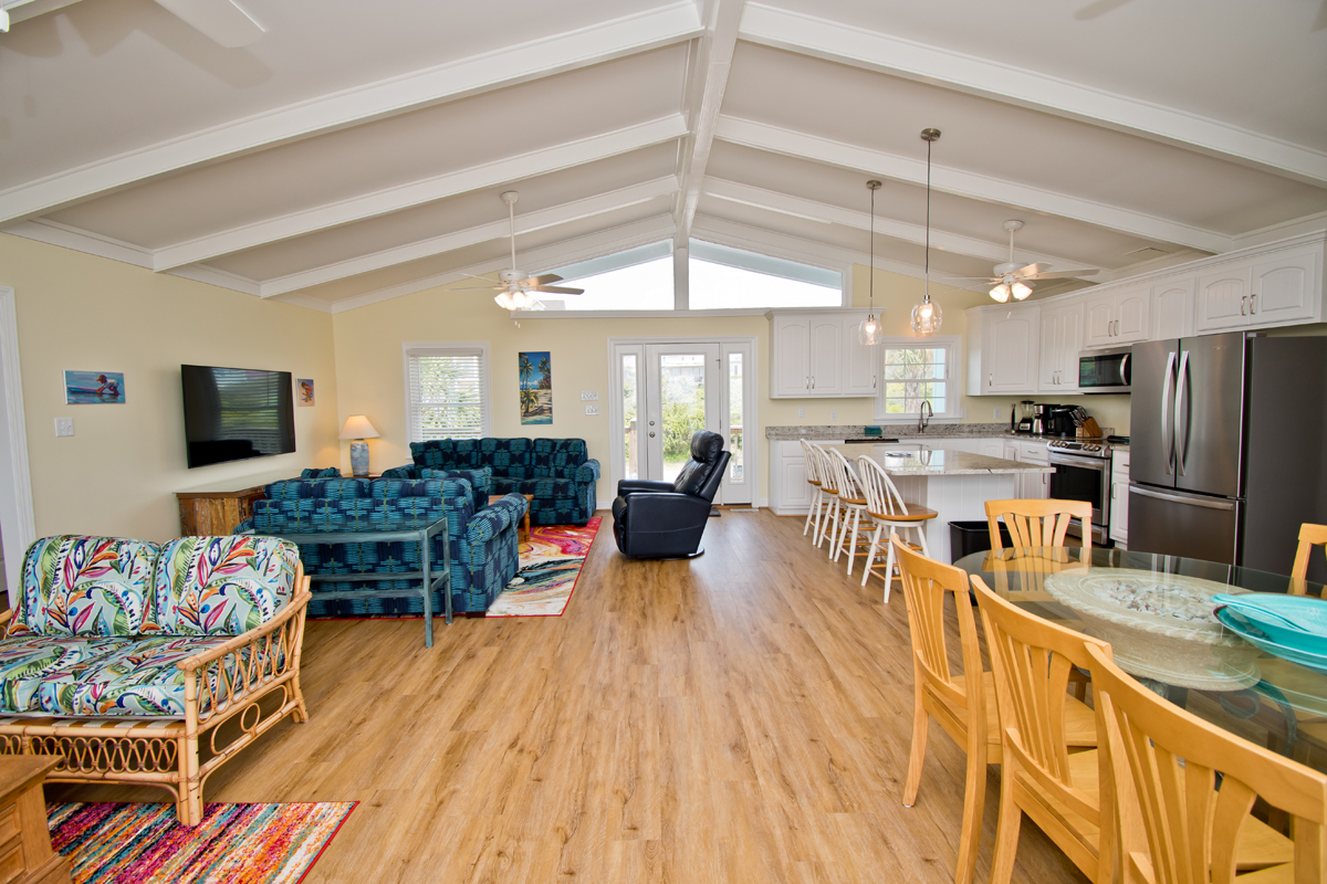 Living Area has a 65" Smart TV, Brand New Kitchen with Granite Countertops, Dining. Bedroom #1 has a King Bed, Bedroom #2 has Two Double Beds, Bedroom #3 has a King Bed and Bedroom #4 has a King Bed.