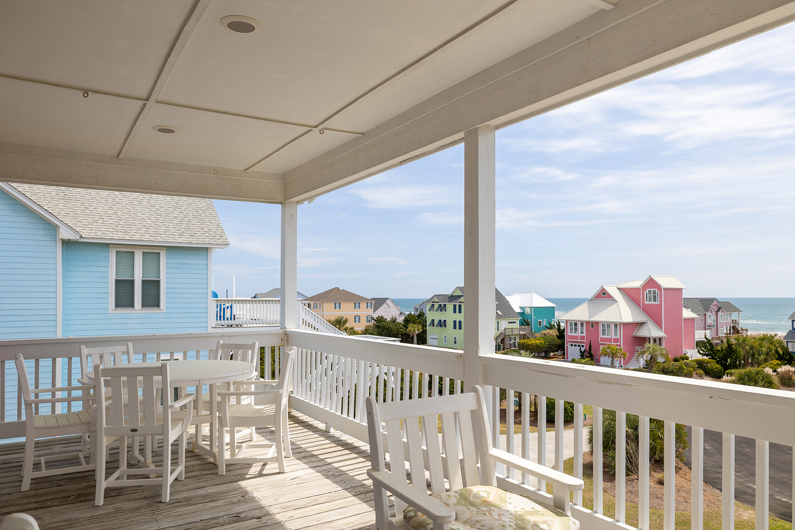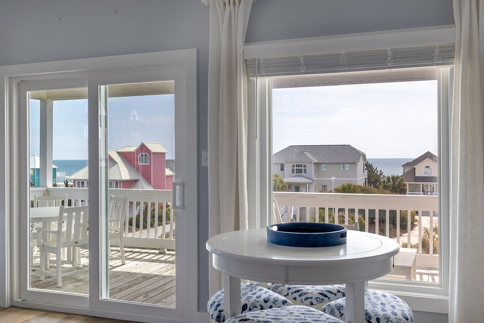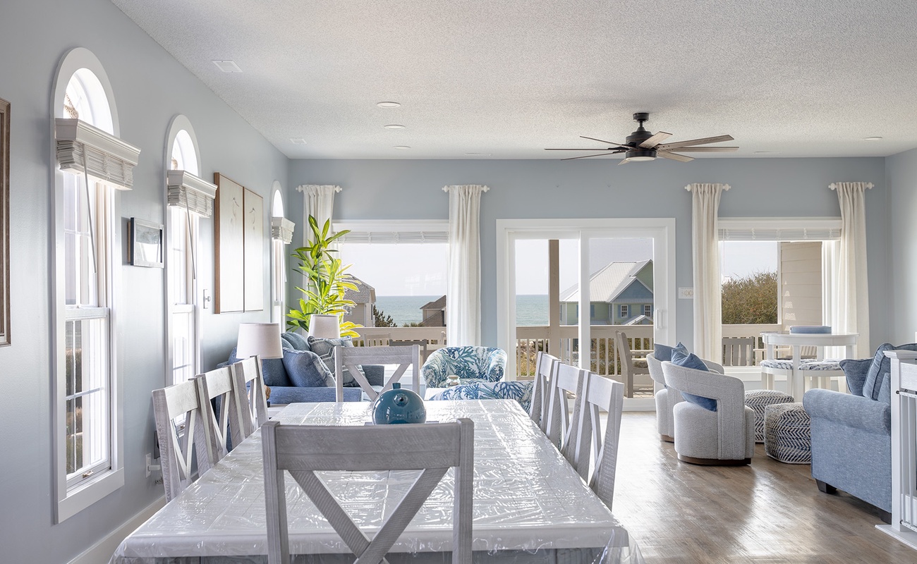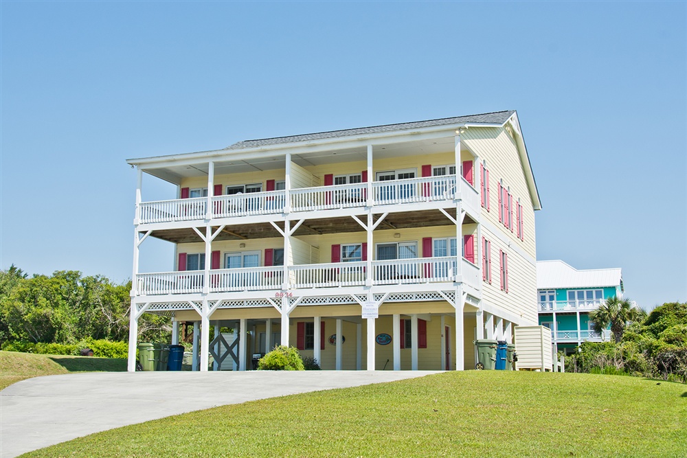 Nor Easter is an adorable 5-bedroom, 4-bathroom Oceanview Duplex (east side) beach retreat in the Spinnaker's Reach Community conveniently located just one house away from the community pool and beach access! You can take in great views of the beach from inside the home from multiple rooms and outside on the multi-level decks!