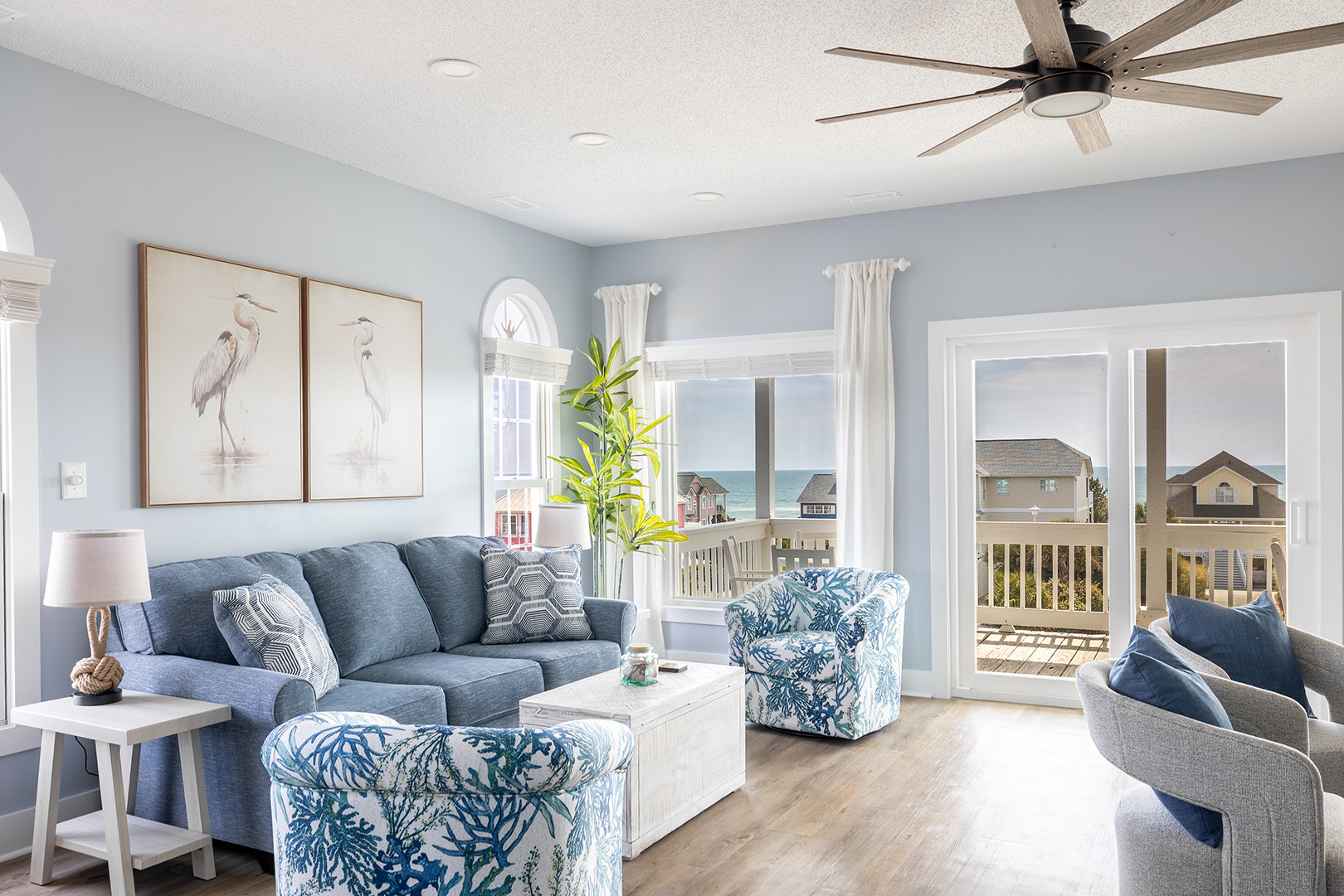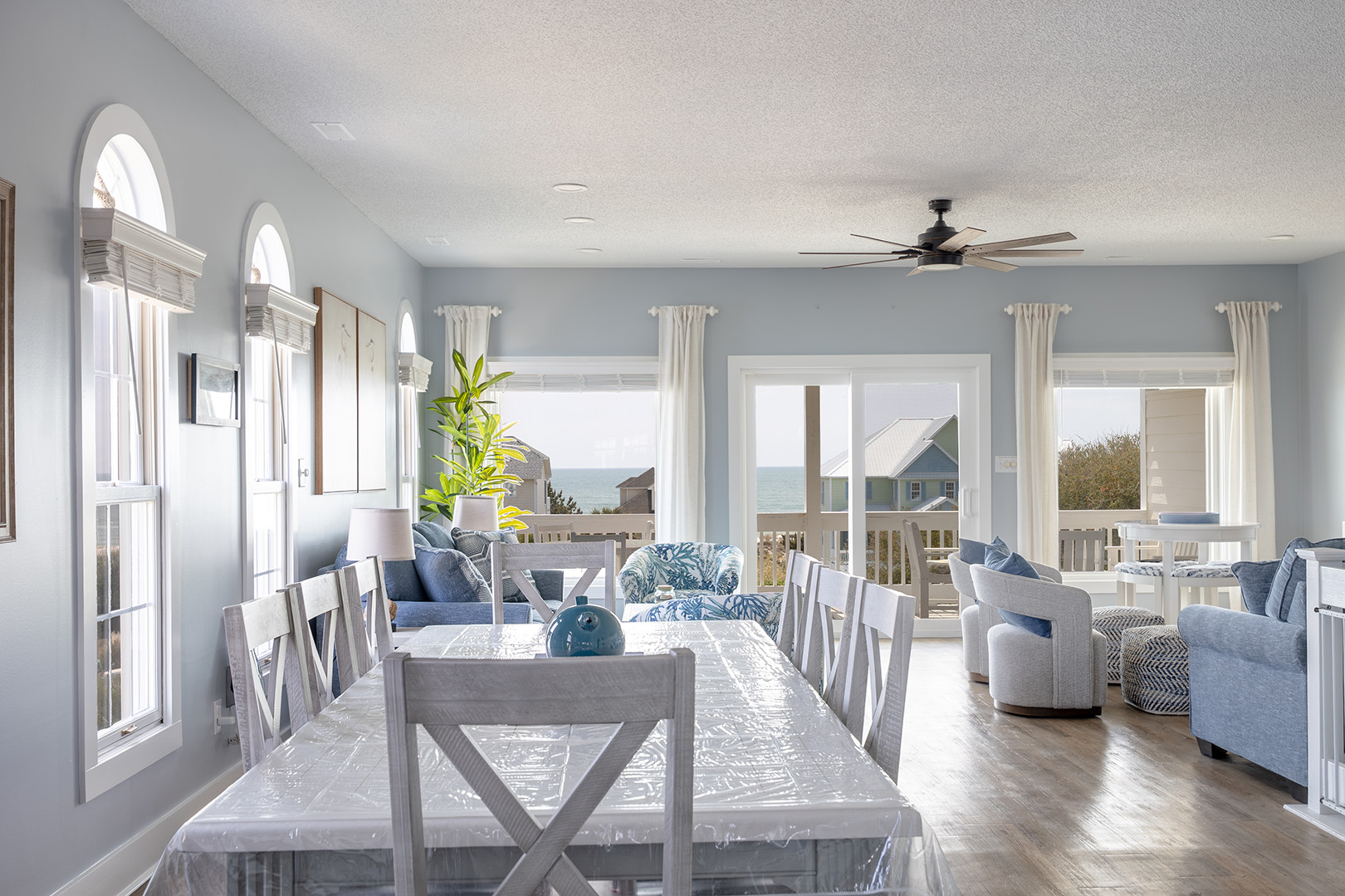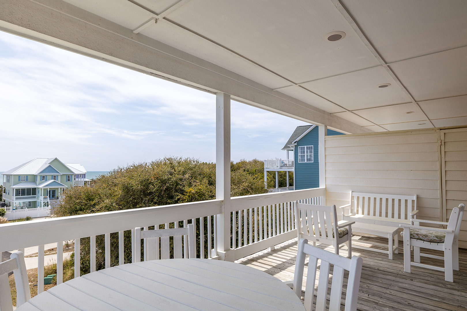 Nor Easter is an adorable 5-bedroom, 4-bathroom Oceanview Duplex (east side) beach retreat in the Spinnaker's Reach Community conveniently located just one house away from the community pool and beach access! You can take in great views of the beach from inside the home from multiple rooms and outside on the multi-level decks!