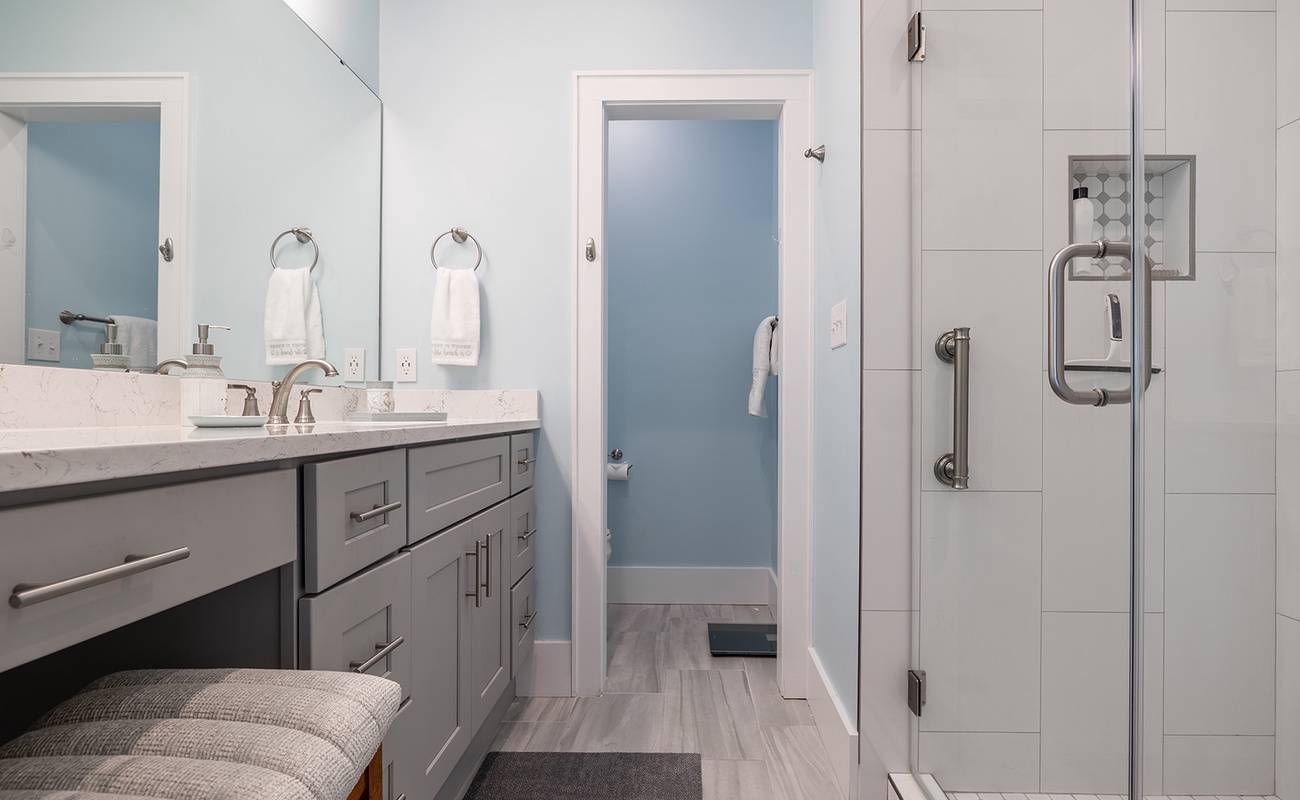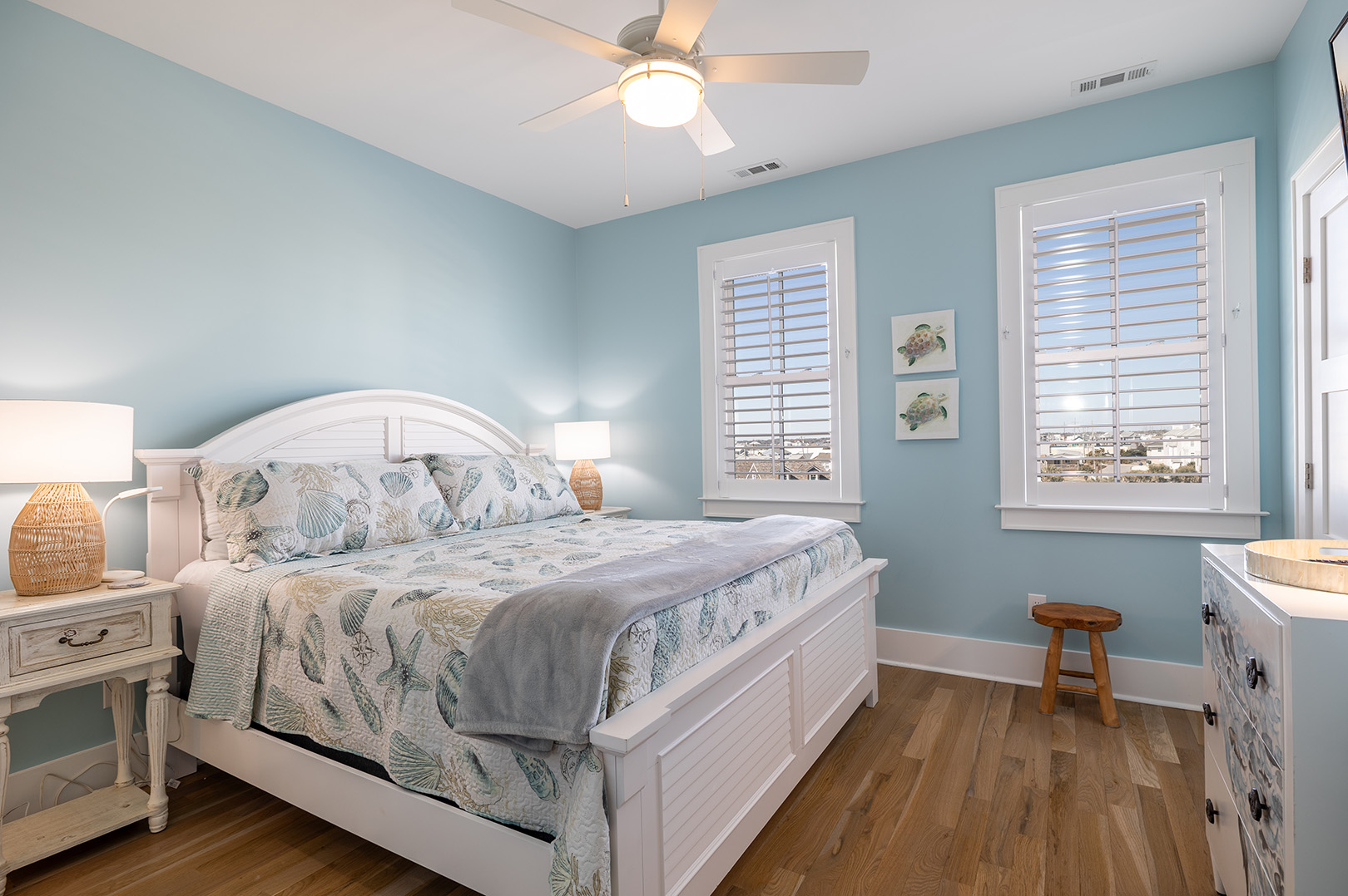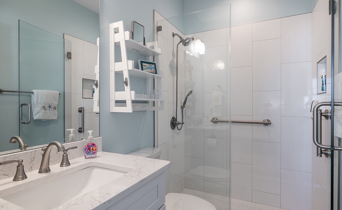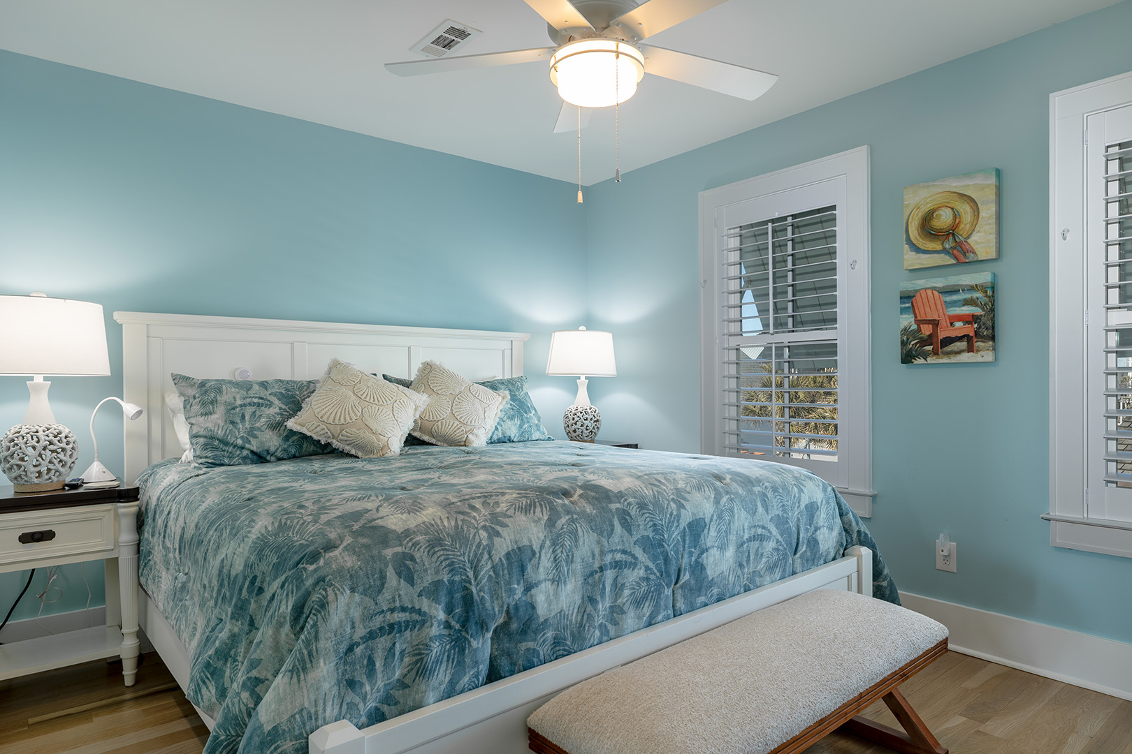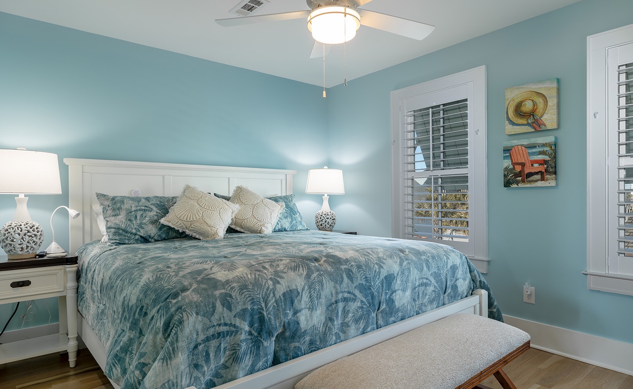 Accessible by elevator or stairs, this level has 3 coastal-inspired bedrooms.Â