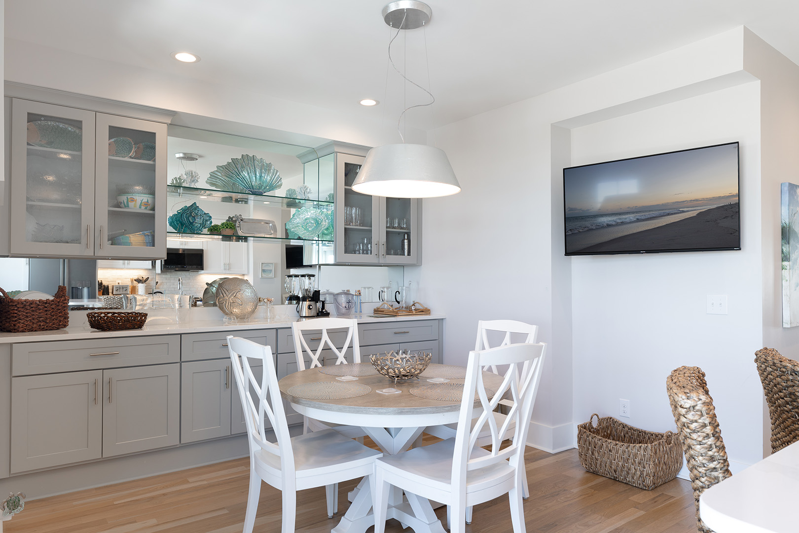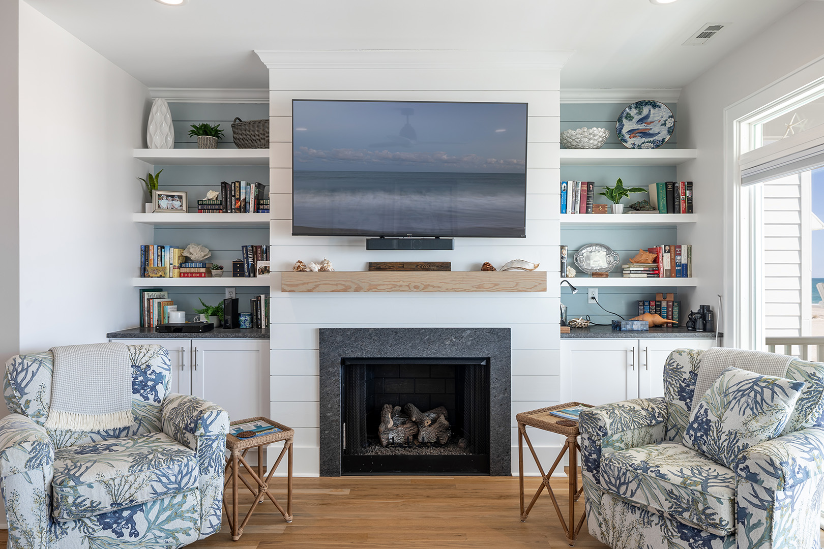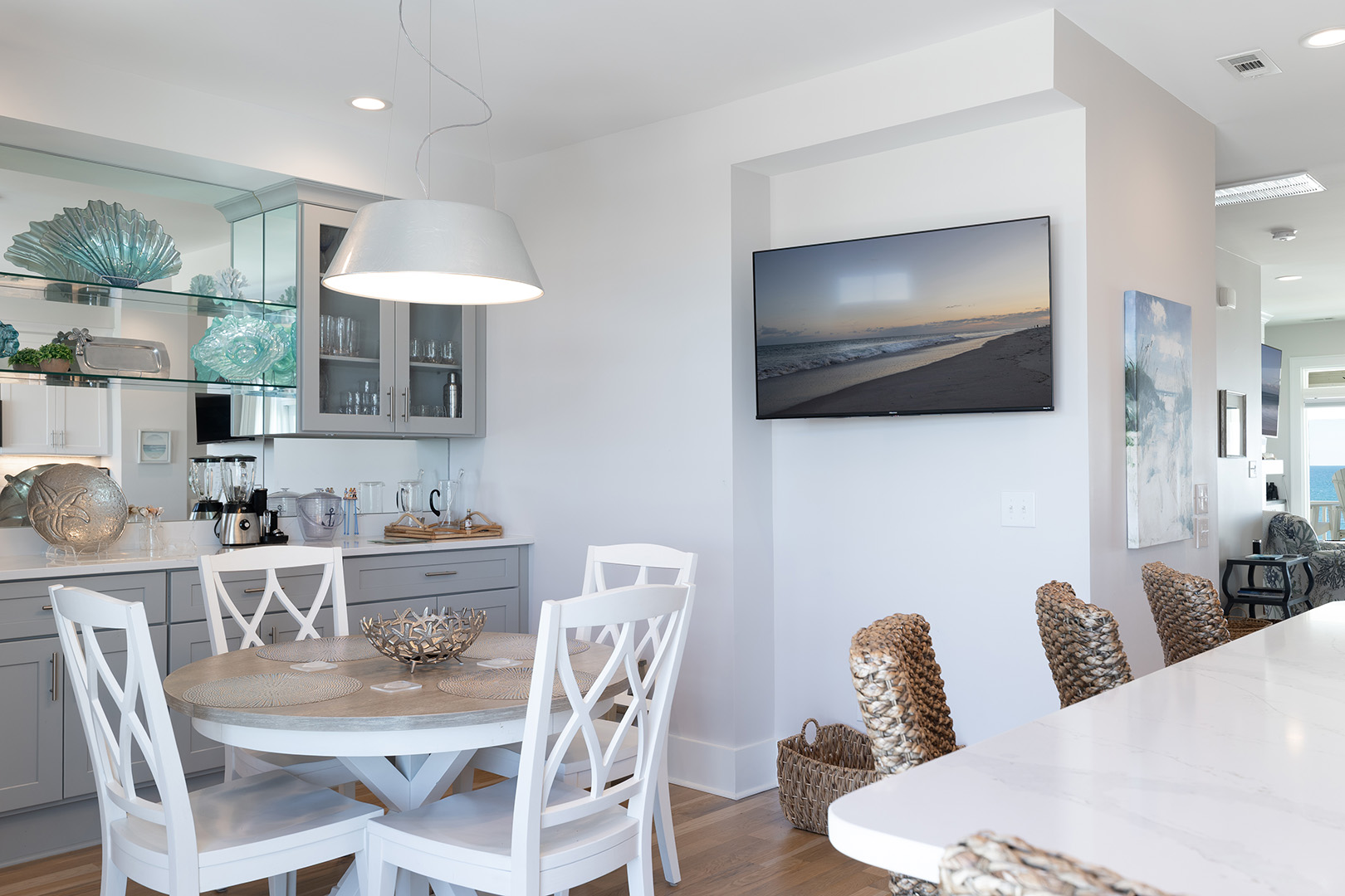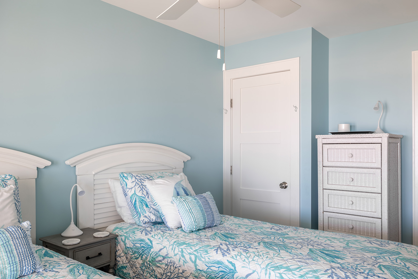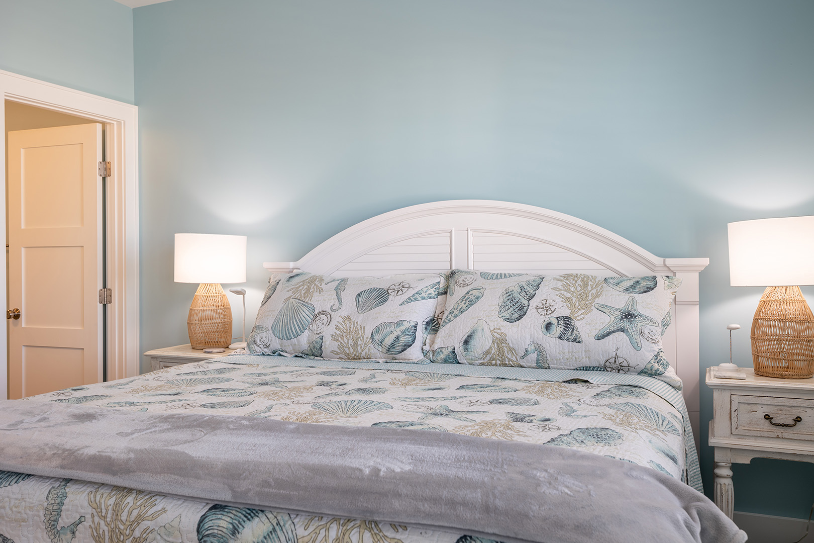 Accessible by elevator or stairs, this level has 3 coastal-inspired bedrooms.Â