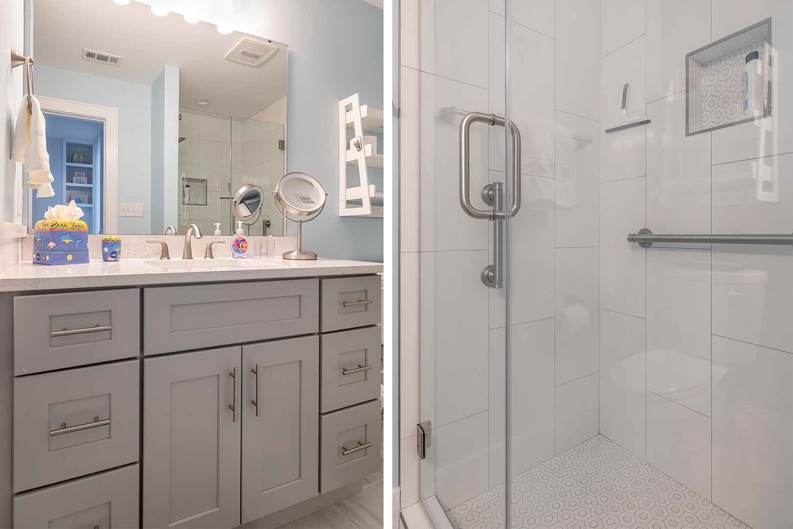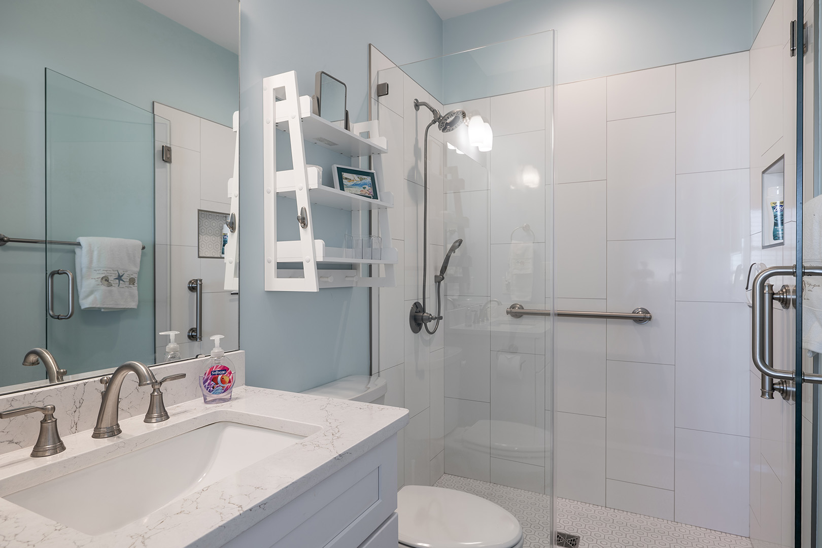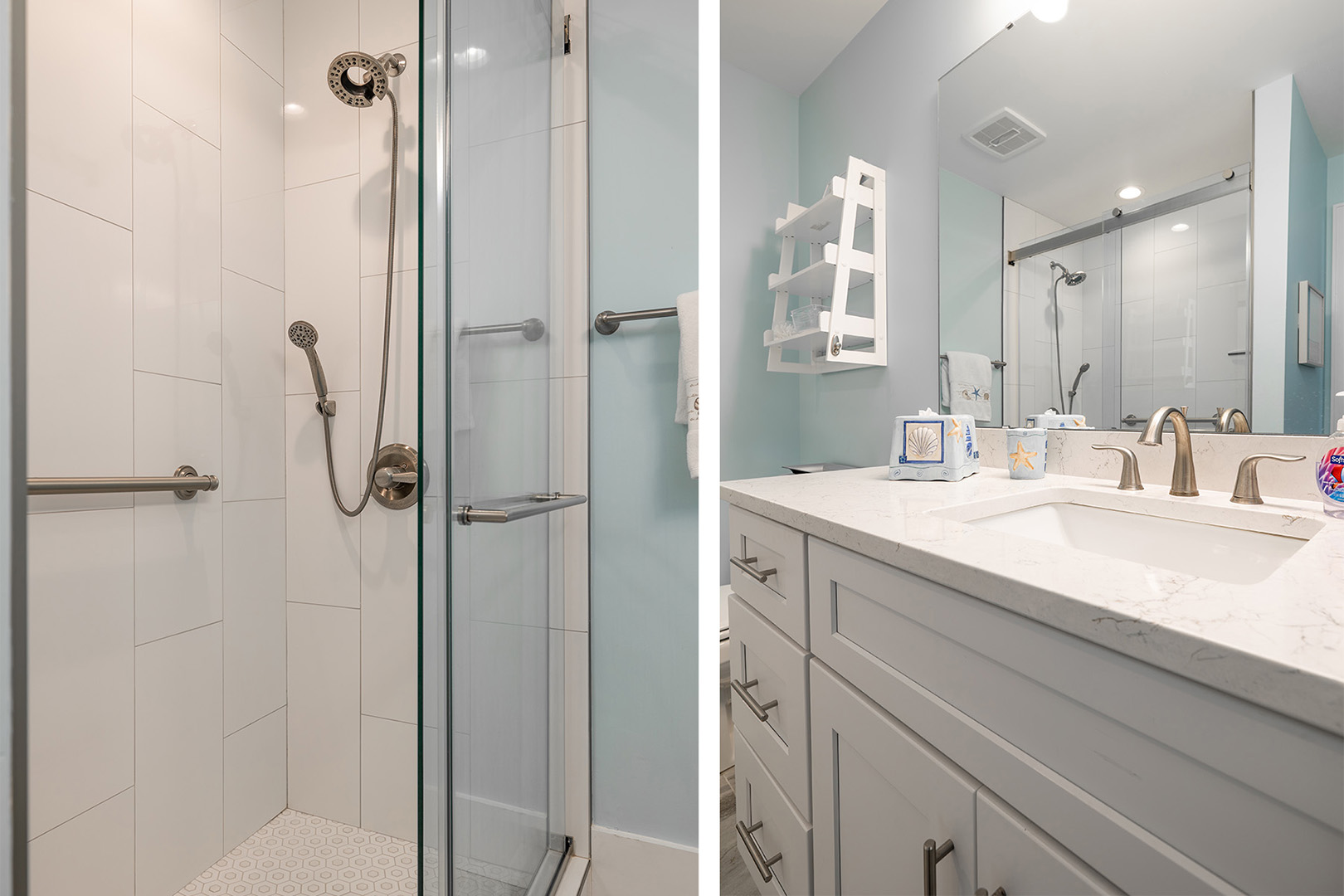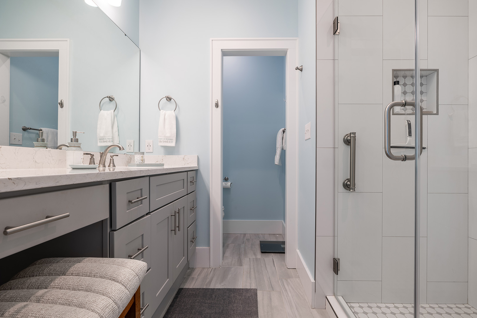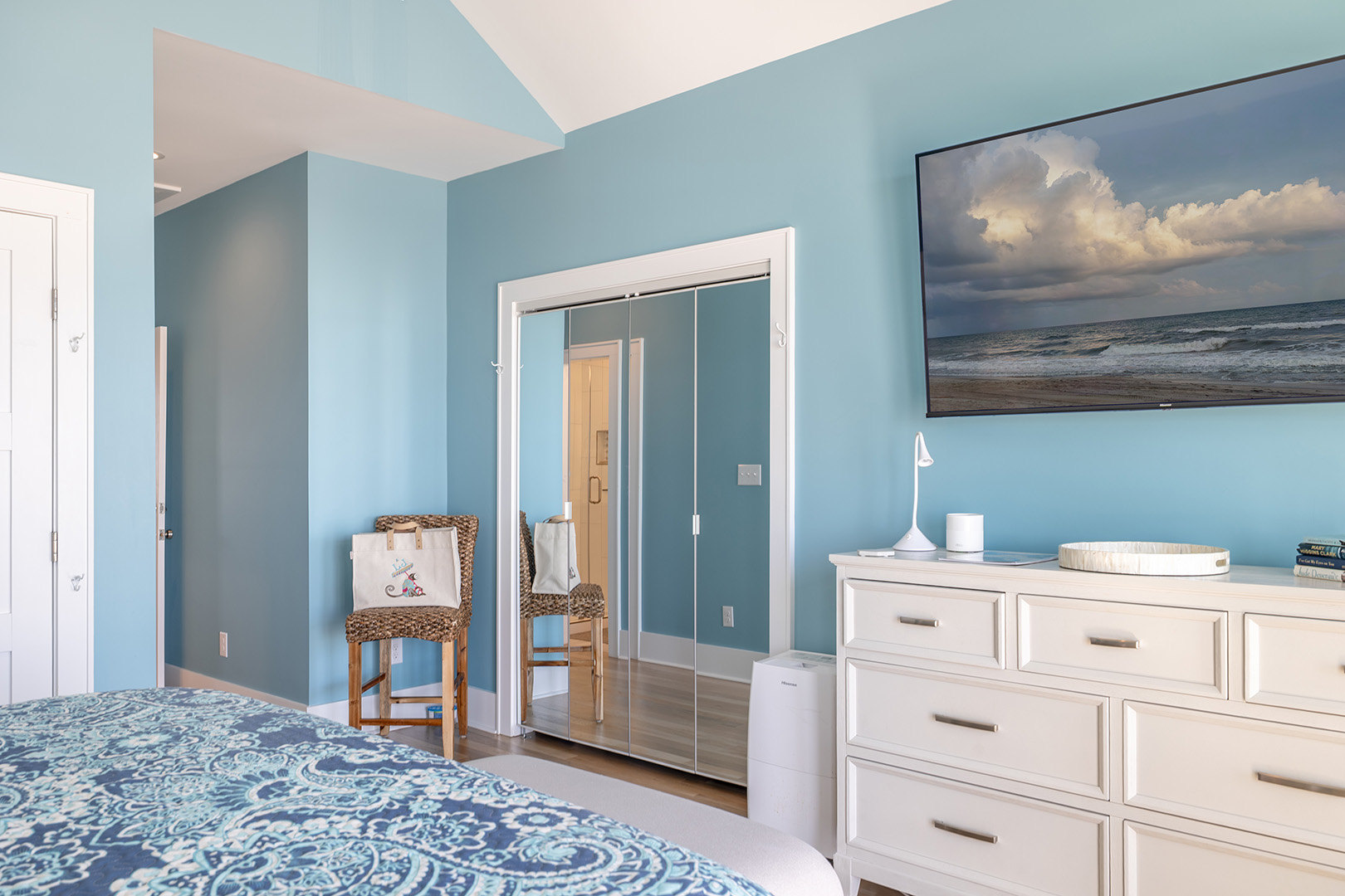 Accessible by elevator or stairs, this level has 3 coastal-inspired bedrooms.Â