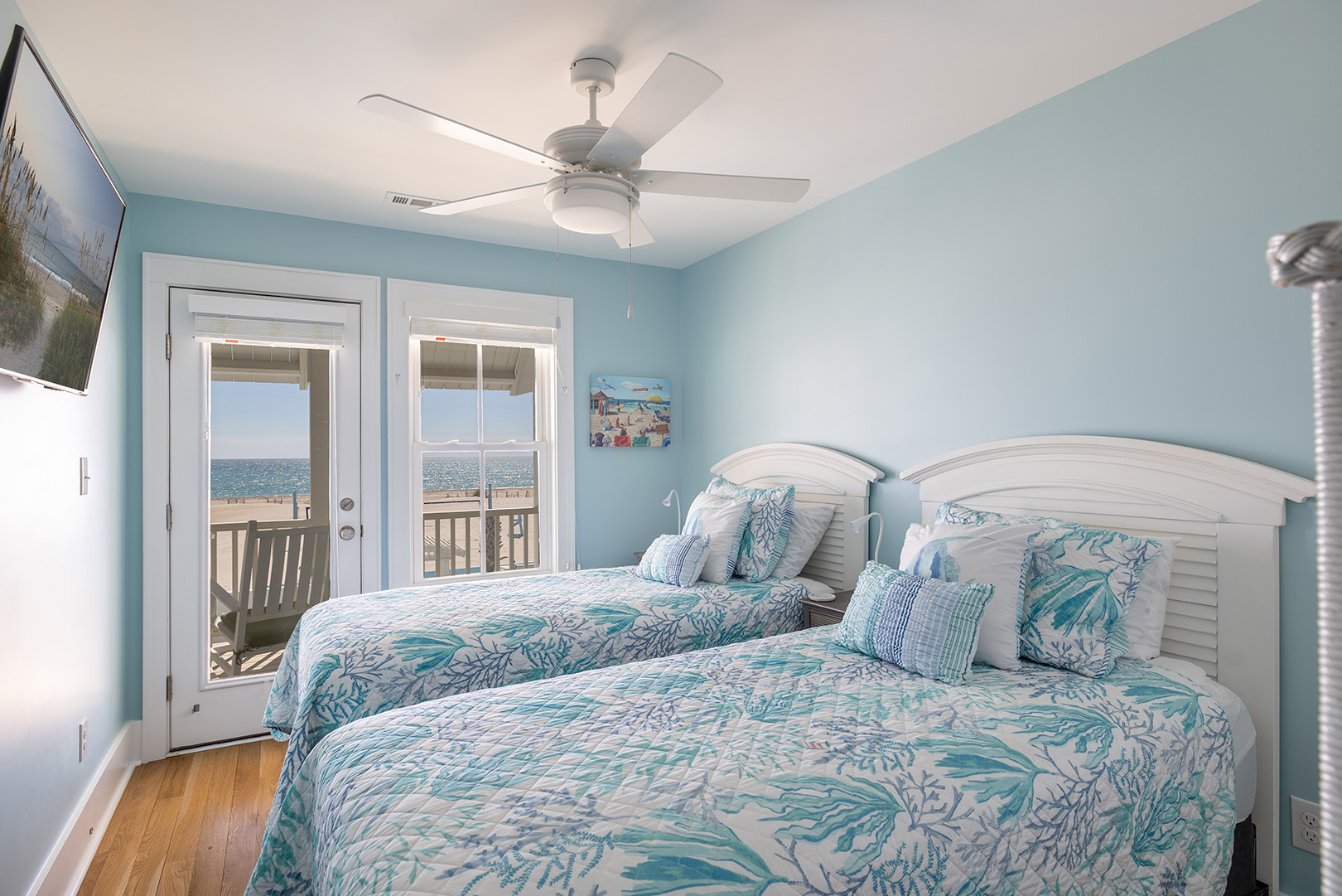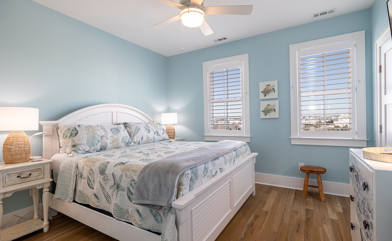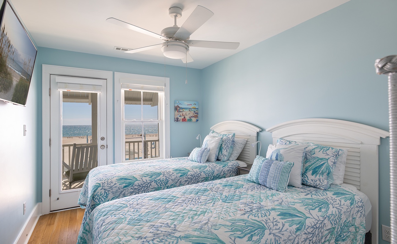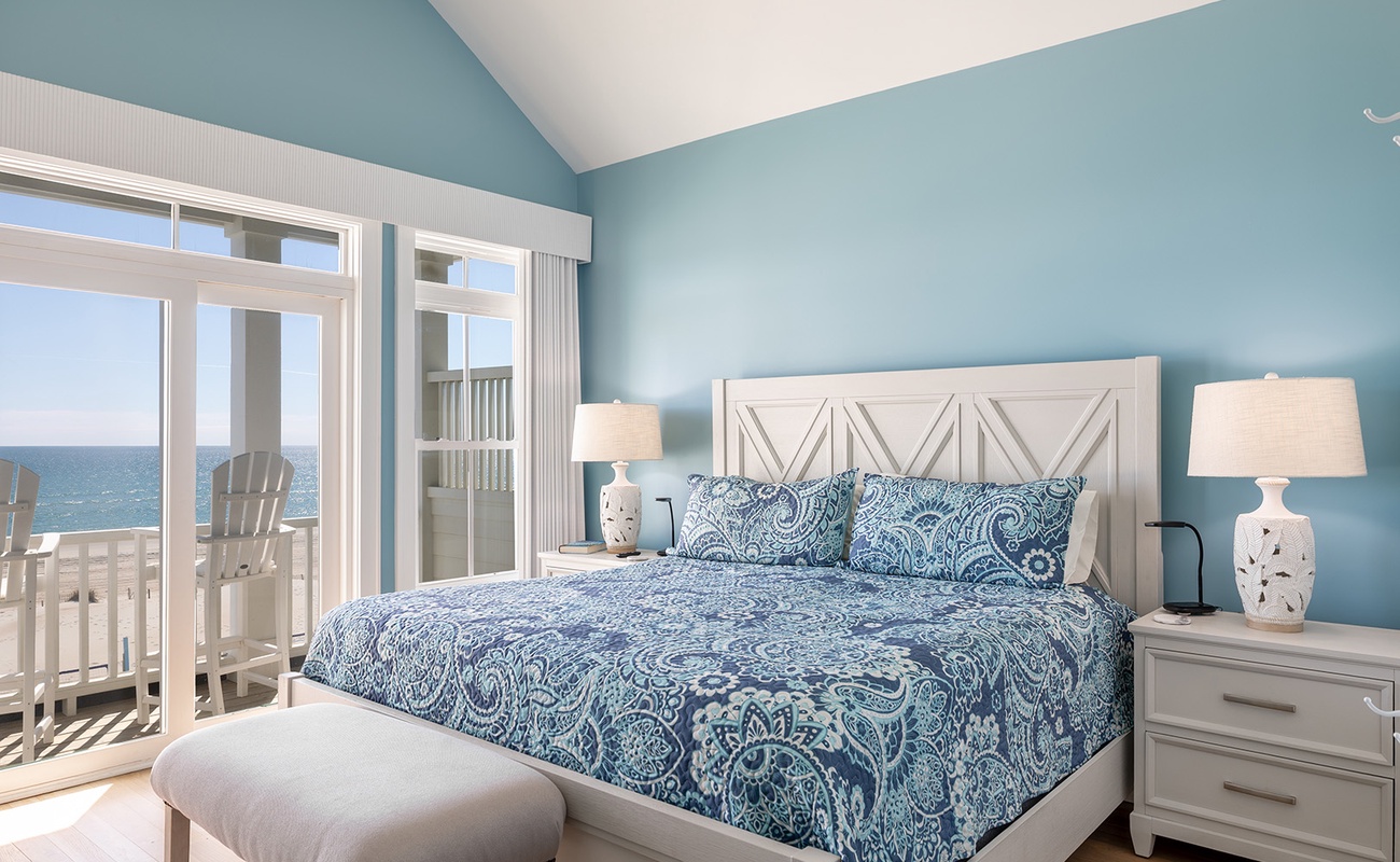 • Bedroom 4: Oceanfront Primary Suite with King bed, Smart TV, private bath, and private oceanview deck.Â