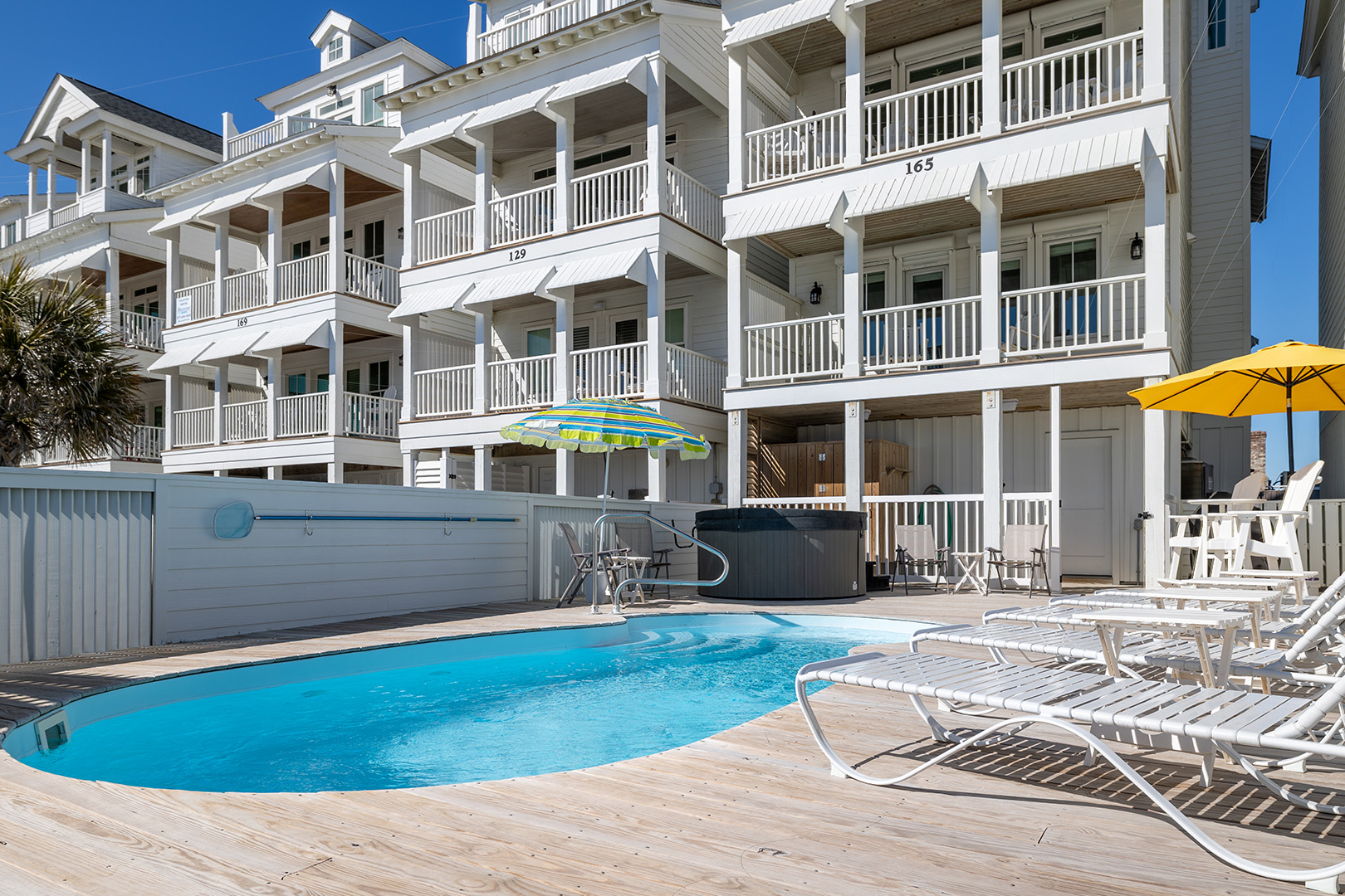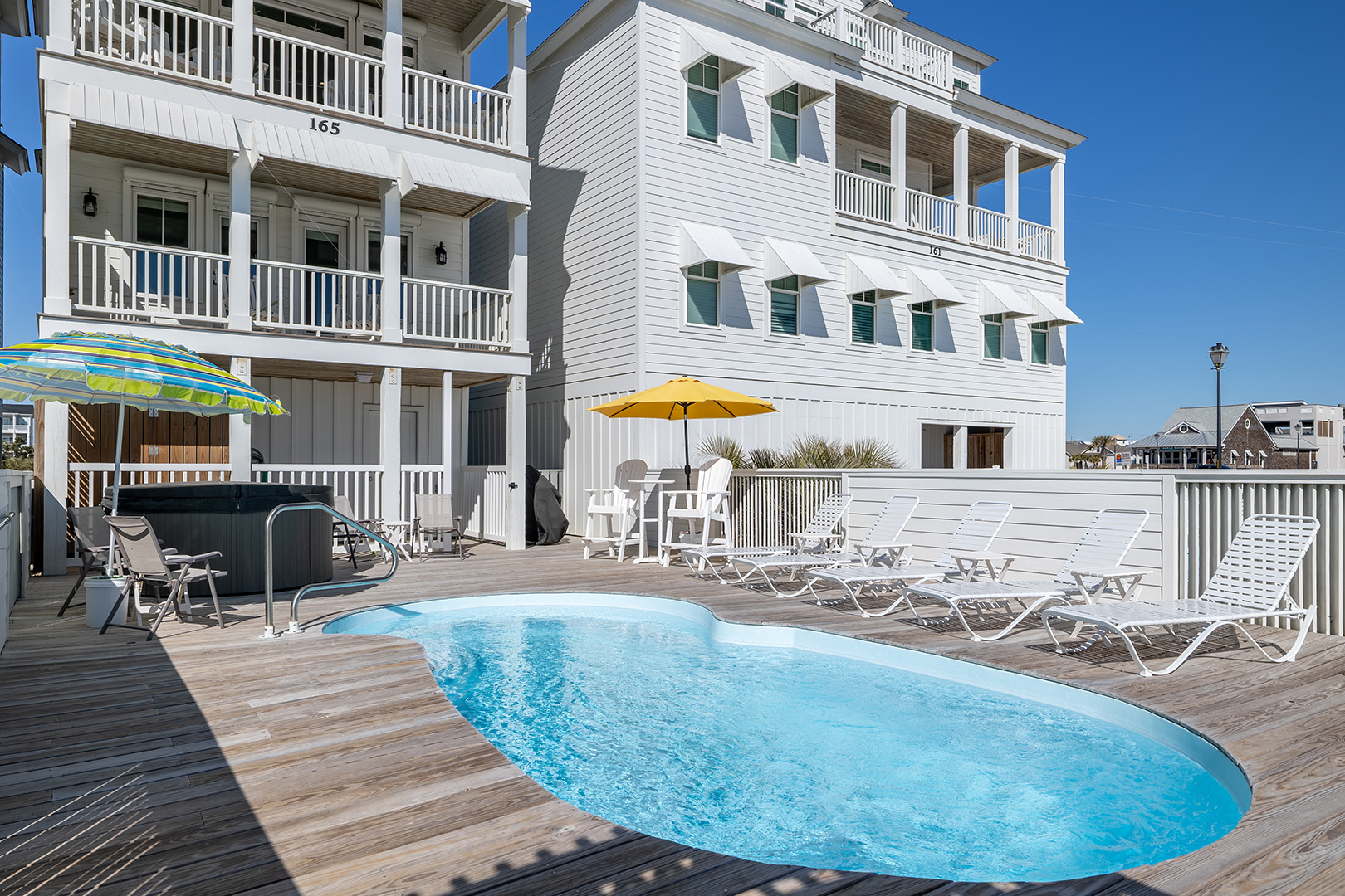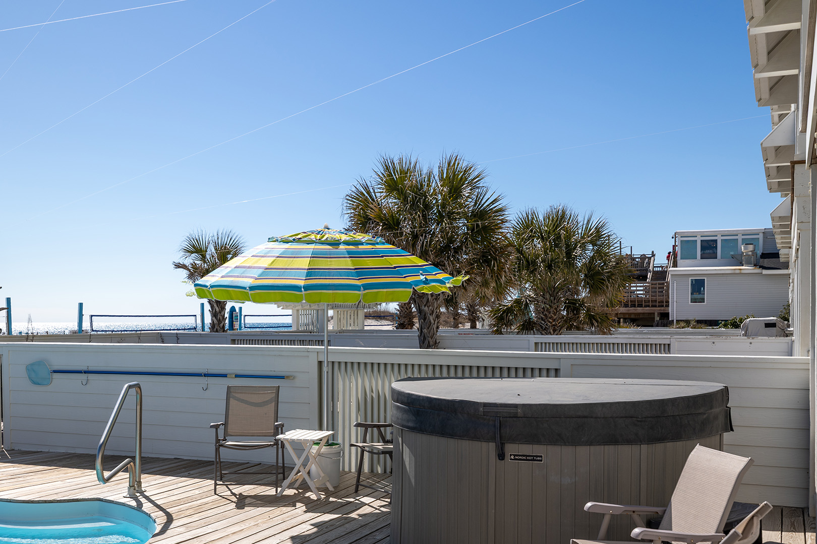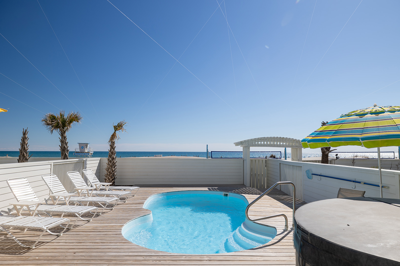 Park in the one car garage or right out front (one additional spot), then dive into your own private paradise featuring a sparkling oceanfront pool (heat available for $650/week + tax) and a 6-person hot tub, all set on a spacious deck with comfy seating. Ready to see the beach? Step through your private gate and straight onto the boardwalk and beach. And when it's time to eat, fire up the gas grill and enjoy a seaside cookout!