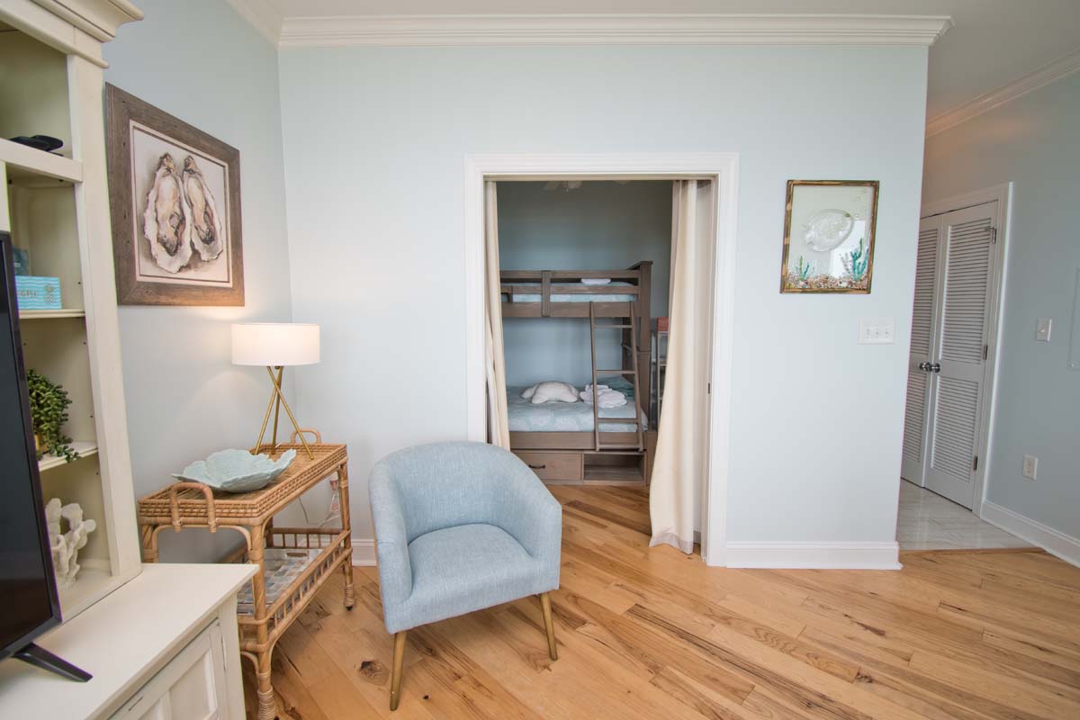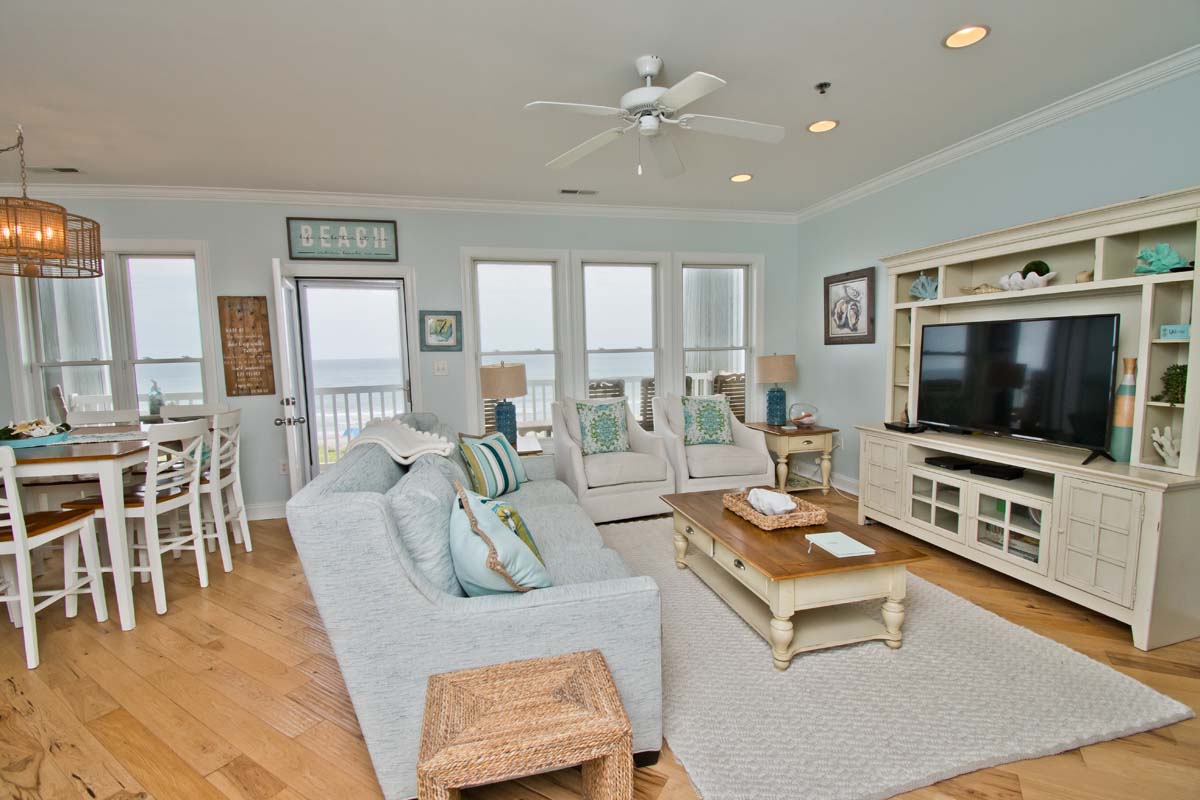 Ocean Club A203 is a 2 bedroom, 2 bath Oceanfront Condo with great views of the beautiful Atlantic Ocean! The Living Area has a Flat Screen TV. Bedroom #1 has a King Bed and a Flat Screen TV, Bedroom #2 has a Queen Bed and a Flat Screen TV. Bonus Room offers a Twin over Double Bunk Bed.