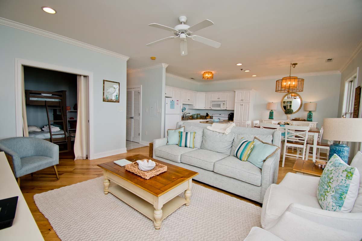 The Ocean Club Resort resonates with southern charm. Built in the Charlestonian style of architecture, the open living space of the villas harmonizes with the magnificent maritime environment. All villas have fully equipped kitchens, 1-2 bedrooms, 2 baths, washers/dryers and balconies. As the coastal destination resort, The Ocean Club offers every amenity. Access to the soundside fishing pier and launch areas for kayaks and paddleboards is also available. Grilling is just a few steps away via community park grill access. Featuring 3 pools including a gated Oceanfront heated pool, Soundfront pool, and children's pool, there is no end of things to do at the resort. For those who want to explore the Crystal Coast, shopping, dining, golf, eco-touring, charter wind surfing, fishing and scuba diving are just a few of the activities available nearby.