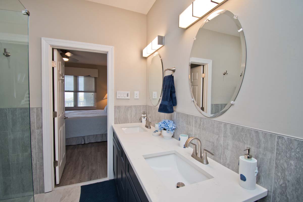 Bedroom #1 offers a King Bed with space for turn-around and private en suite bath with space for turn-around and a roll-in shower; Bedroom #2 provides a Queen Bed and access to the Shared Bath; Bonus Room with 2 Twin Beds and access to the Shared Bath; and the Living Area provides a Queen Sleeper Sofa - there are plenty of places to rest your head! All bedrooms have clocks with built in charging stations.