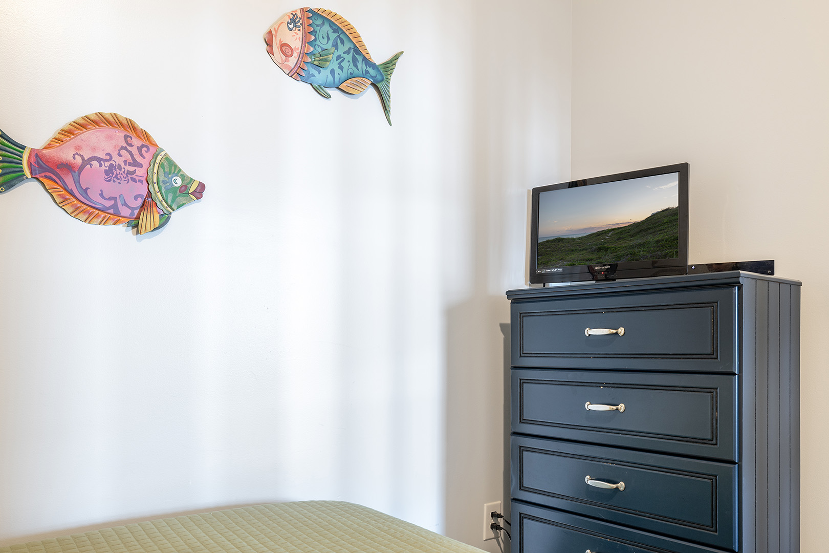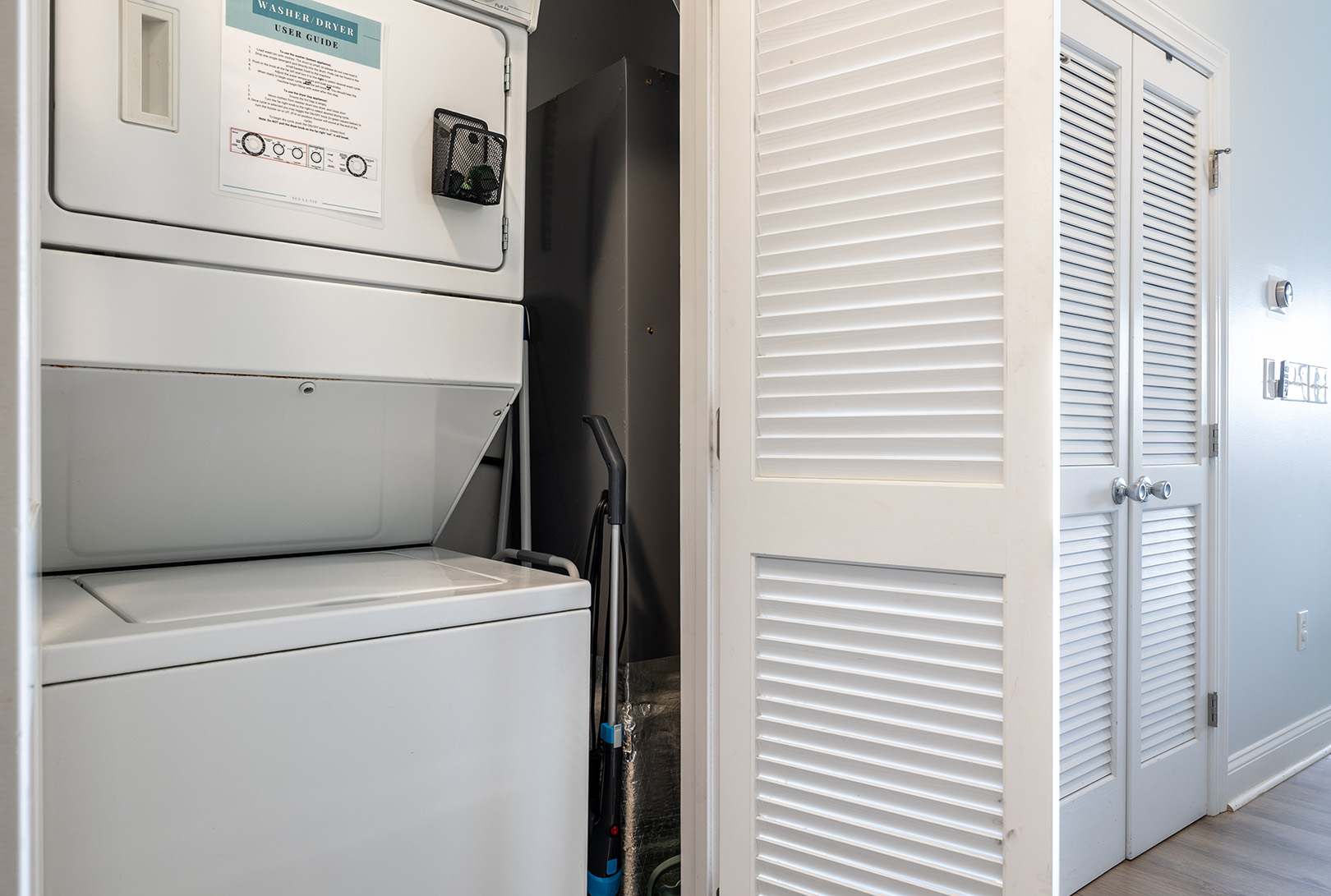 Amenities: 4 Smart TVs, Basic Cable, High Speed Wireless Internet; Central HVAC; Ceiling Fans; Hair Dryer; Iron/Ironing Board; Water Treatment System; In-Unit Washer/Dryer; Well-Equipped Kitchen with Stove/Oven, Refrigerator with Attached Ice Maker, Keurig K-Duo Coffee Maker, Dishwasher, Microwave, Slow Cookers, Blender; Private Covered Deck with Furniture; Covered Parking. Guests have access to the downstairs closet, which is stocked with eight beach chairs for your use.
