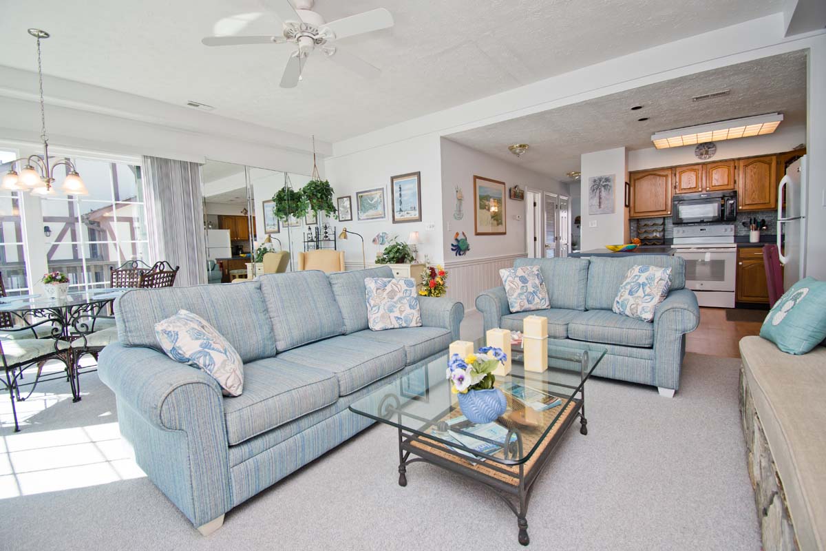 Ocean Reef 4-B2 is a 2 Bedroom, 2 Bath Second Floor Oceanfront Condo in the unique Tudor-styled gated condominium complex Ocean Reef. The Ocean Reef Community is situated on the narrow part of Emerald Isle and offers various community amenities including shuffleboard, tennis court, large swimming pool, and a covered community area with picnic tables by the pool!