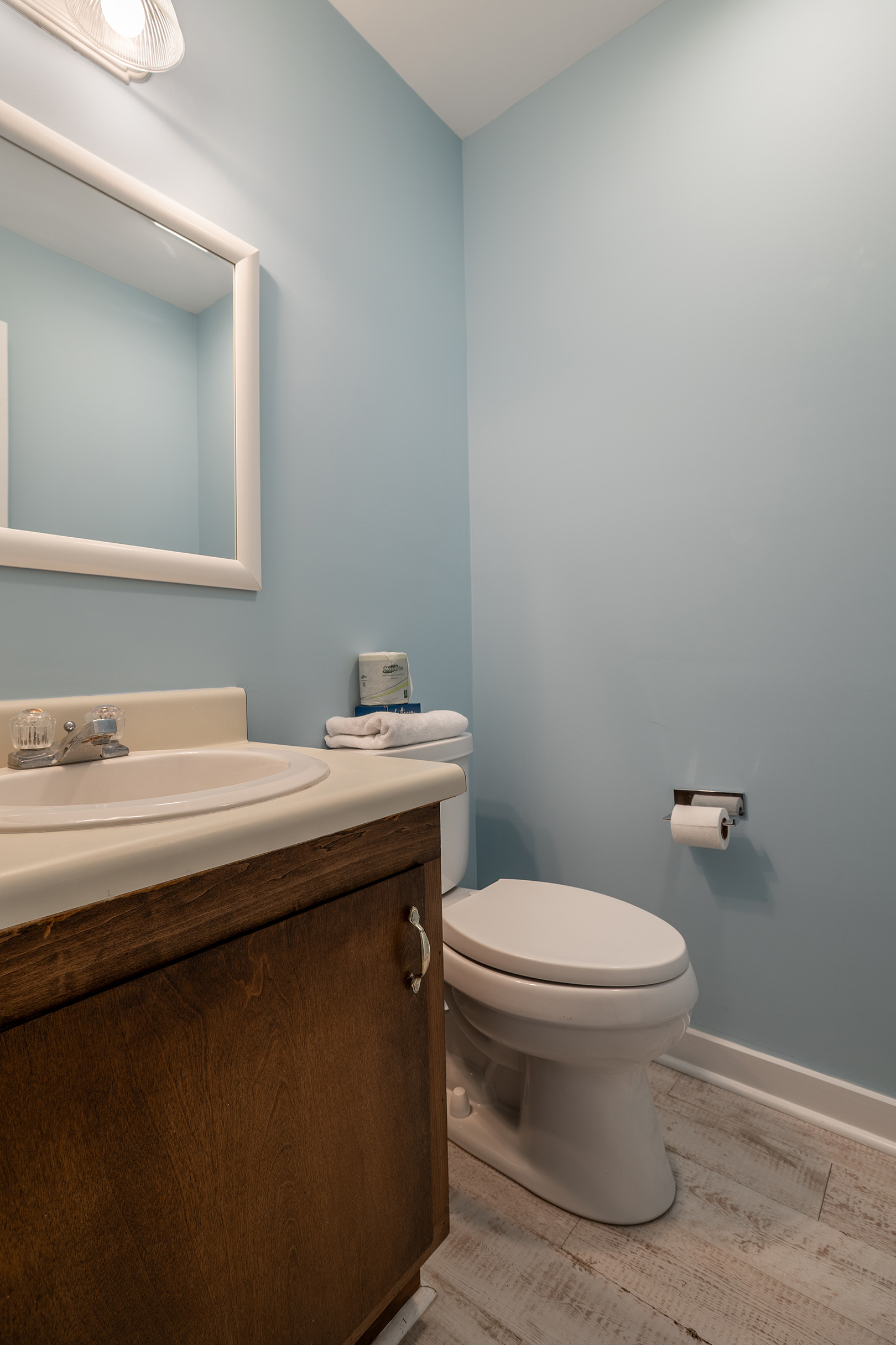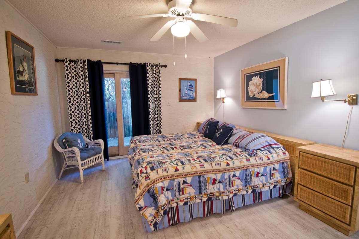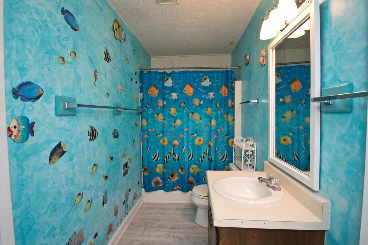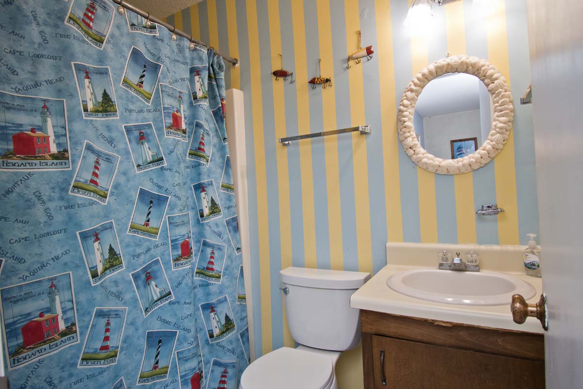 Level One: The kitchen area has a huge breakfast bar and appliances including microwave, dishwasher, coffee maker, refrigerator, icemaker, air fryer/toaster oven, blender. The furniture is comfortable with plenty of deck space. Bedroom # 4 has a King Bed. The primary bath has been enlarged with shower and free standing tub with double vanity sink. Sliding doors provide access to the private elevated deck overlooking the grassy common area. Perfect for reading, private time, or checking in at work. FREE High Speed Wireless Internet Provided!