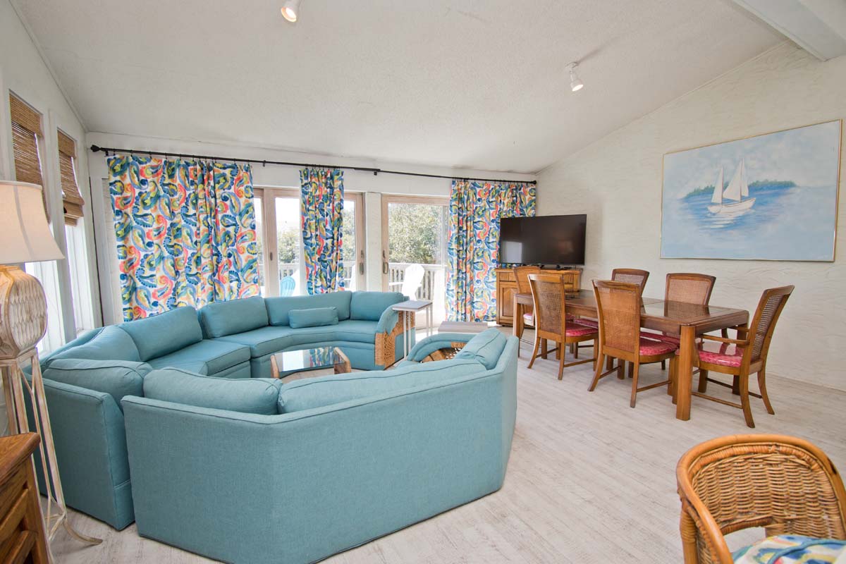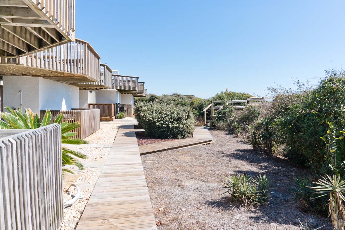 Located in the sleepy beach town of Pine Knoll Shores, which is a virtual bird and turtle sanctuary at the beach, The Oceans is a small, very private condo complex nestled in the trees. A short stroll along our easy access, private boardwalk puts you on the beach. Plus, there is an elevated common deck area prefect for social gatherings and enjoying sunset views! Looking for some family fun nearby? Check out the North Carolina Aquarium at Pine Knoll Shores, or learn some history at Fort Macon State Park.