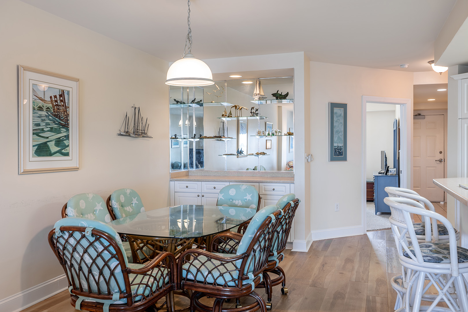 Bedroom #1 is the Master bedroom with a King bed, Waterfront Deck access, with great views. Bedroom #2 and Bedroom #3 each have a Queen bed. Well-appointed Gourmet Kitchen. Dining Area has seating for 6, plus additional Bar seating for 2.