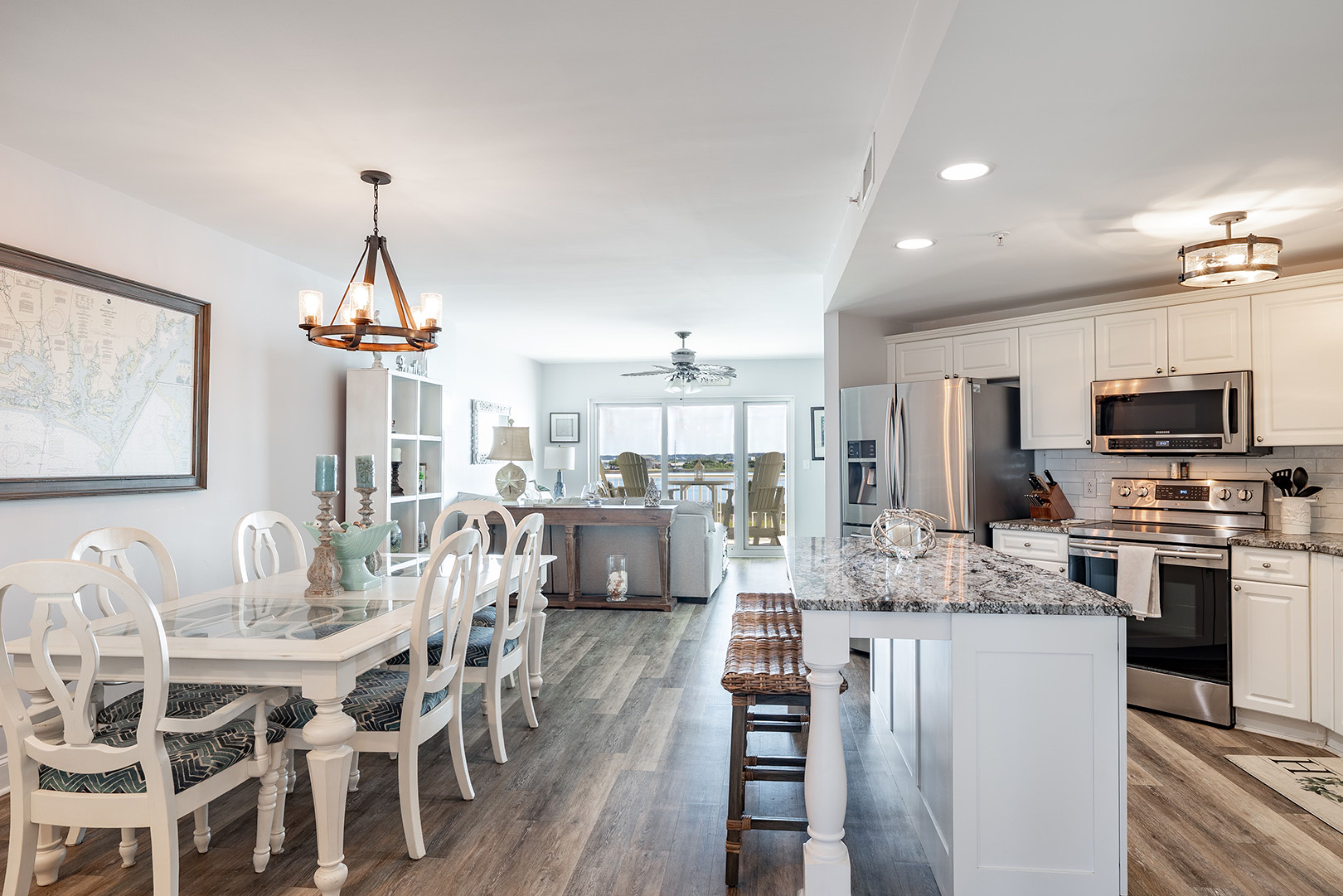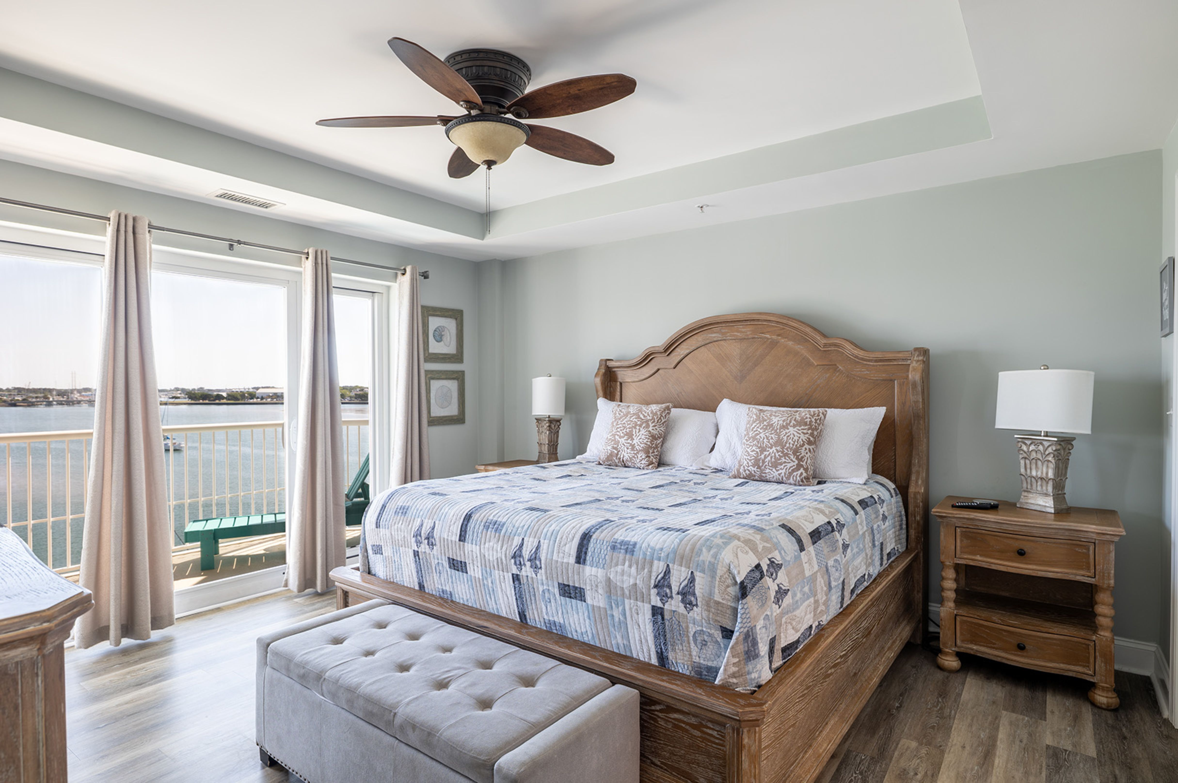 Bedroom #1 is the Master bedroom with a King bed, Waterfront Deck access, with great views. Bedroom #2 and Bedroom #3 each have a Queen bed.