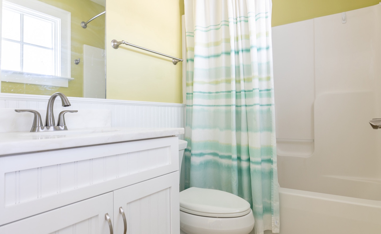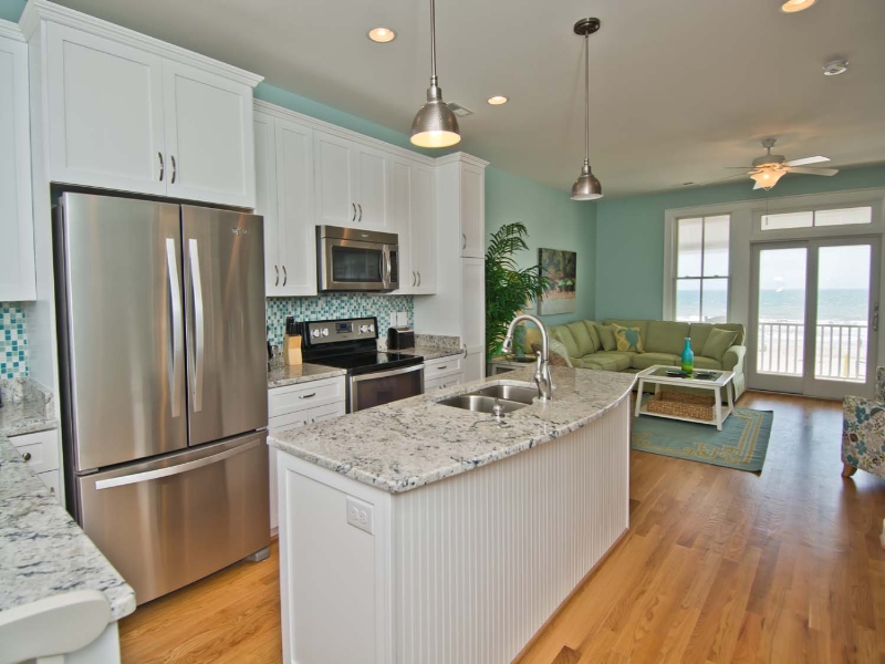 Level Two features open concept kitchen, living and dining areas. The gourmet kitchen boasts a dine at bar and granite counter tops, a double sink, dishwasher and range. Relax with a Smart TV (with access to your Netflix, Amazon, etc) in the oceanfront living area, or step out onto the covered deck and take in the Ocean views. Dine together in style just steps away from the ocean breeze or step out onto the soundside balcony off of the dinning room. You'll also find a half bath on this floor for your convenience.