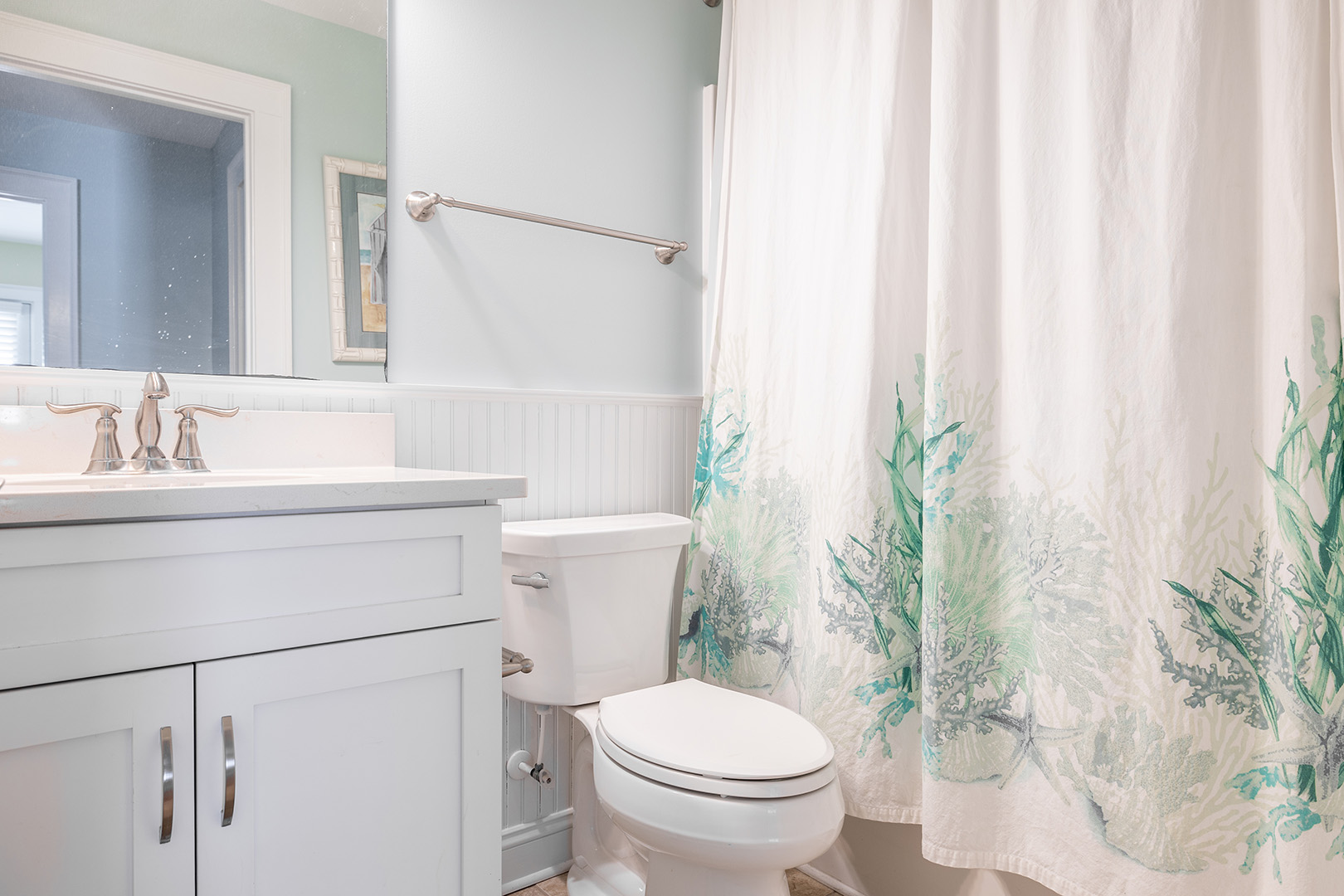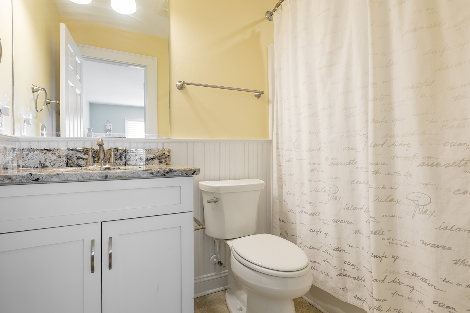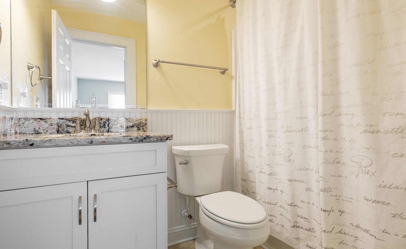 Head up the stairs (or hop onto the elevator!) and kick back on Level Three. Once here, you'll find the specious Master Suite (Bedroom 4) and Bedroom 5. The over-sized Master Bedroom 4 retreat features cathedral ceilings, King Bed, Flat screen TV and a private bath with granite counter tops, double sinks, large step in shower and a private deck overlooking the coastline. Master Bedroom 5 is on the soundside of the home and offers a Queen Bed, Flat screen TV and features a private full bath. Enjoy the ocean and sound views on the four balconies - 3 on the ocean side and one on the sound side! This home has also been stocked with your kids and pets in mind.
