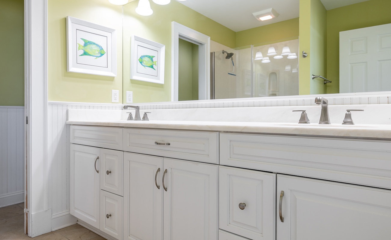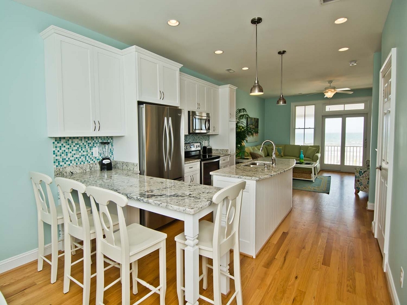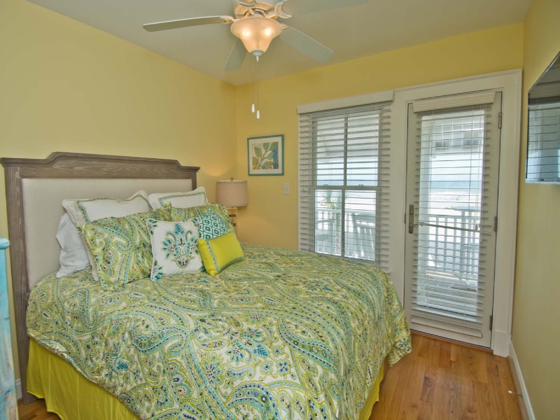 You may enter Level One from the elevator, stairs in the garage or the stairs leading to the first level front porch. Stepping into an open area, this level is complete with 3 of the 5 bedrooms. Bedroom 1 boasts a magnificent ocean view with a Queen Bed, Flat screen TV, closet and direct deck access. Bedroom 2, not lacking in appeal, also has an ocean front view, Queen Bed, Flat screen TV, closet, and direct access to the deck. A full bath is located directly outside of these two bedrooms. Down the hall there is a washer and dryer, conveniently located for you and your family to drop your attire from a day at the beach or pool. Bedroom 3 has 2 Twin Beds, Flatscreen TV, Private Full Bathroom, closets complete the rooms on this level.