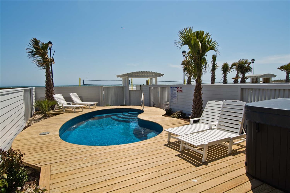 Come experience seaside bliss at the newest exclusive locale in Atlantic Beach - The Grove! The homes at Palm Cottages at The Grove feature breathtaking ocean views and endless upgrades including hardwood floors, Master Bedrooms, walk-out oceanfront balconies, Flat Screen TVs, High Speed Wireless Internet, gourmet kitchens with granite counter tops and your own private outdoor oasis with Hot Tub and 11 x 20 Pool which can be heated year round upon request for $650/week + tax. Offering five bedrooms, this home has plenty of space for the entire family - including your dog -with the Atlantic Ocean just steps away.