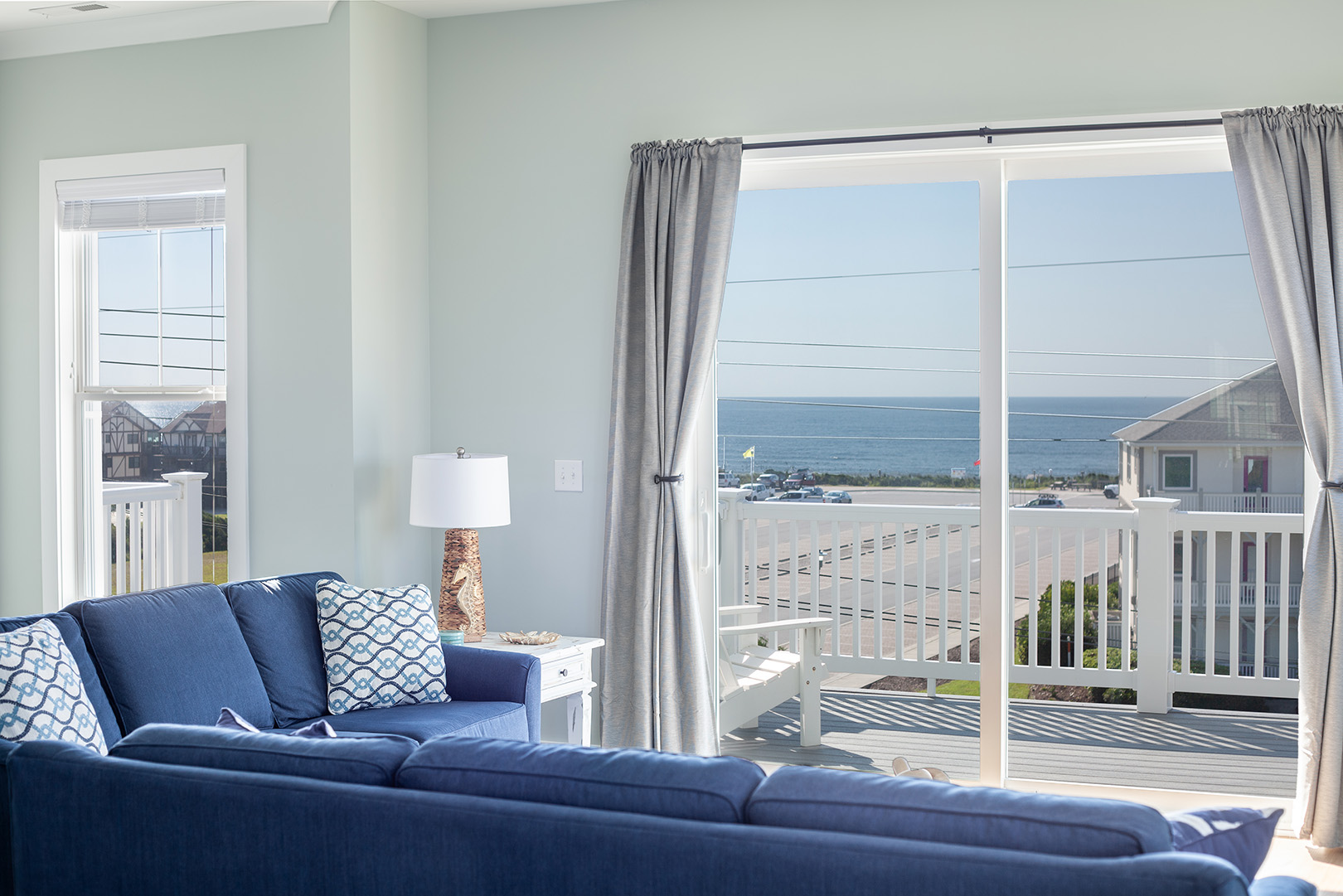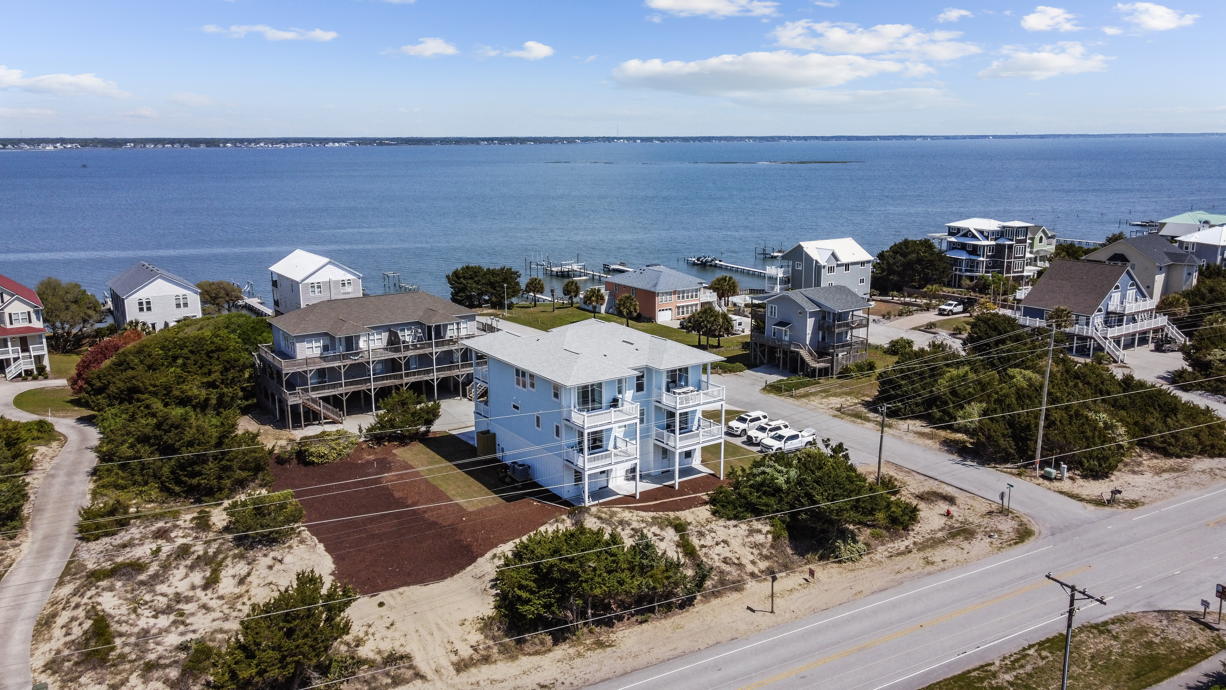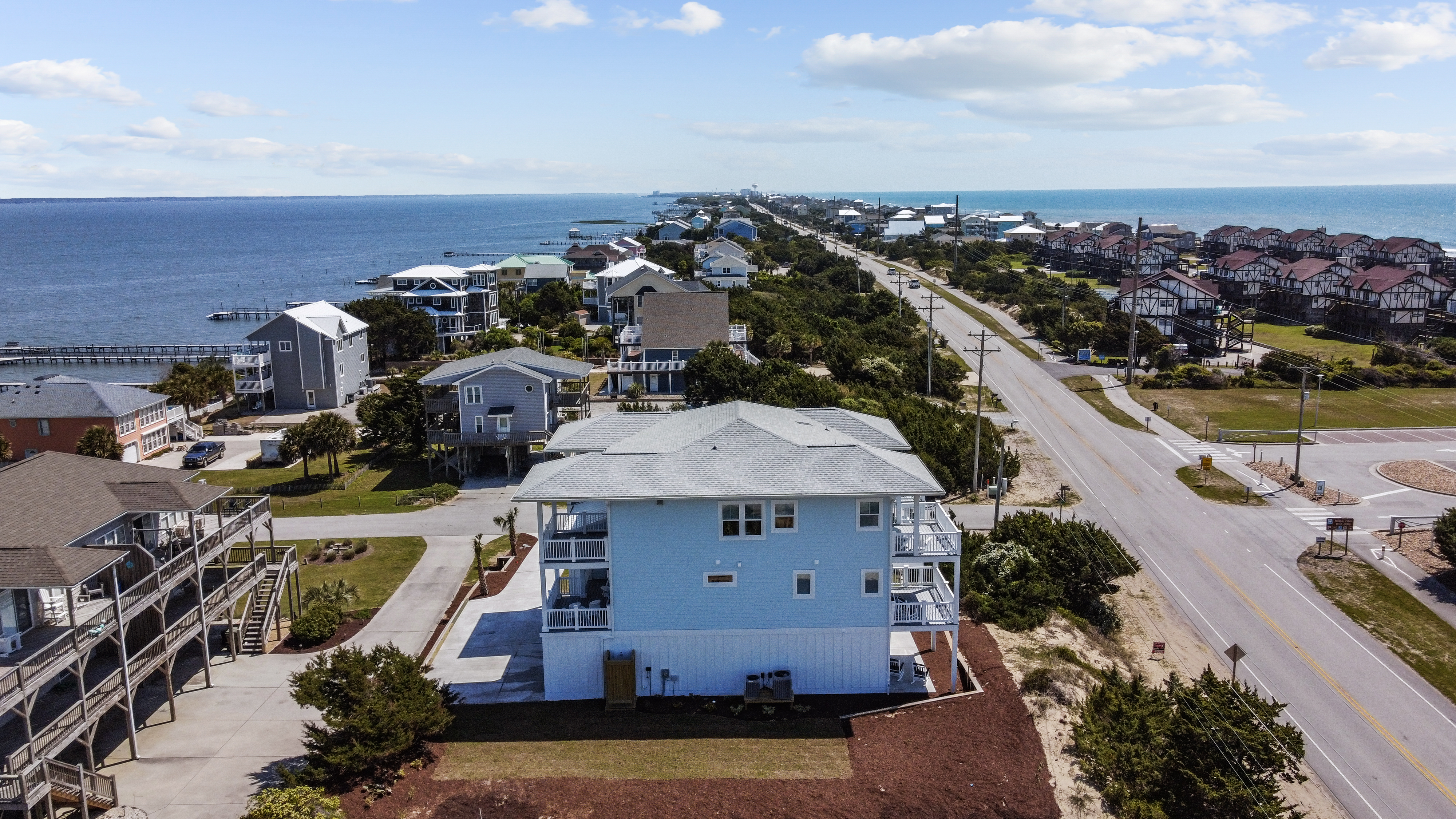 Step out onto one of the four covered decks, each offering beautiful views of either the seaside or sound side, and furnished for your comfort. Each bedroom also features its own private balcony, perfect for sipping morning coffee or enjoying evening breezes. Just a block from the beach, this property also features an outdoor shower with hot and cold water, as well as a foot wash for easy post-beach cleanup.