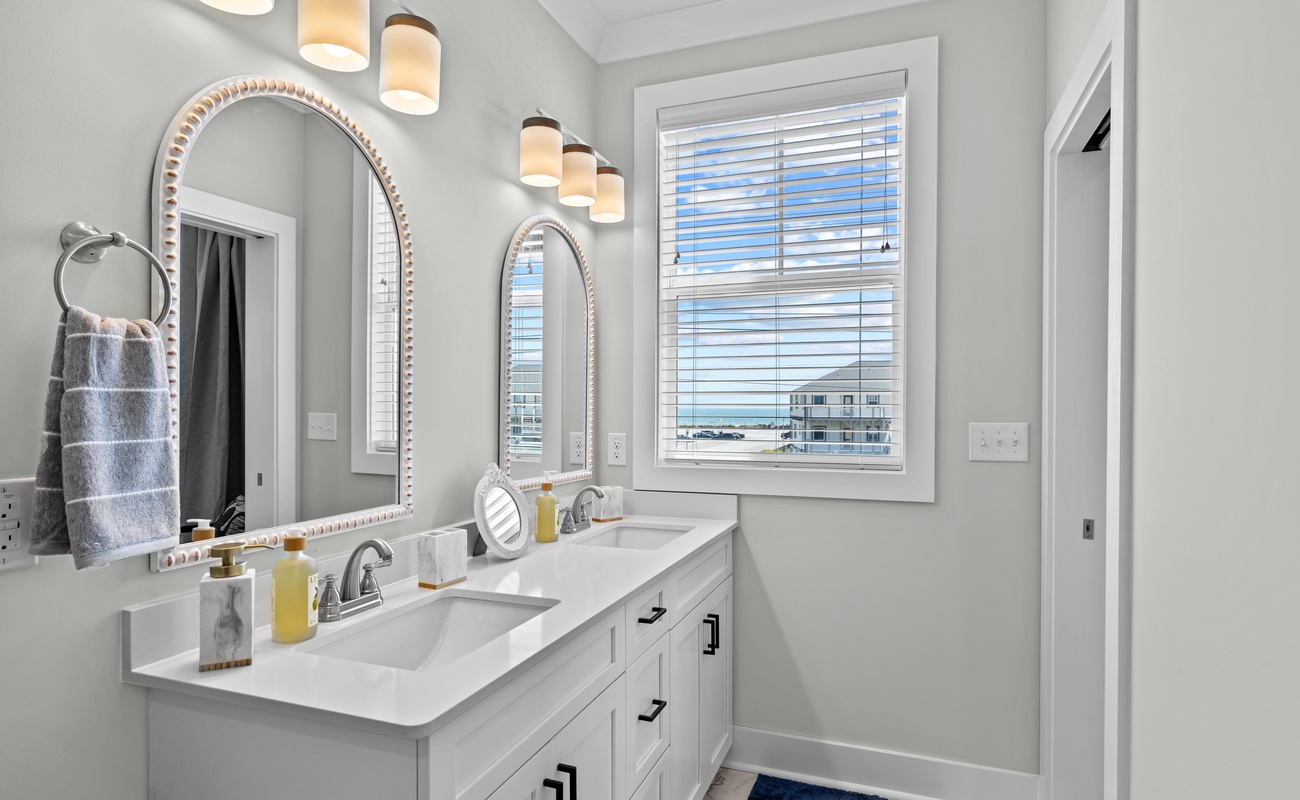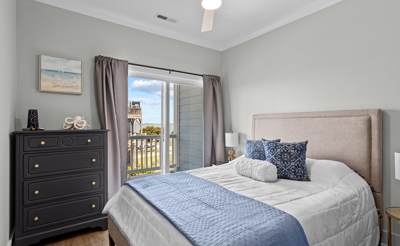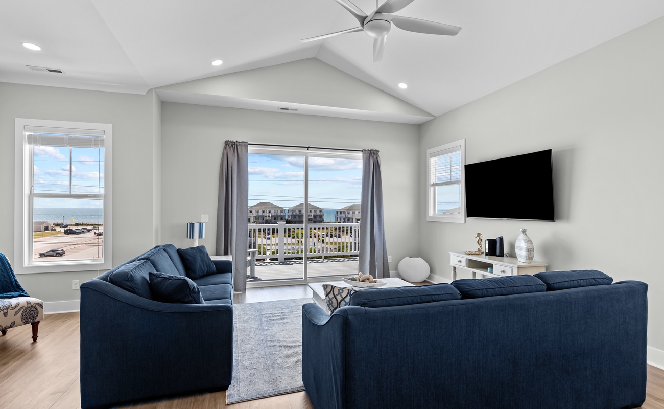 Step out onto one of the four covered decks, each offering beautiful views of either the seaside or sound side, and furnished for your comfort. Each bedroom also features its own private balcony, perfect for sipping morning coffee or enjoying evening breezes. Just a block from the beach, this property also features an outdoor shower with hot and cold water, as well as a foot wash for easy post-beach cleanup.