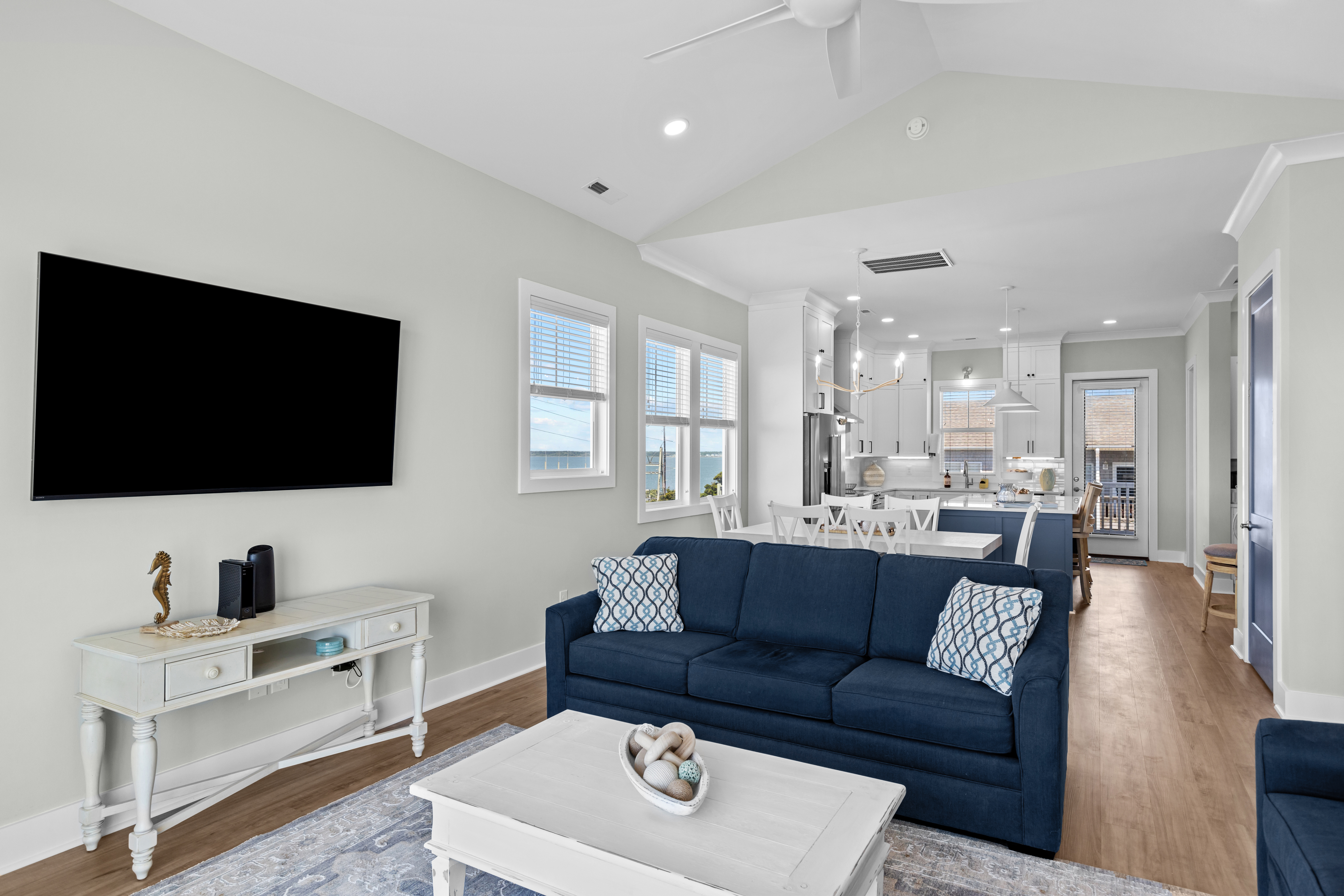 Ideal for families, the rental includes a highchair, booster seat, and mini crib for little ones. Stay entertained with board games stashed in the coffee bar cabinet, and head to the beach with ease using the provided beach buggy and beach chairs. For water sports enthusiasts, enjoy access to a nearby public soundfront pier with a large deck, boat slip, and seating. Bring your surfboard, windsurfer, jet ski, or shallow-draft boat to explore the serene waters of the Sound.