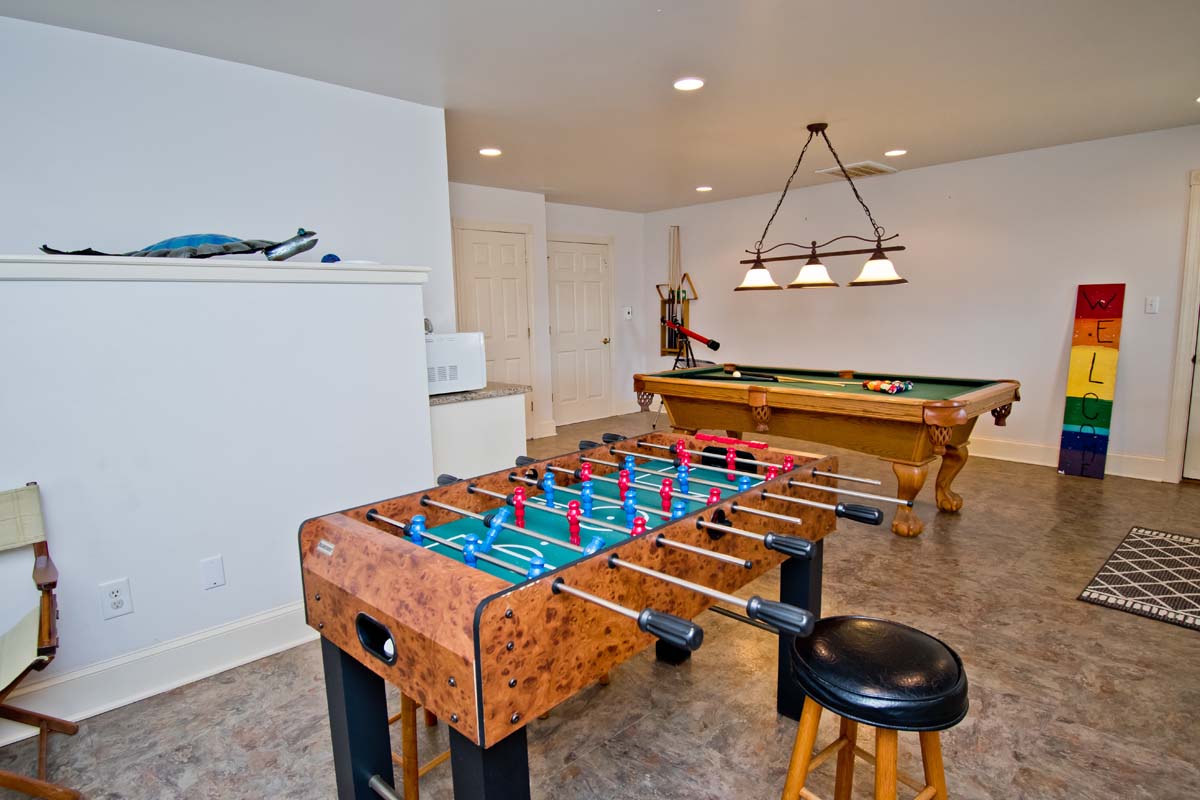 Additional Amenities: High-Speed Wireless Internet; 6 Smart TVs; Elevator - ground floor to first floor only - does not access second floor; Gas Grill, Enclosed Hot/Cold Outdoor Shower; Interior Washer/Dryer; Fully Equipped Kitchen with Coffee Maker, Keurig Style Coffe Maker, Oven, Refrigerator, Stand-Alone Ice Maker; 2 Microwave, Dishwashers, Stand Alone Icemaker, Griddle, Mini Fridge, Toaster Oven, Slow Cooker, and Blender; Recreation/Game Room, Pool Table, FoosBall Table, and Card Table. Fireplace is NOT AVAILABLE at any time.