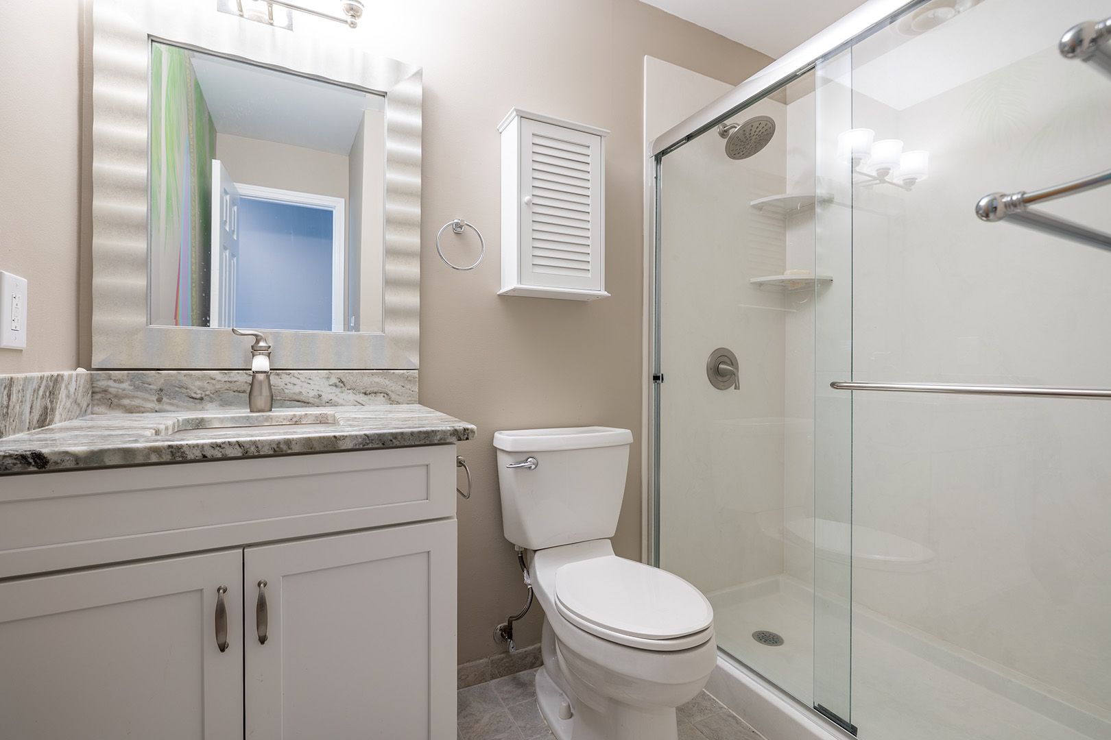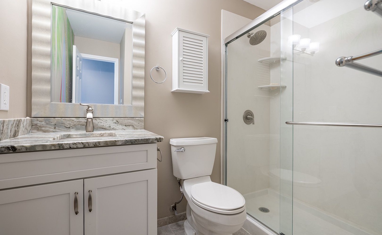 • Bedroom #1: A spacious King Suite with Smart TV and private en suite full bath - your peaceful retreat at day’s end.