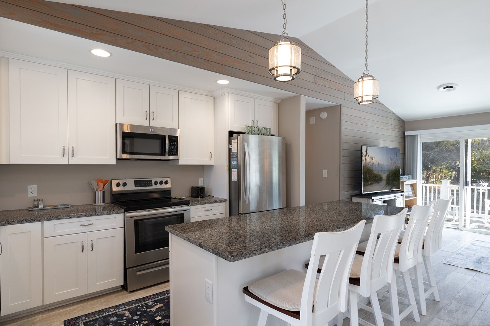 The well-equipped kitchen is ready for everything from easy beach breakfasts to full family feasts. Featuring updated stainless steel appliances and stocked with all the essentials - utensils, small appliances, slow cooker, and even a gas grill - you’ll have everything you need to dine your way. Prefer to skip the cooking altogether? That’s perfectly fine. This is your time to unwind.