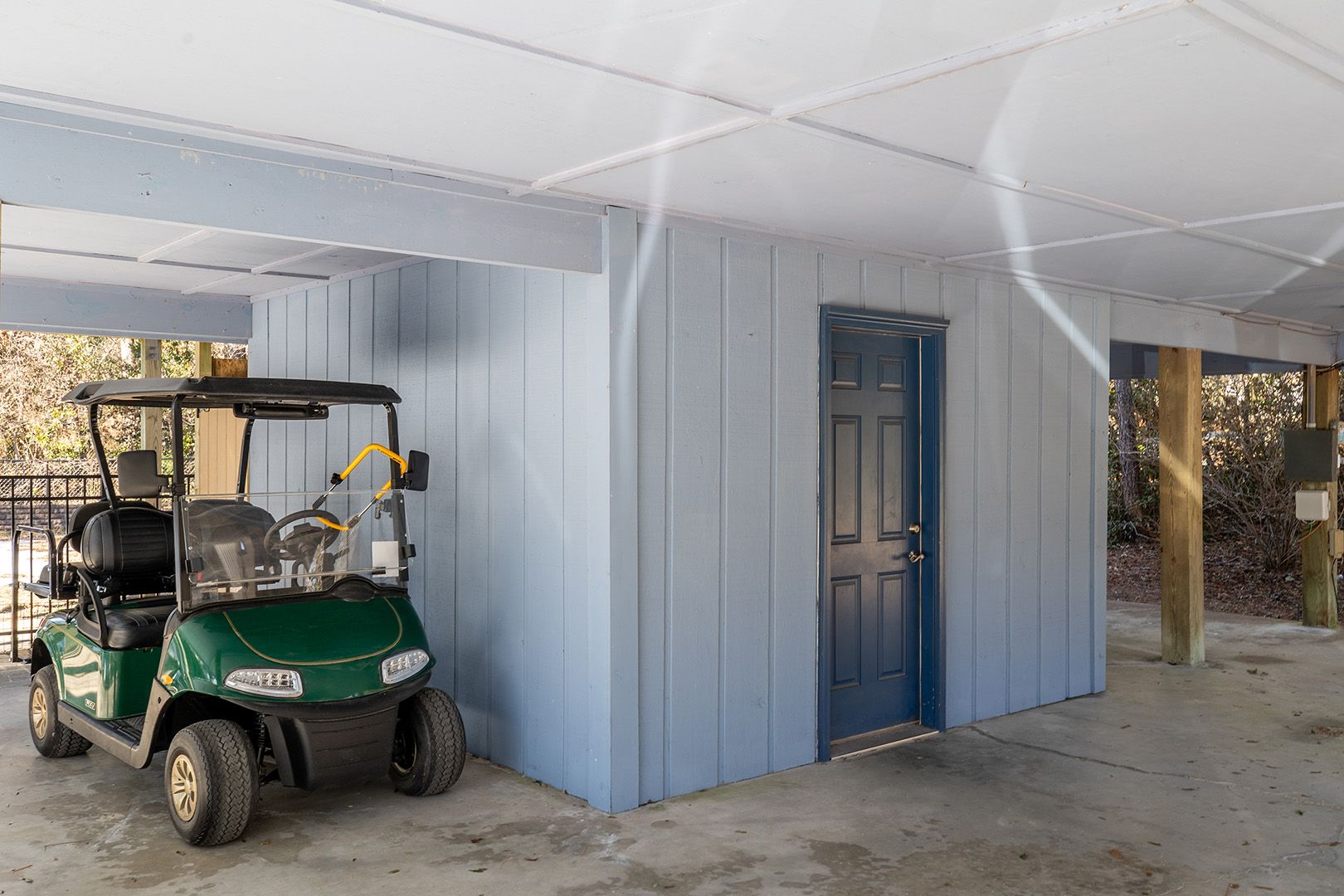 Amenities: Central HVAC, Ceiling Fans. High-Speed Wireless Internet; 4 Smart TVs including Roku; Fully Equipped Kitchen with Coffee Maker, Stove/Oven, Refrigerator, Microwave, Dishwasher, Waffle Maker, Slow Cooker, Blender. Exterior Laundry Room with Washer/Dryer; Outdoor Deck with Furniture; Covered Parking; Enclosed Yard; Golf Cart available to rent $125/week + tax; Outdoor Hot/Cold Shower; Gas Grill, Enclosed Hot/Cold Outdoor Shower.