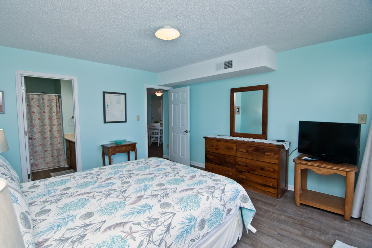 Master Bedroom has a Queen Bed, Flat Screen TV, direct access to the covered deck & full bathroom. Bedroom #2 has a Queen Bed, TV, and small balcony. Bedroom #3 with 2 Twins, TV, and access to the small balcony. There is a Shared Bath for Bedroom #2 and #3. Washer & Dryer.