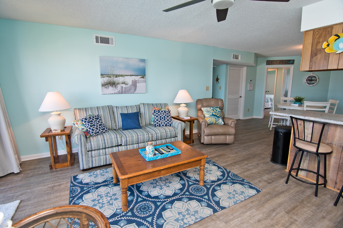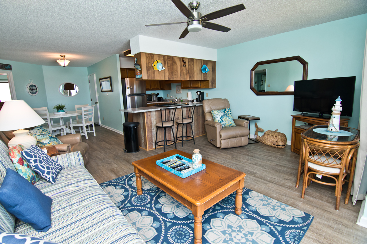 Pebble Beach A-205 is a Second Floor Oceanfront 3 bedroom, 2 Bath condo that boasts beautiful views of the ocean and pool located in the the professionally landscaped Pebble Beach Oceanfront Gated Condominium Community off Coast Guard Road within walking distance to family theme parks, kiddy race tracks, arcades & restaurants.