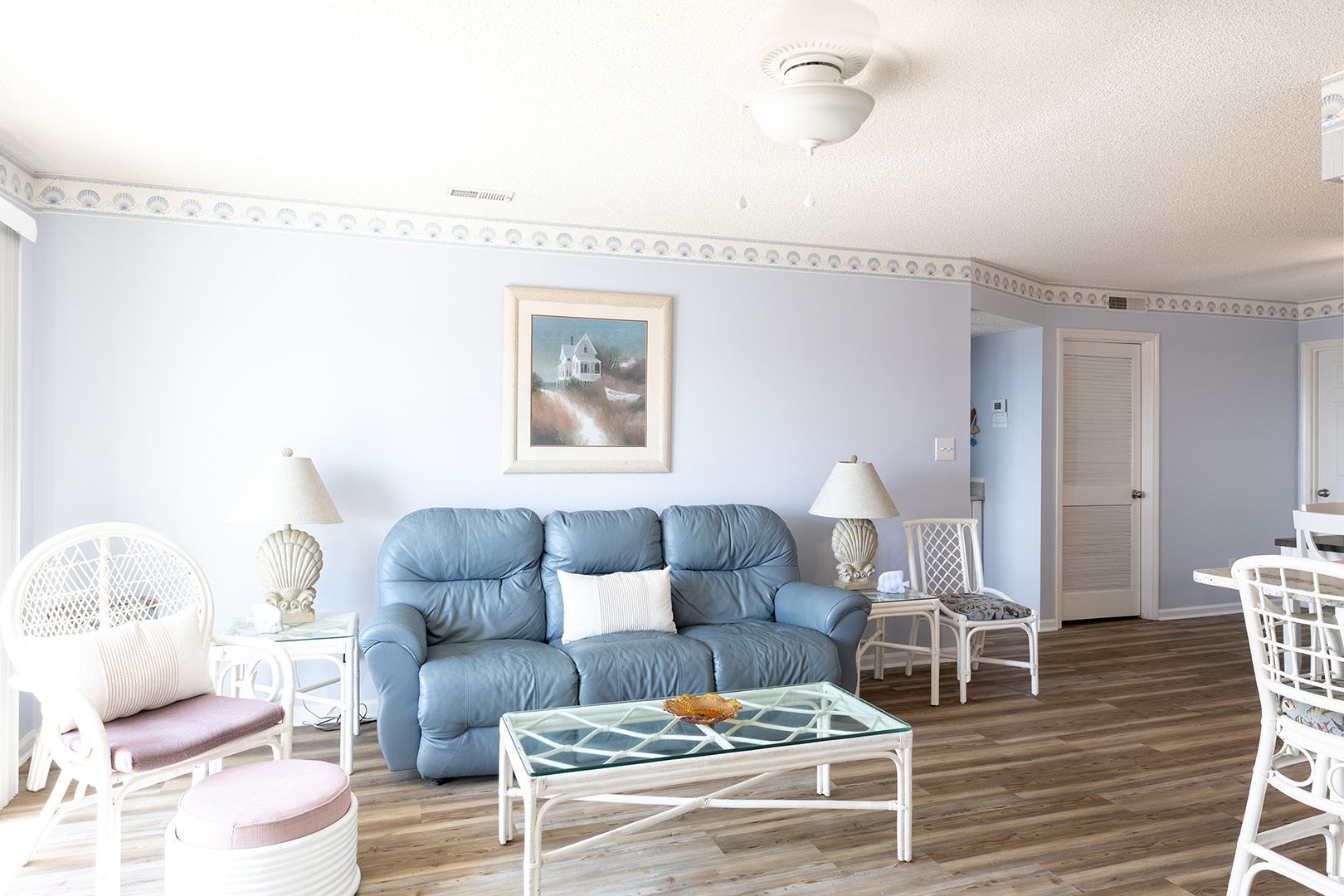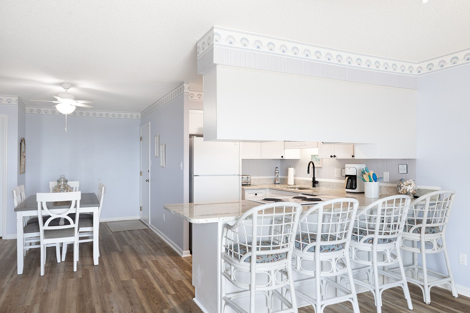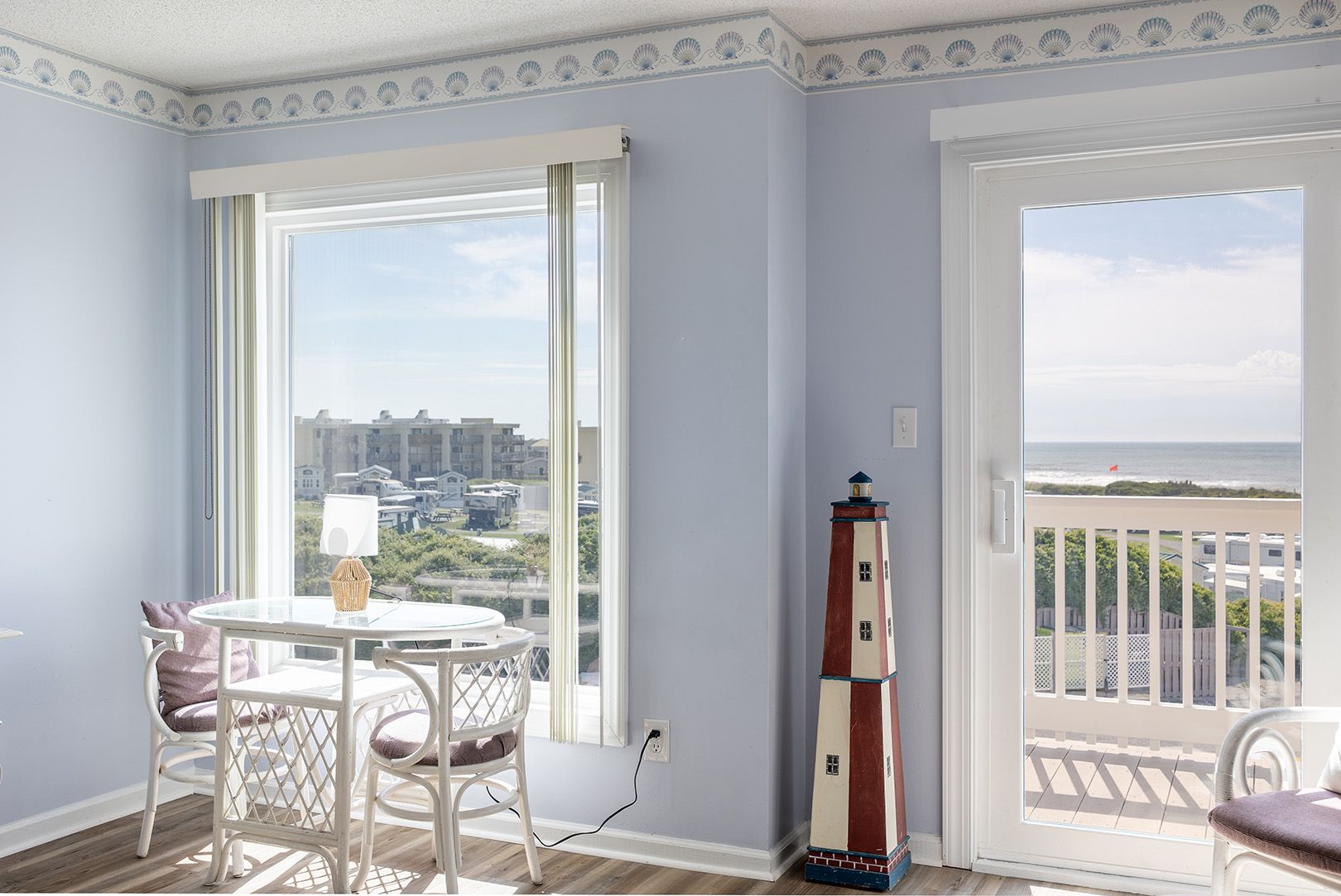 Living Area featuring gorgeous Atlantic Ocean views and a Smart TV with access to streaming apps and basic cable for your entertainment! Fully Equipped Kitchen with Coffee Maker, Stove/Oven, Refrigerator with Attached Ice Maker, Dishwasher, Microwave, Waffle Maker, Toaster, Slow Cooker, Blender, Griddle. Enjoy making your favorite beverages with the convenient Wet Bar. Enjoy those ocean views and seaside breezes on the Private Balcony with Furniture.