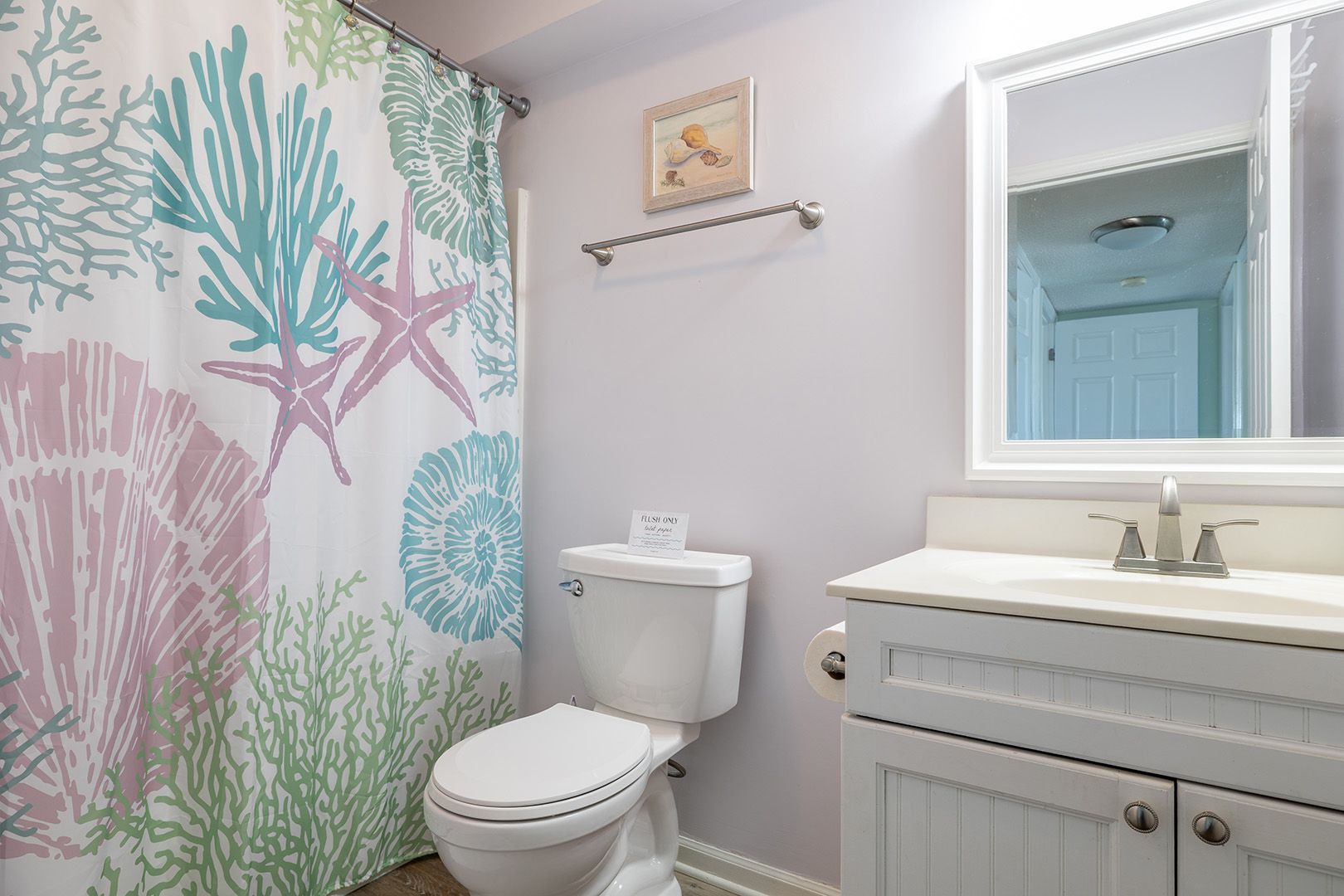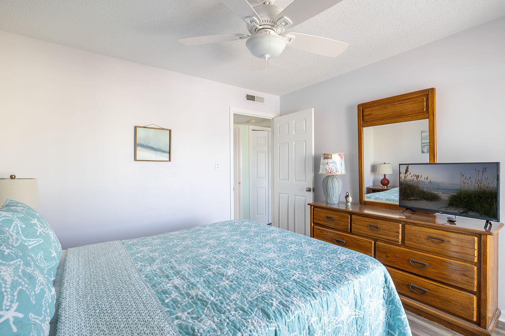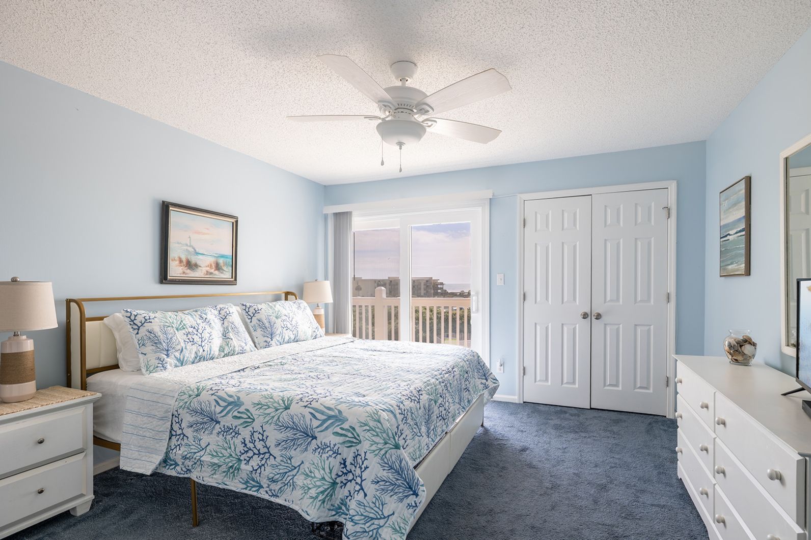 Master Bedroom has a King Bed, TV, a Private Full Bath, access to the Balcony, and great ocean views. Bedroom #2 has a Queen Bed, TV, and access to the Shared Full Bath. Bedroom #3 has a Twin/Double Bunk Set, TV, and access to the Shared Full Bath.