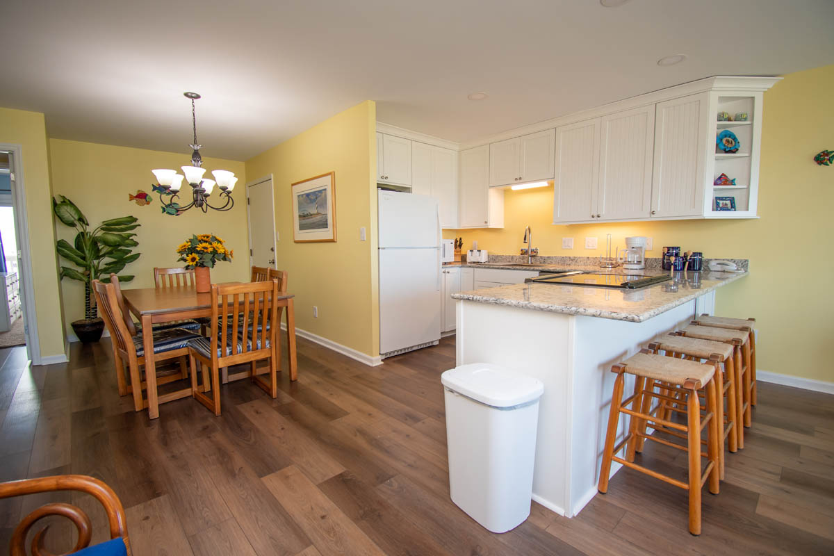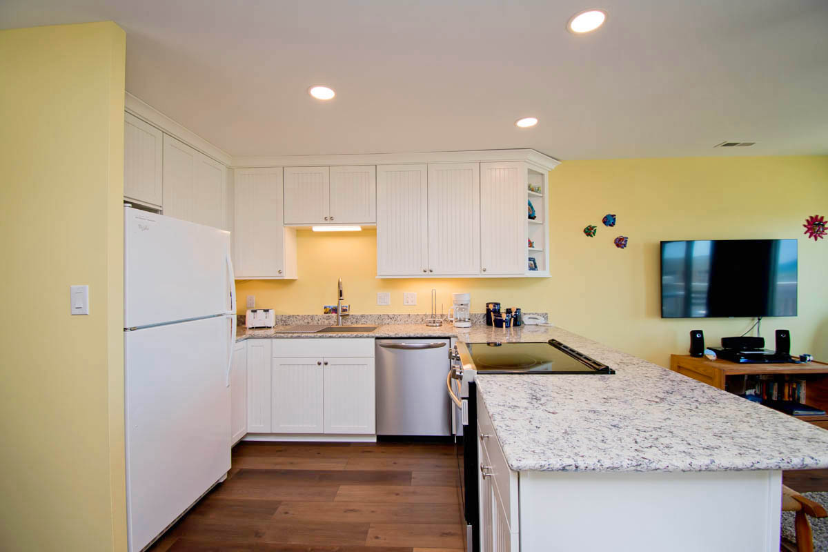 Beautiful ocean views from the Master Bedroom & Living Room! The Living Area has a 55" LCD TV and a balcony with furniture with great Ocean Views. Dining Area. Kitchen/Bar has a dishwasher & microwave.