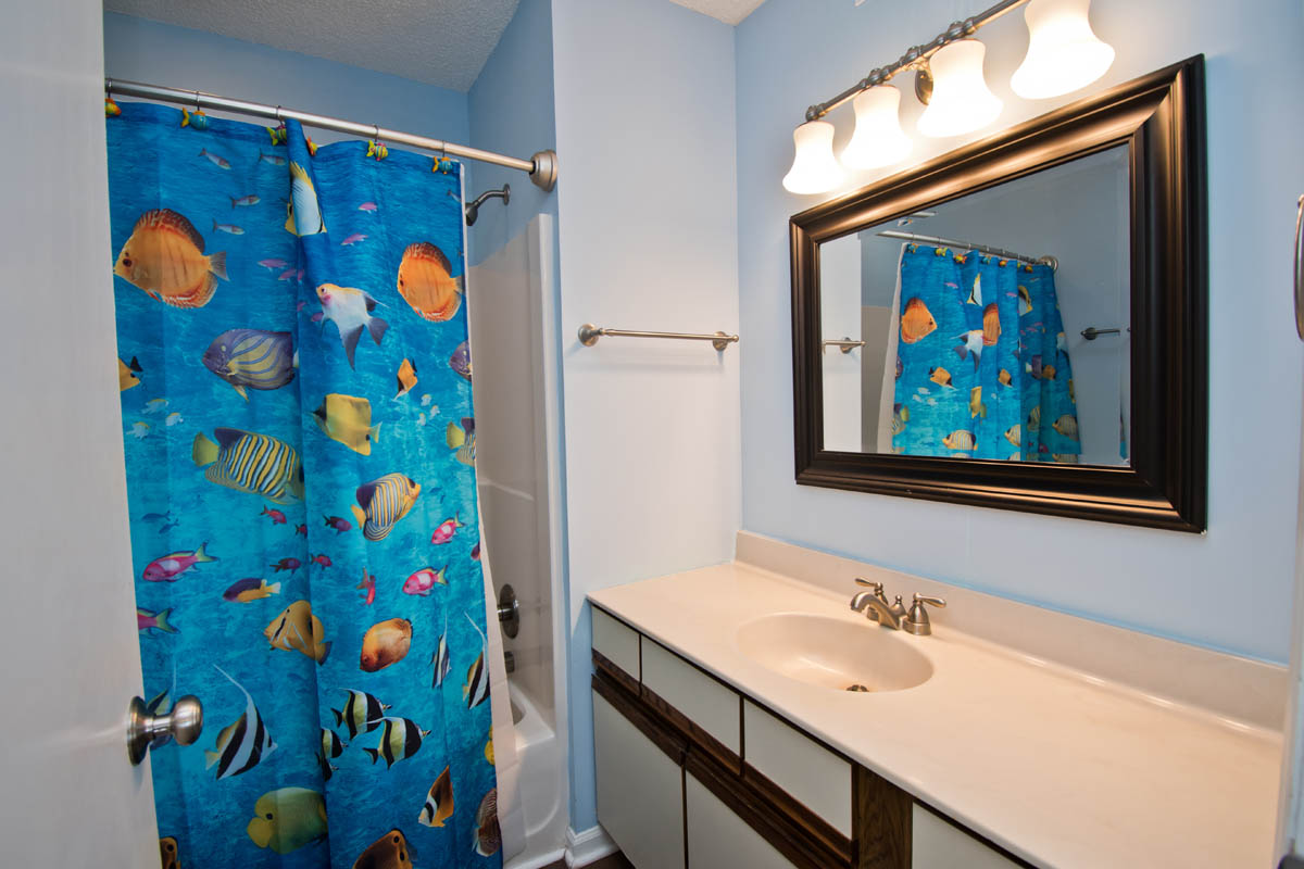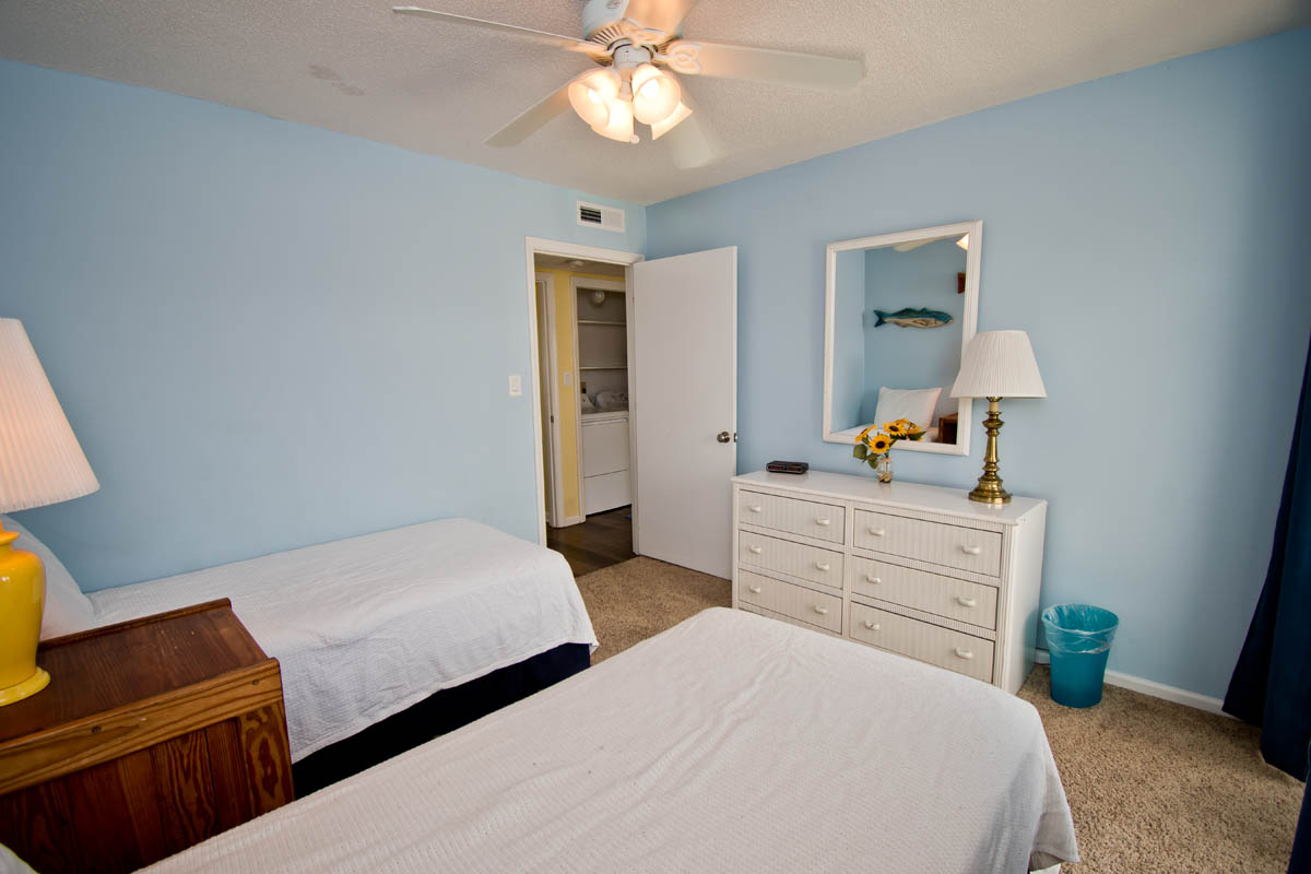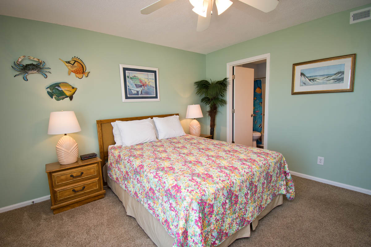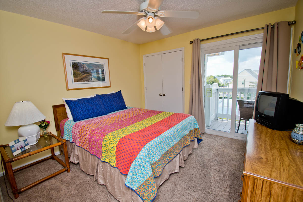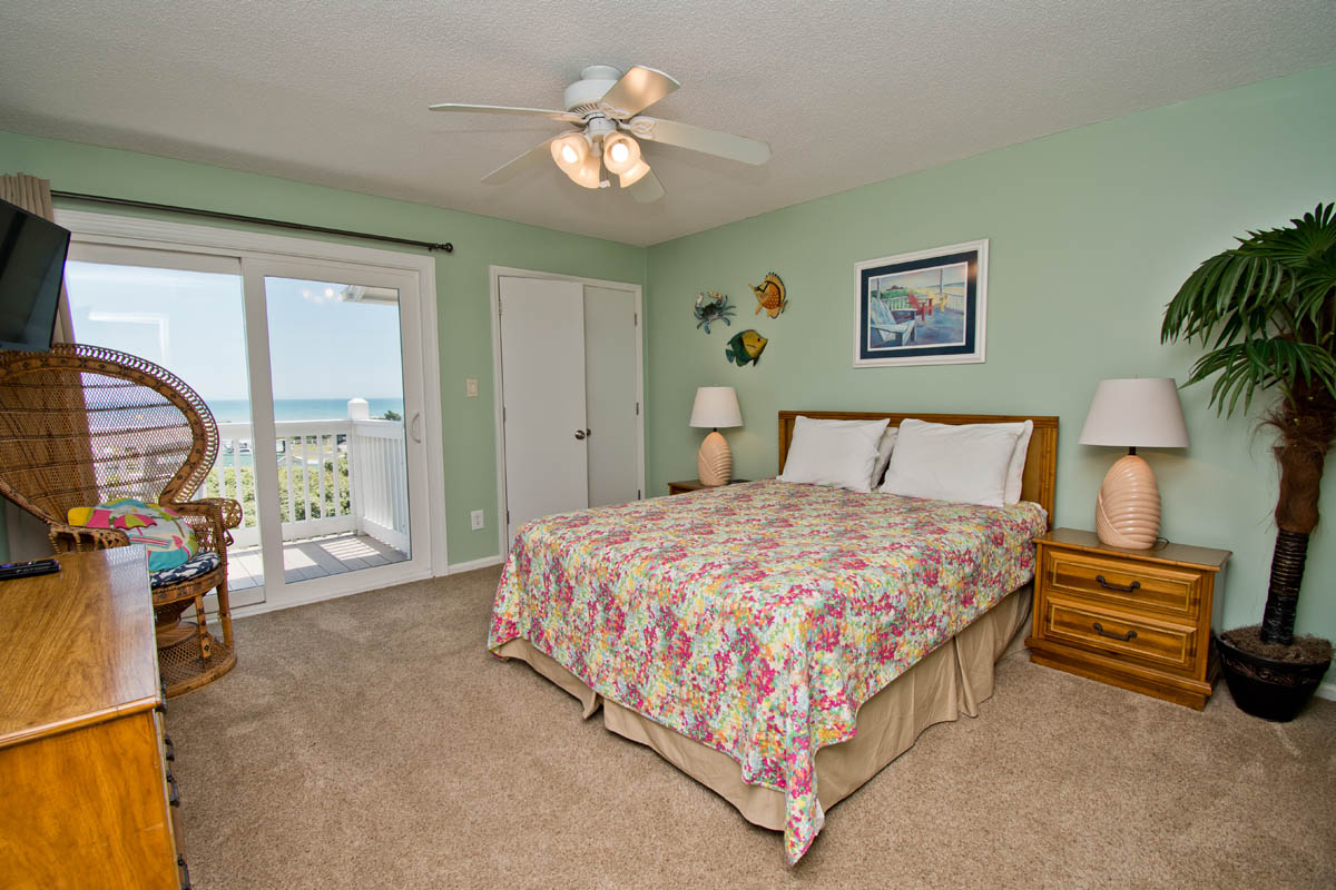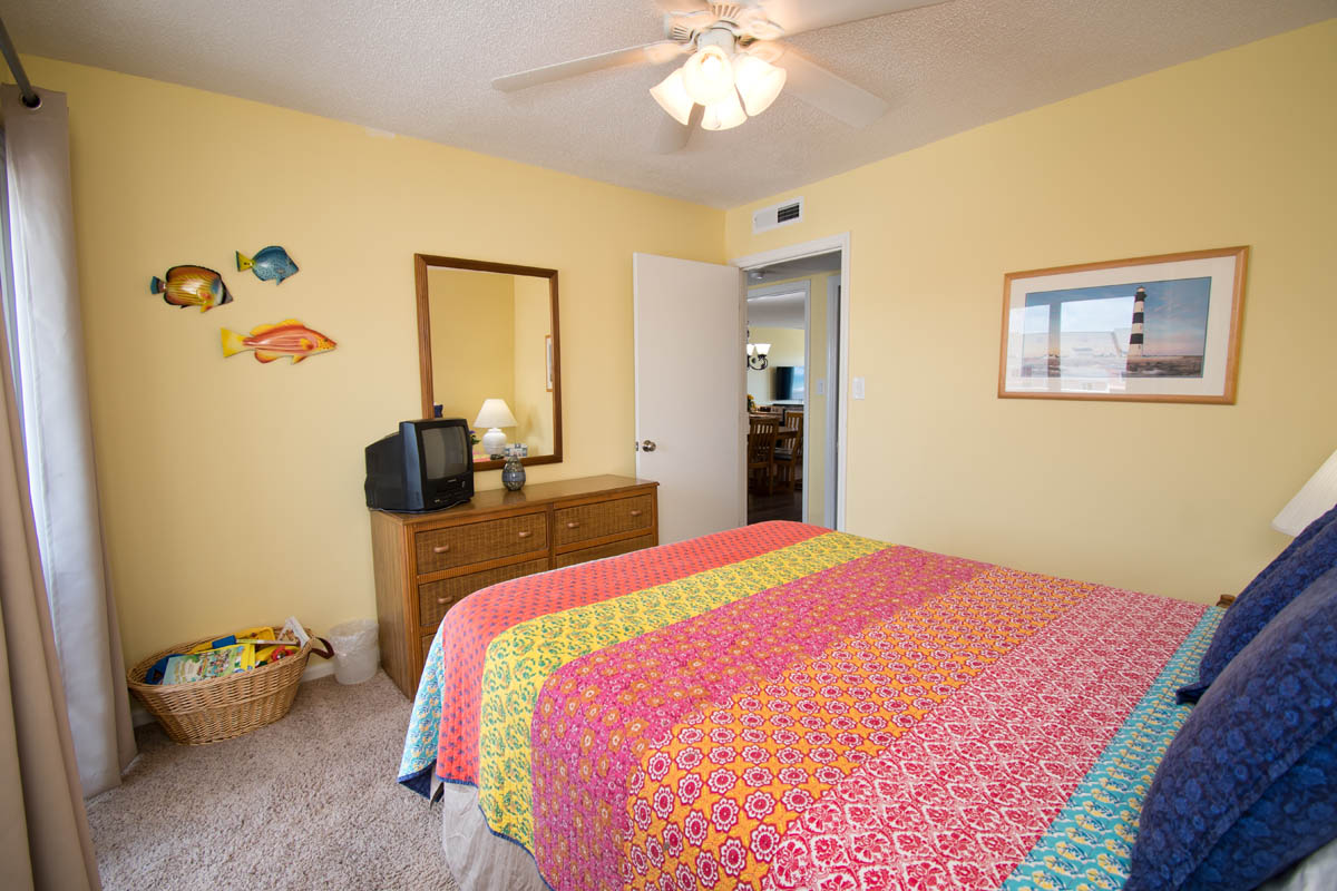 Master Bedroom has a Queen Bed, TV, a Full Bath and a balcony with great Ocean Views. Bedroom #2 has a Queen Bed and access to a small balcony overlooking the tennis courts. Bedroom #3 has 2 twin beds and access to a small balcony overlooking the tennis courts. Bedrooms #2 and #3 share a Full Bath.