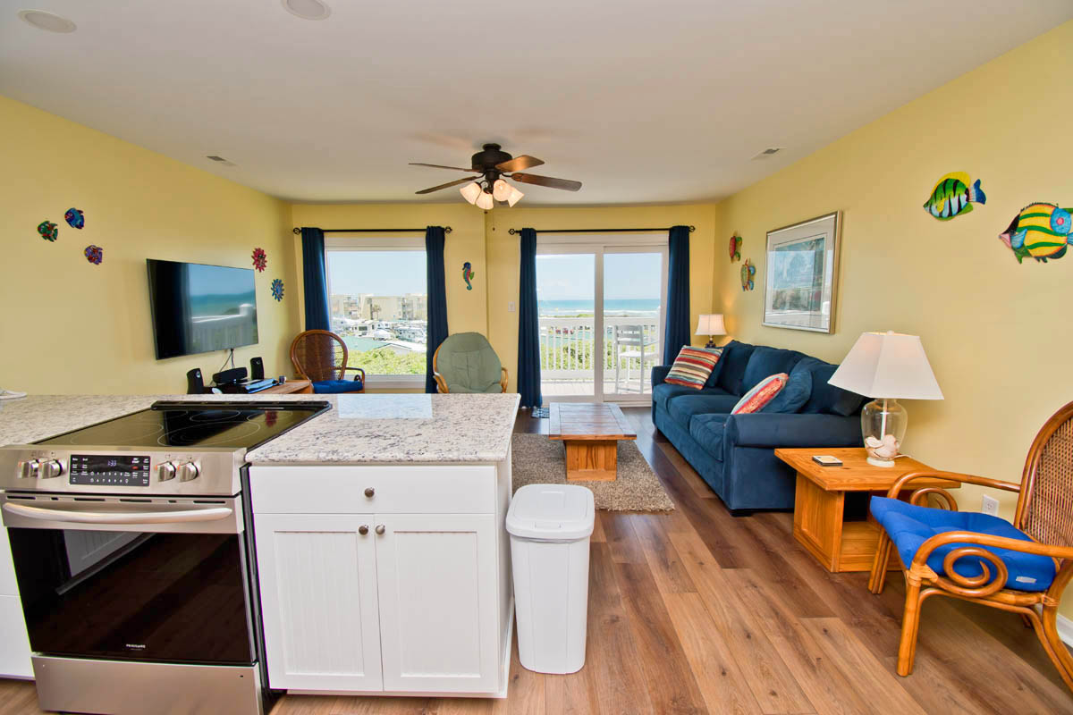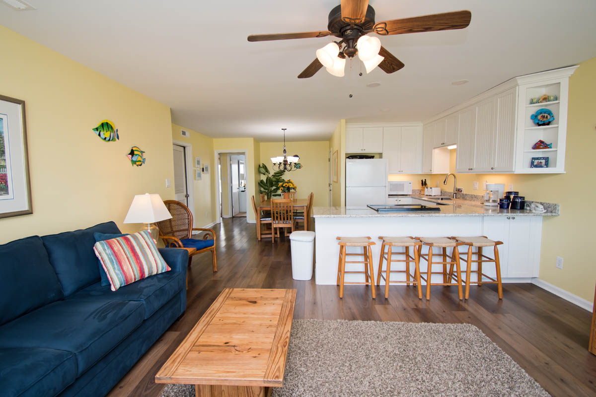 Pebble Beach C-307 is a Third Floor Almost Oceanfront 3-Bedroom, 2-Bath Condo only 1 building from the ocean located in the professionally landscaped Pebble Beach Oceanfront Gated Condominium Community off Coast Guard Road within walking distance to family theme parks, kiddy race tracks, arcades & restaurants.