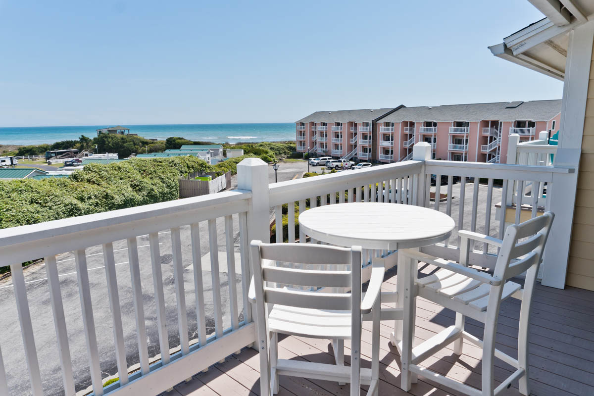 - Balcony with new counter height table and chairs (for great ocean view)