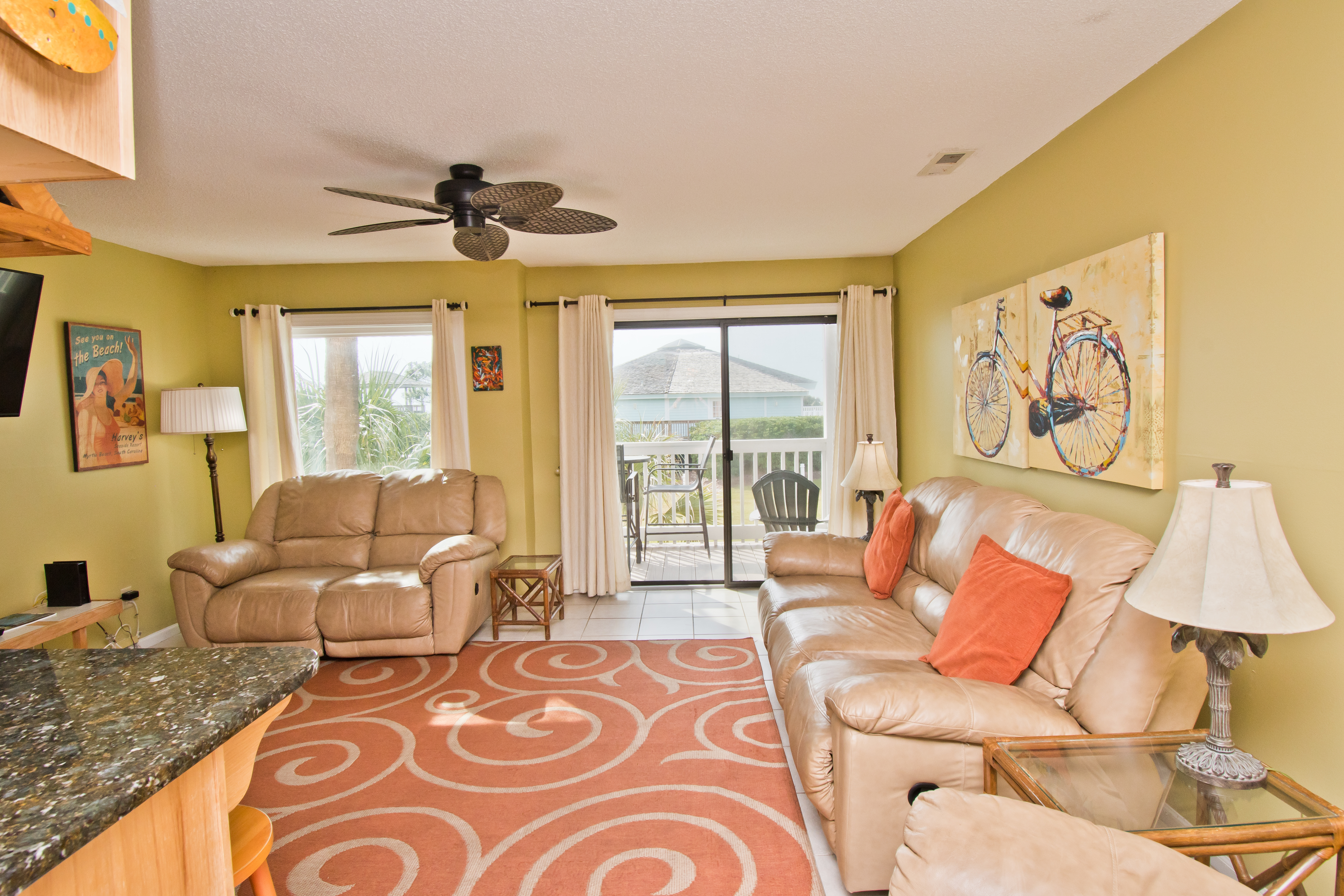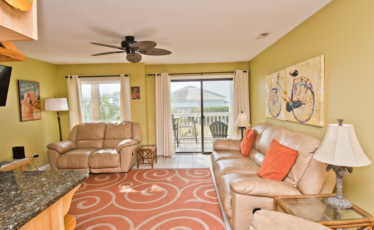 This condo is a first floor unit. The view may vary from season to season due to foliage, storms or natural dune movement. While viewing the photographs for this property, please note that some photos may be common views for complex and not the actual view from the unit. These photos are at the end of the photos provided. Please call one of our Rental Specialists at 888-258-9287 if you have specific questions.