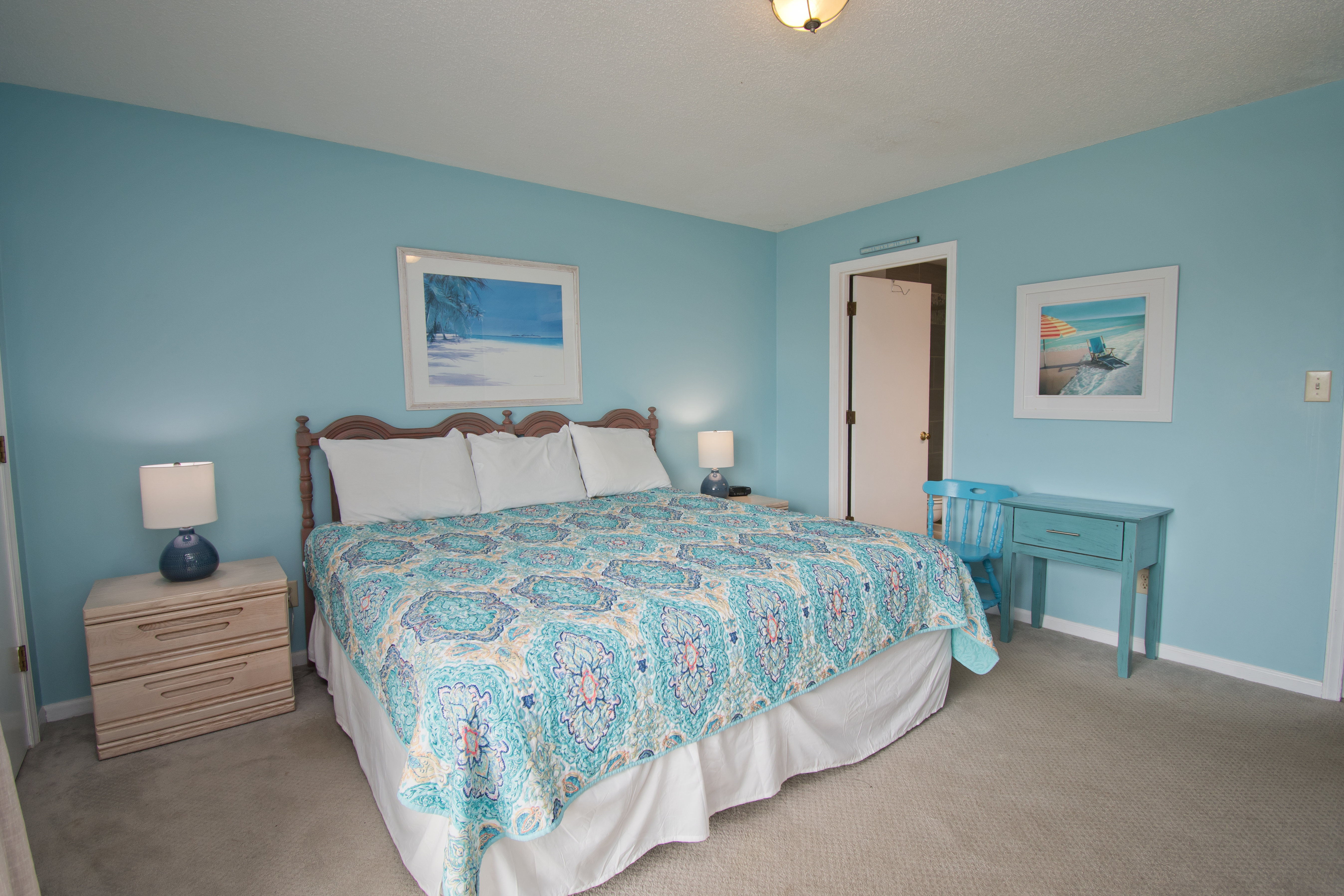Master Bedroom #1 has a King Bed, a Full Bath, TV and a covered oceanfront balcony. Bedroom #2 has a Double Bed and TV. Bedroom #3 has 2 Twin Beds and a TV with a Video Game console. Bedrooms #2 and #3 share a Full Bath.
