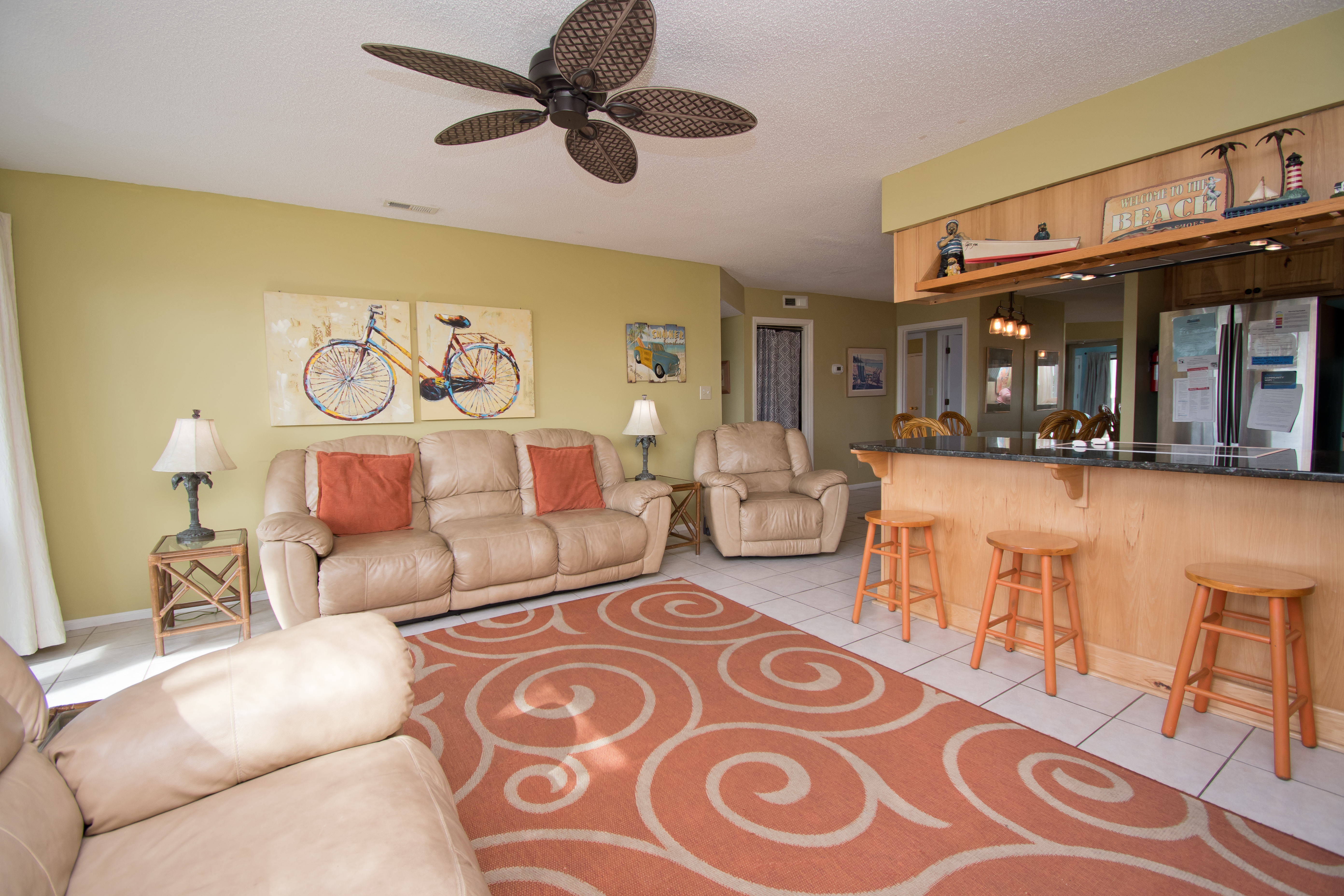 Pebble Beach D-107 is a First floor Oceanfront 3-Bedroom, 2-Bath Condo located in the professionally landscaped Pebble Beach Oceanfront Gated Condominium Community off Coast Guard Road within walking distance to family theme parks, kiddy race tracks, arcades & restaurants.