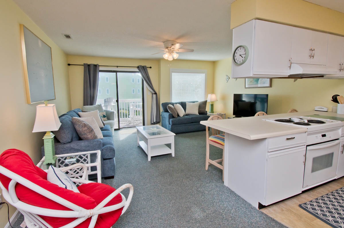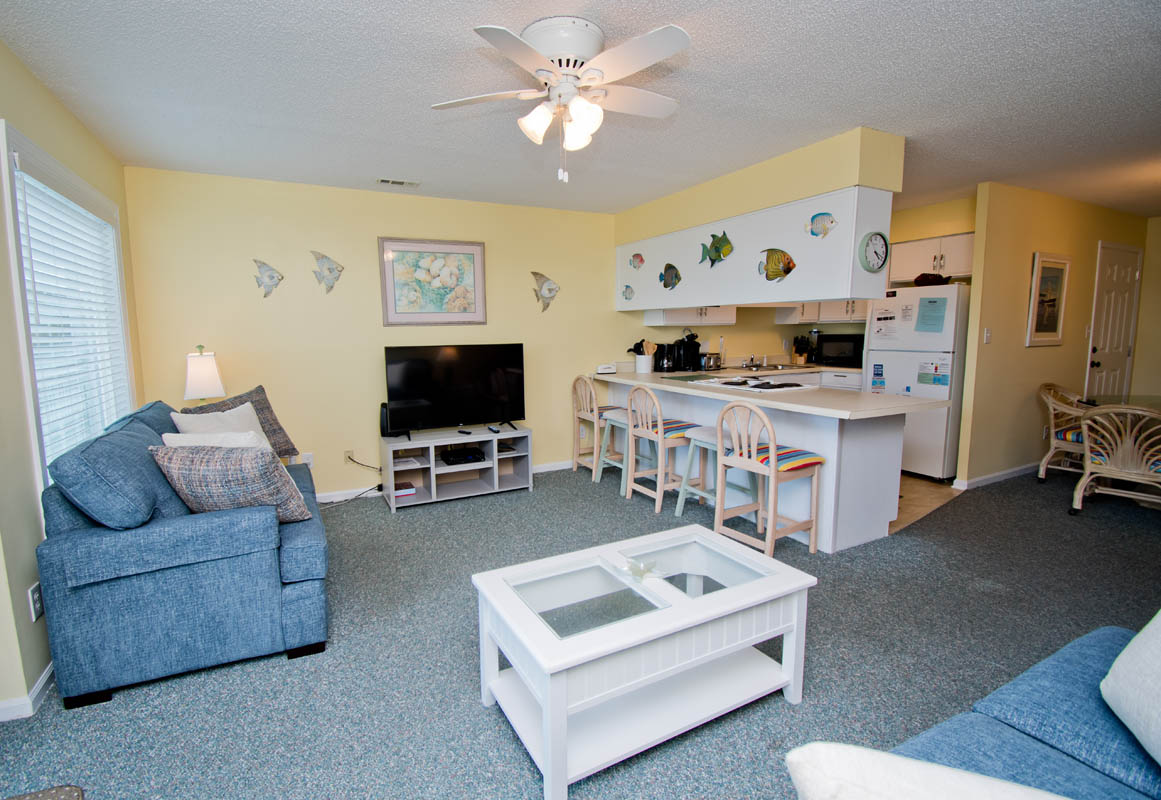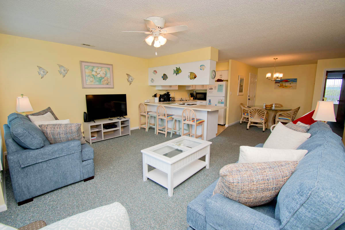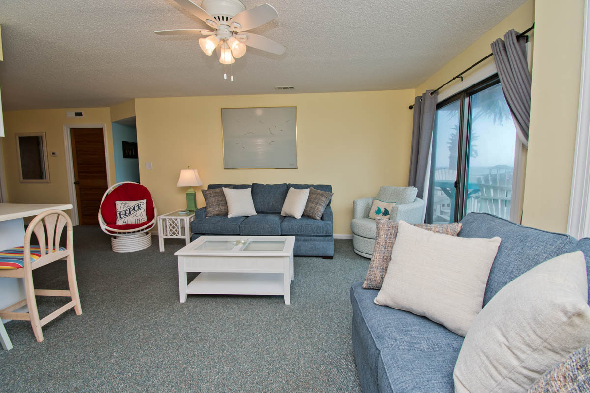 Pebble Beach D-202 is a Second Floor Oceanfront 3-Bedroom, 2-Bath Condo located in the professionally landscaped Pebble Beach Oceanfront Gated Condominium Community off Coast Guard Road within walking distance to family theme parks, kiddy race tracks, arcades & restaurants.