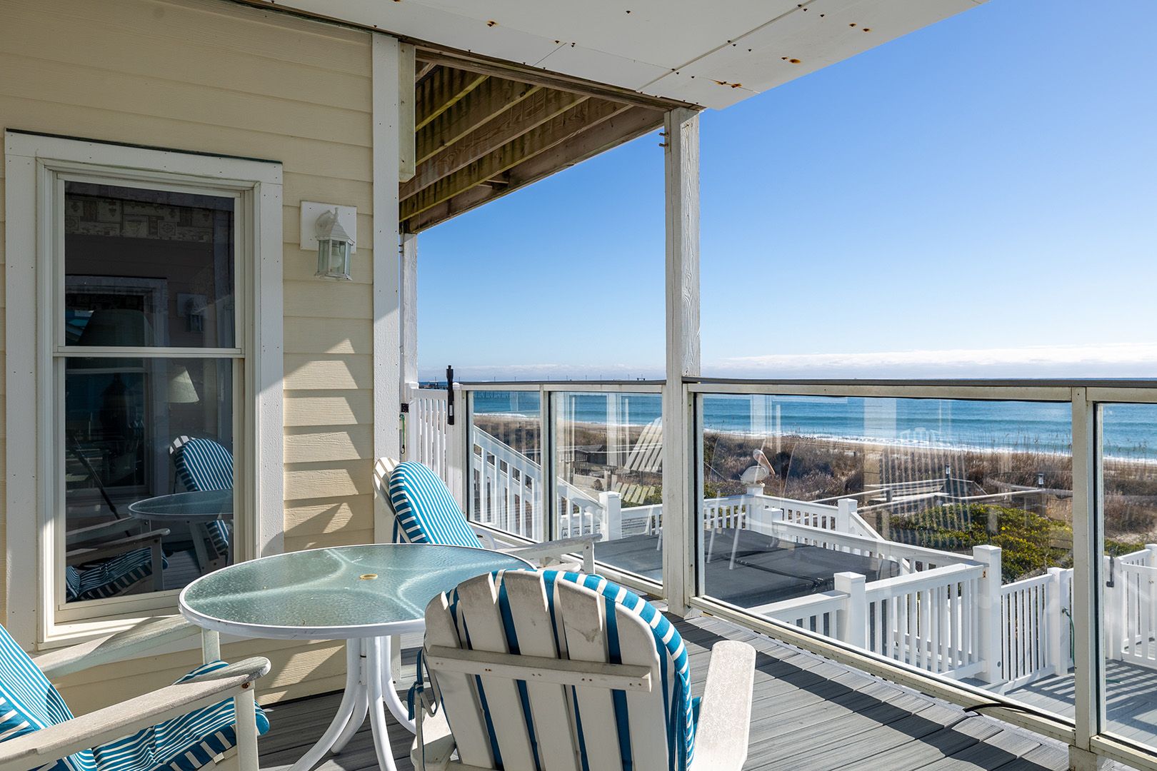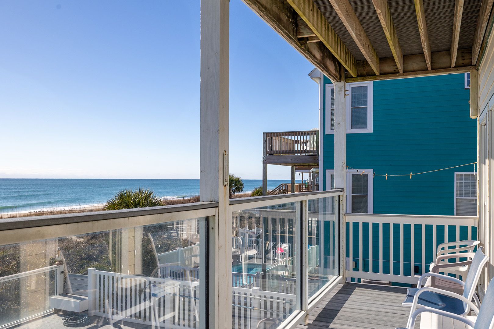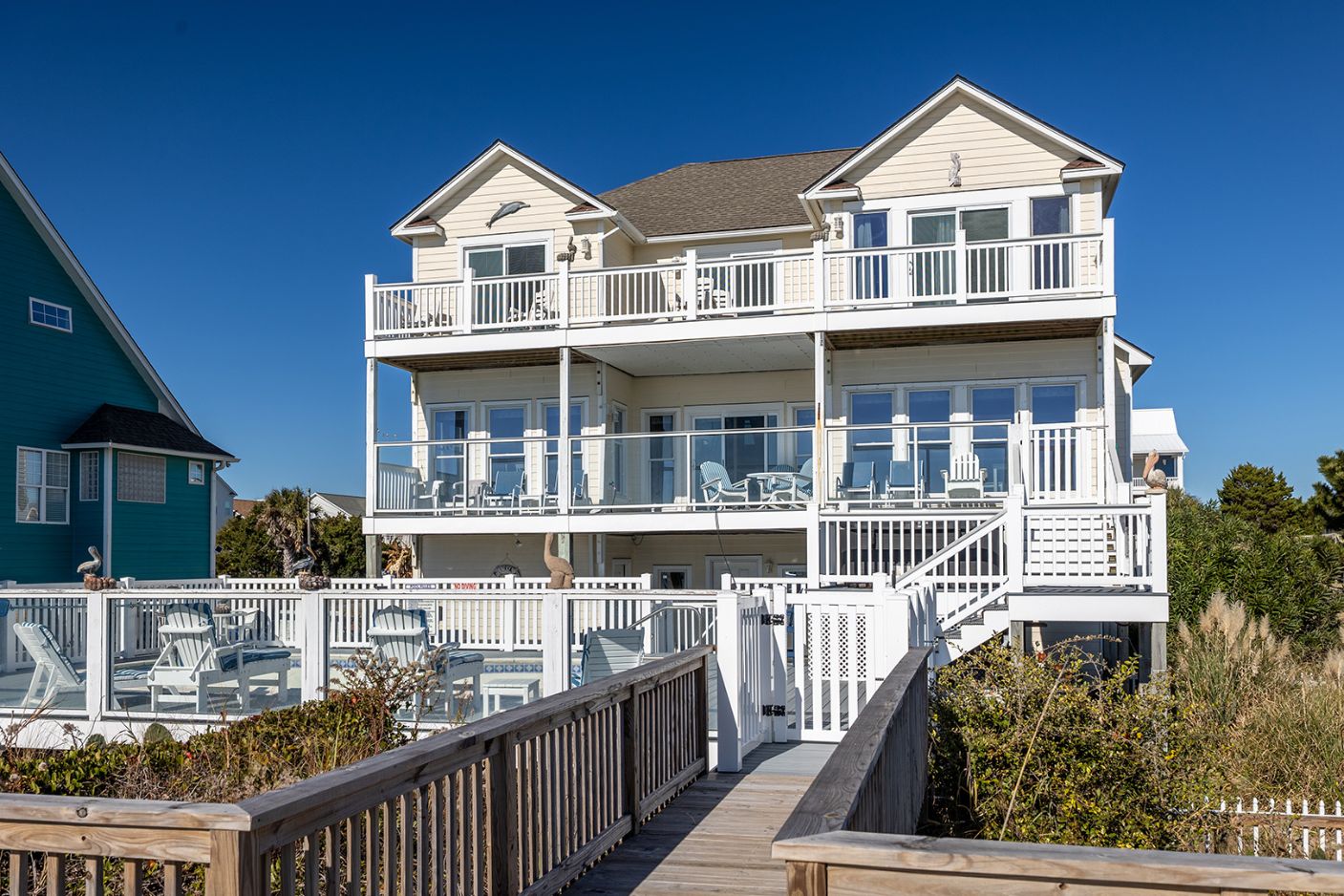 Pelican Perch is a perfect place for your next family vacation! 6-Bedroom, 4 1/2-Bath home on 3 living levels. Private, in-ground, oceanfront Swimming Pool. Spacious Hot Tub overlooks the ocean! Game Room features a Pool Table, Ping Pong Table, Mini-Fridge and Half Bath and an Arcade Room which features a 60 game Arcade Game Table, an Air Hockey Table, and a Foosball Table, and special storage for Golf Clubs! Pool can be heated for $650/week + tax!